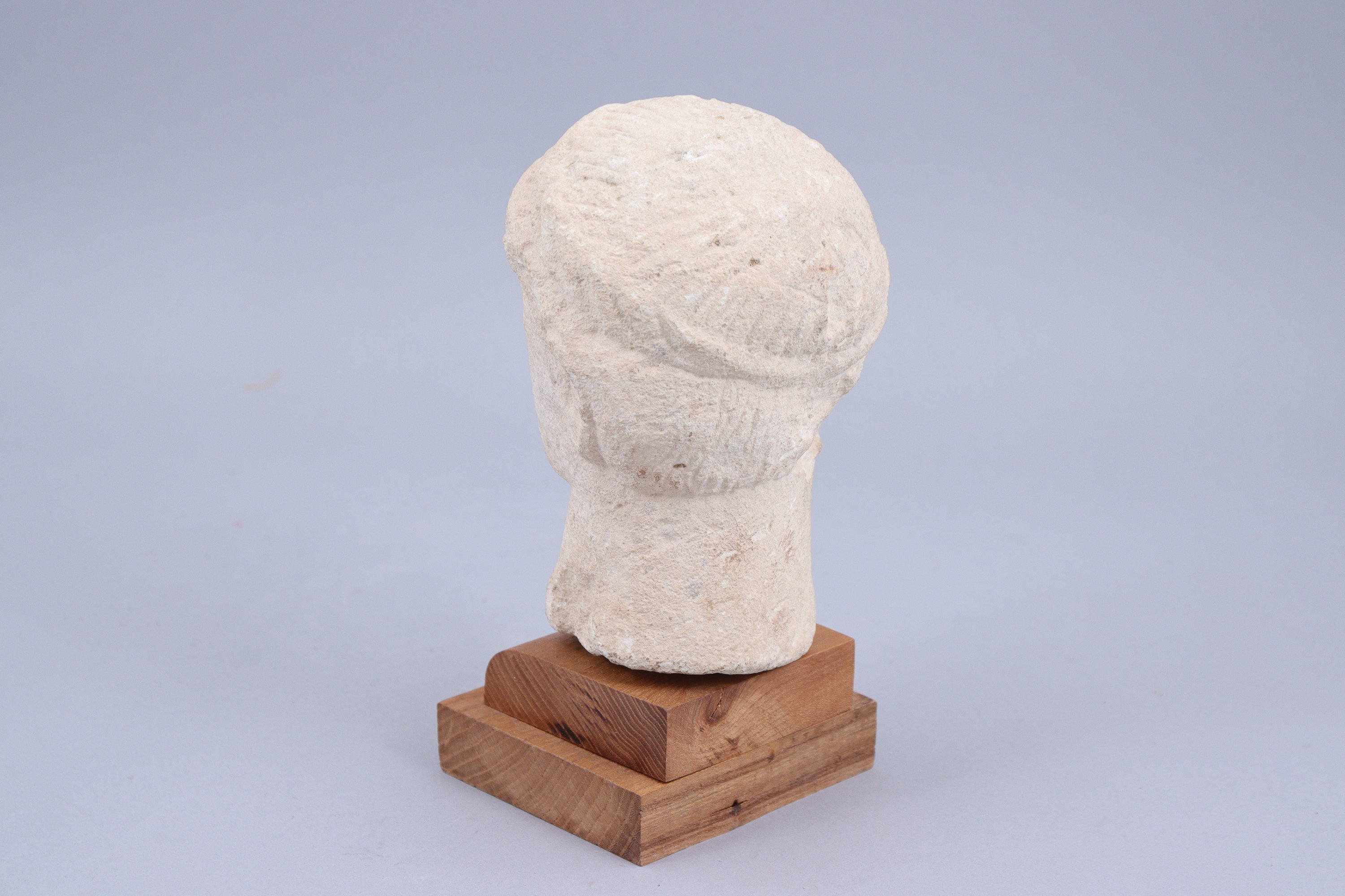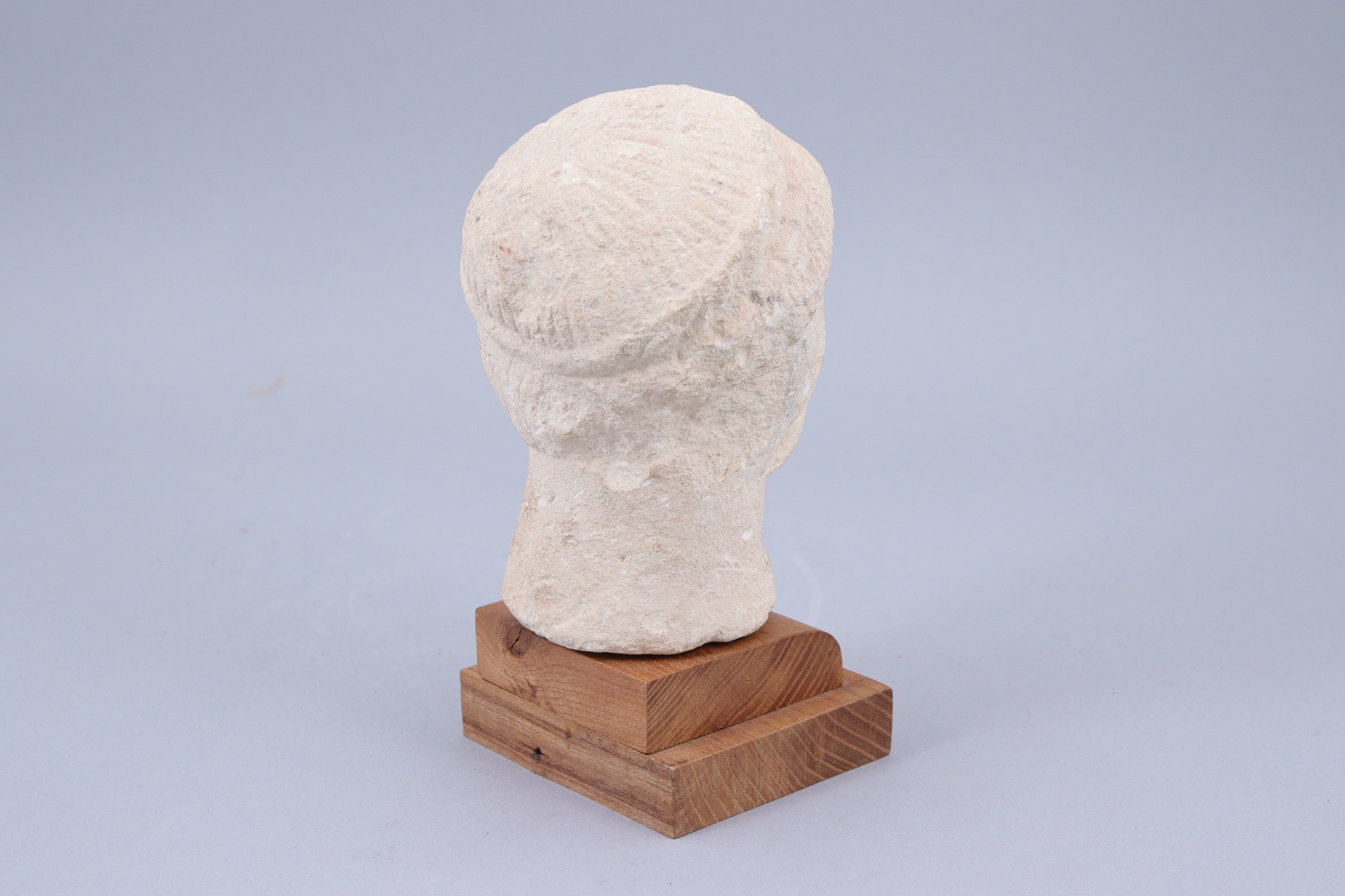 coiffée dune couronne végétale. Traces de pigments rouges sur la couronne.