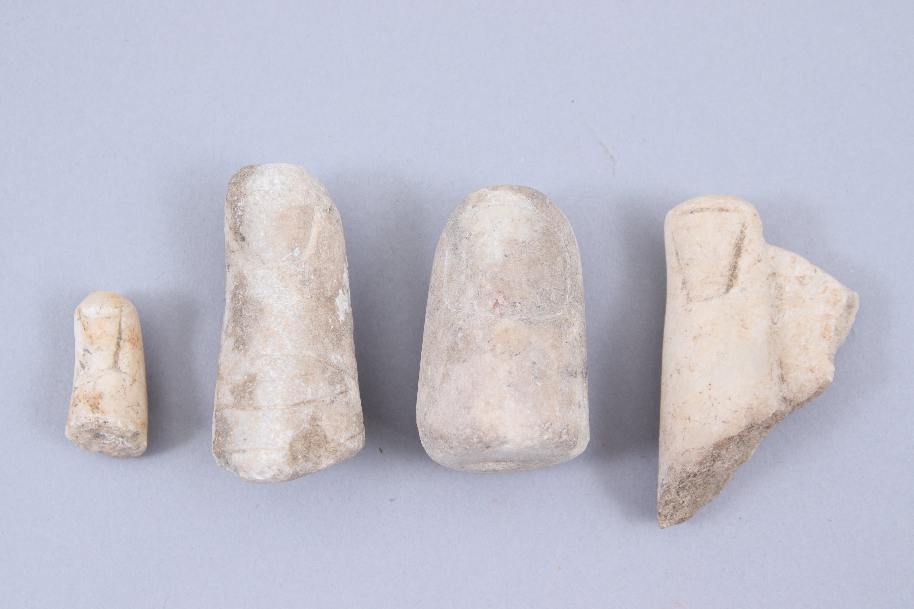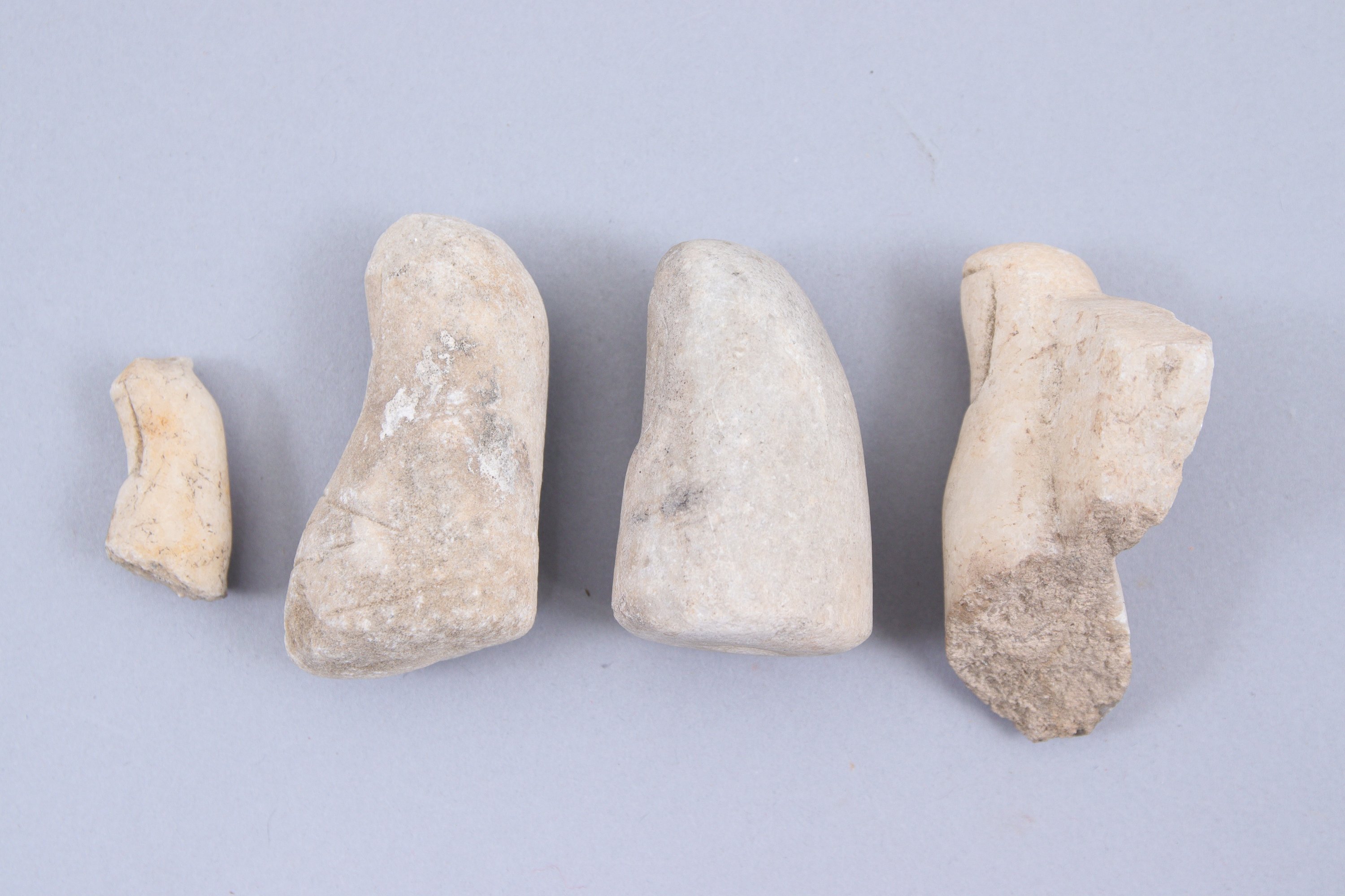 - Deux doigts en marbre provenant de statues antiques. Probablement Smyrne ou ses environs. Long. max. 7 cm.