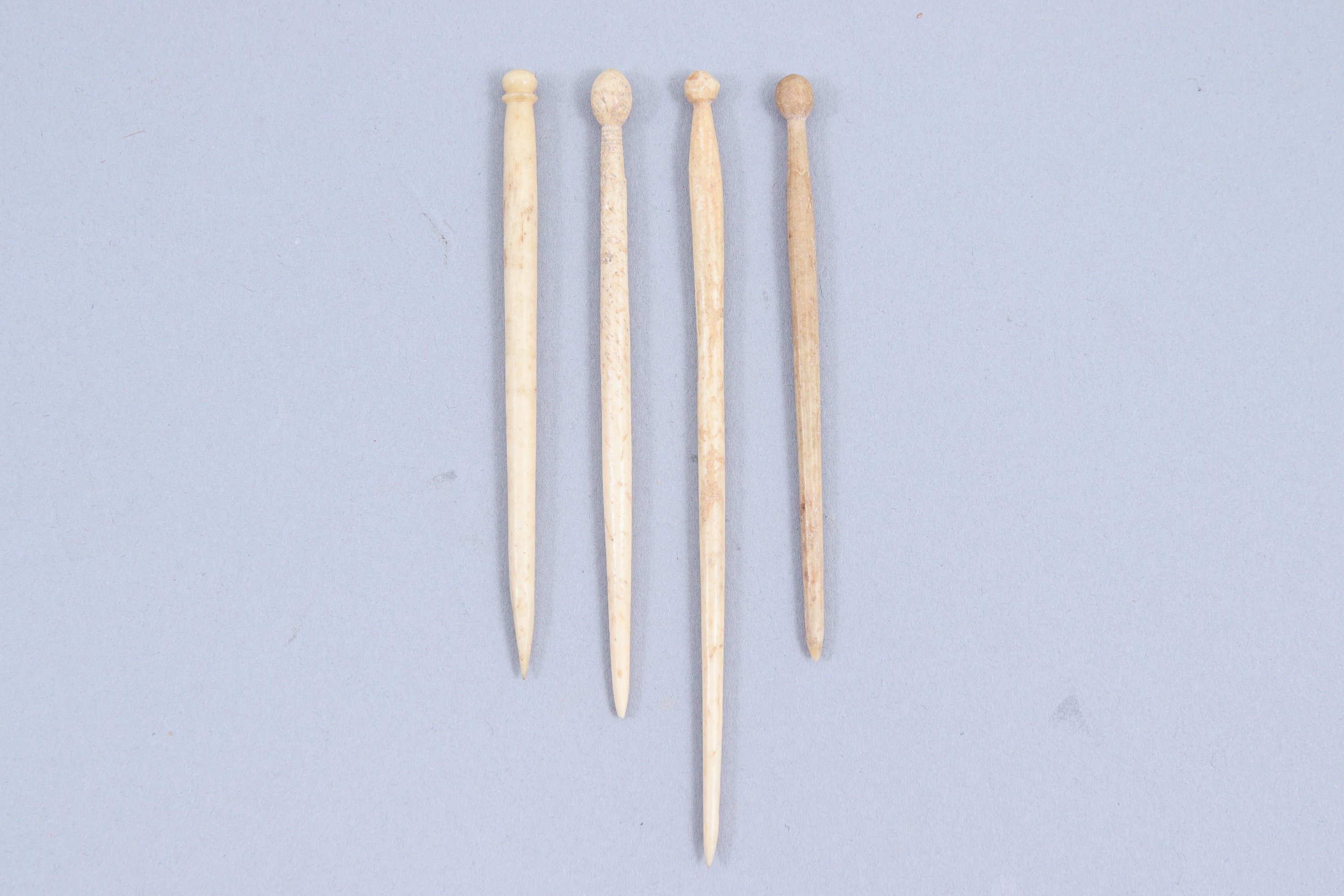 Joint: Probablement Smyrne ou ses environs. 4 épingles romaines à tête globulaire. Long. max. 10,5 cm.