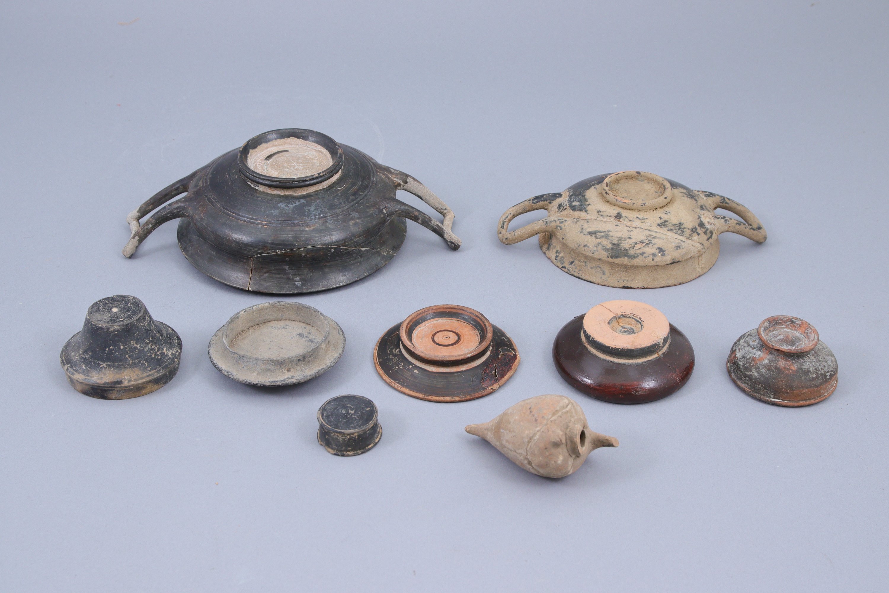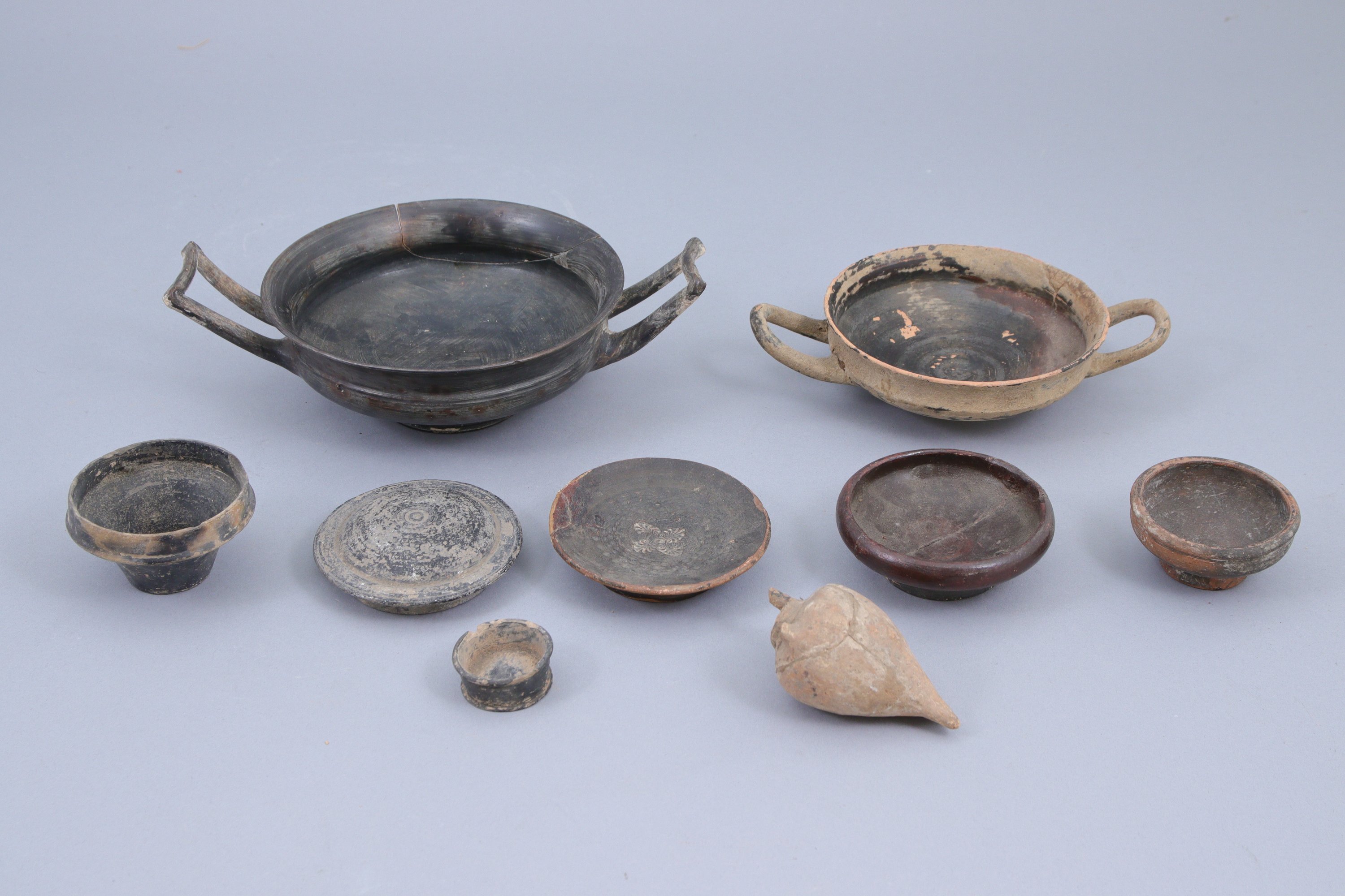 à vernis noir, dont amphorisque en forme damande, kylix, coupelles, couvercle de pyxide.