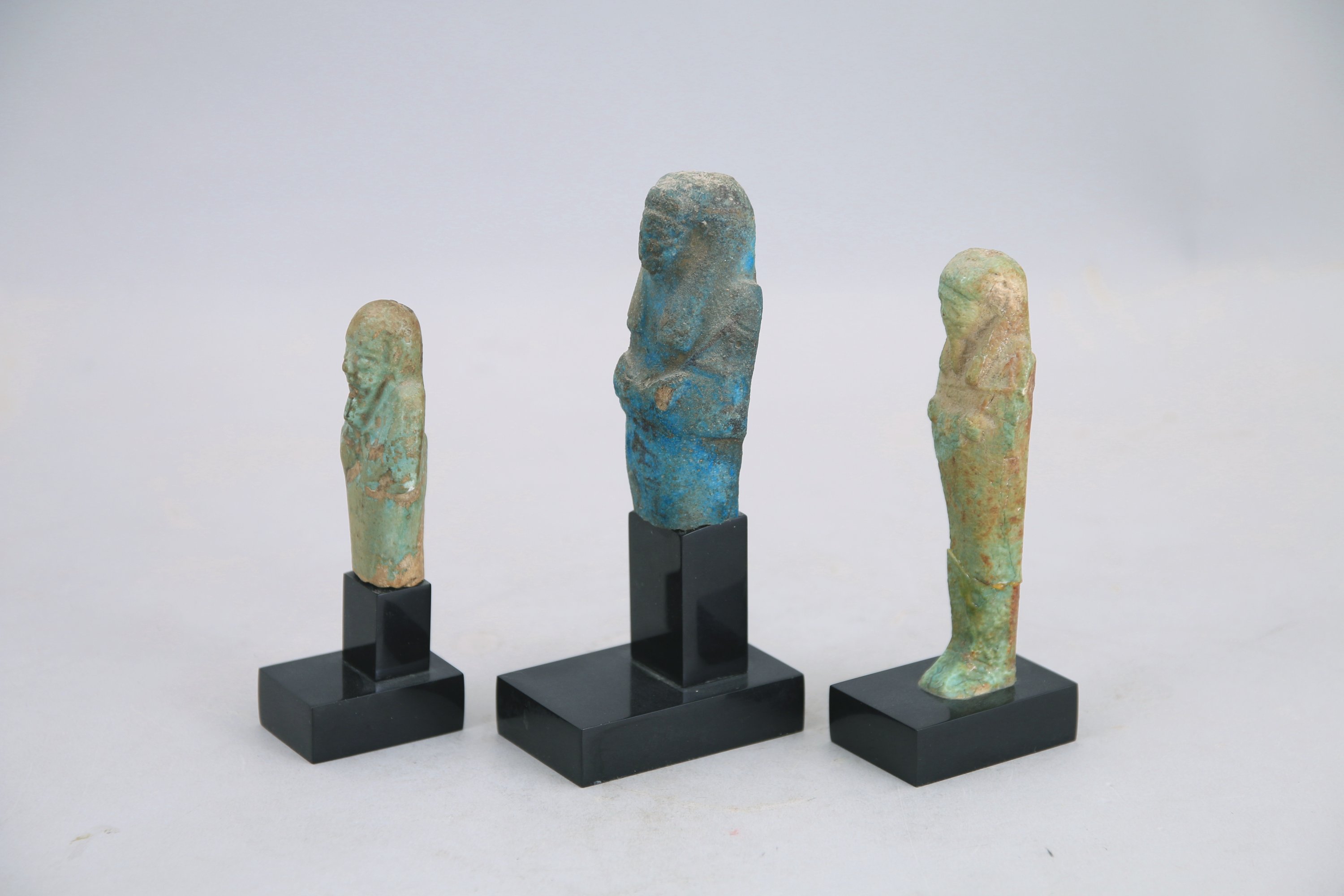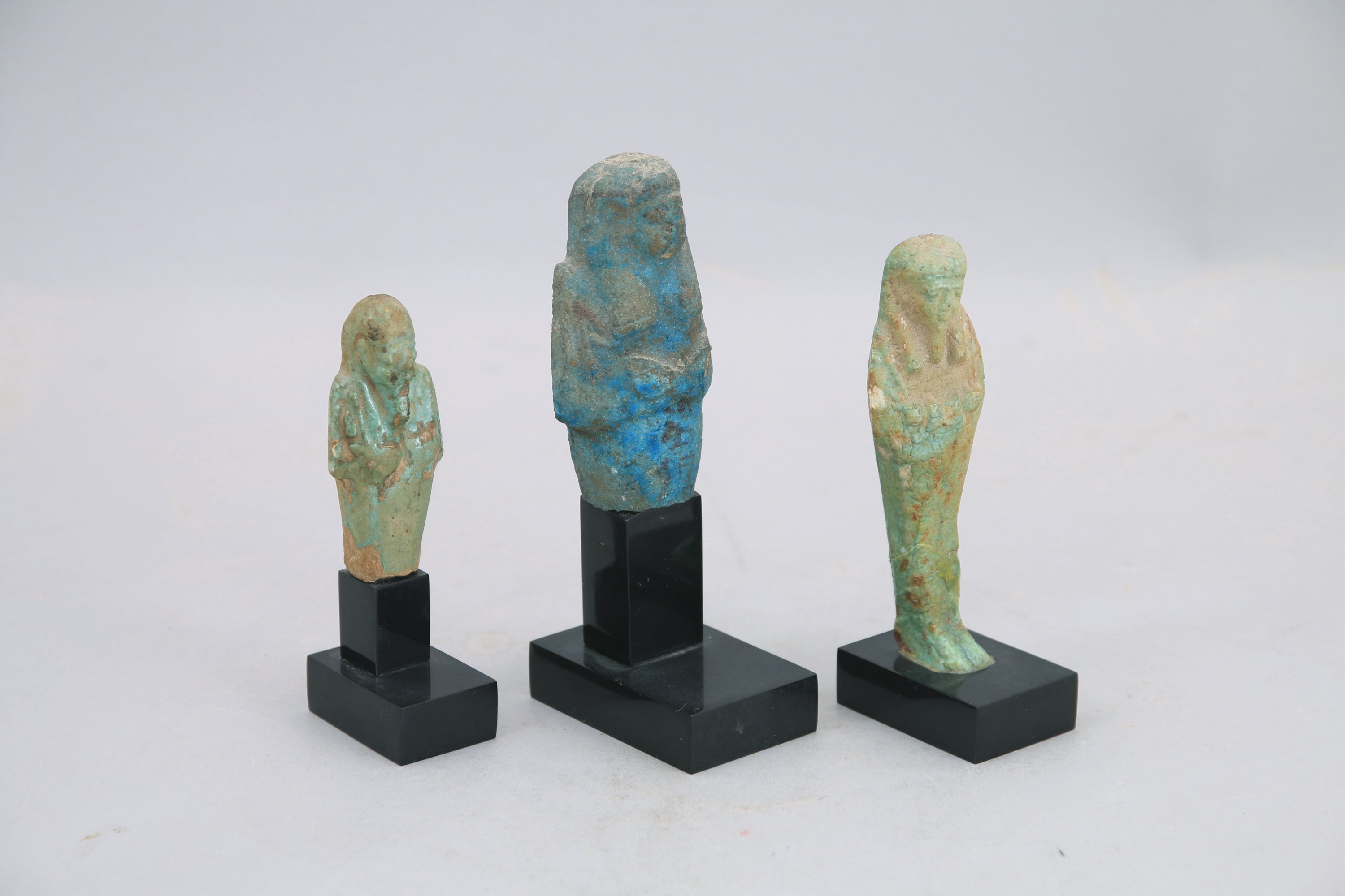 en faïence bleue, avec inscription et rehauts noirs. A rapprocher des découvertes des cachettes de Deir el-Bahari.