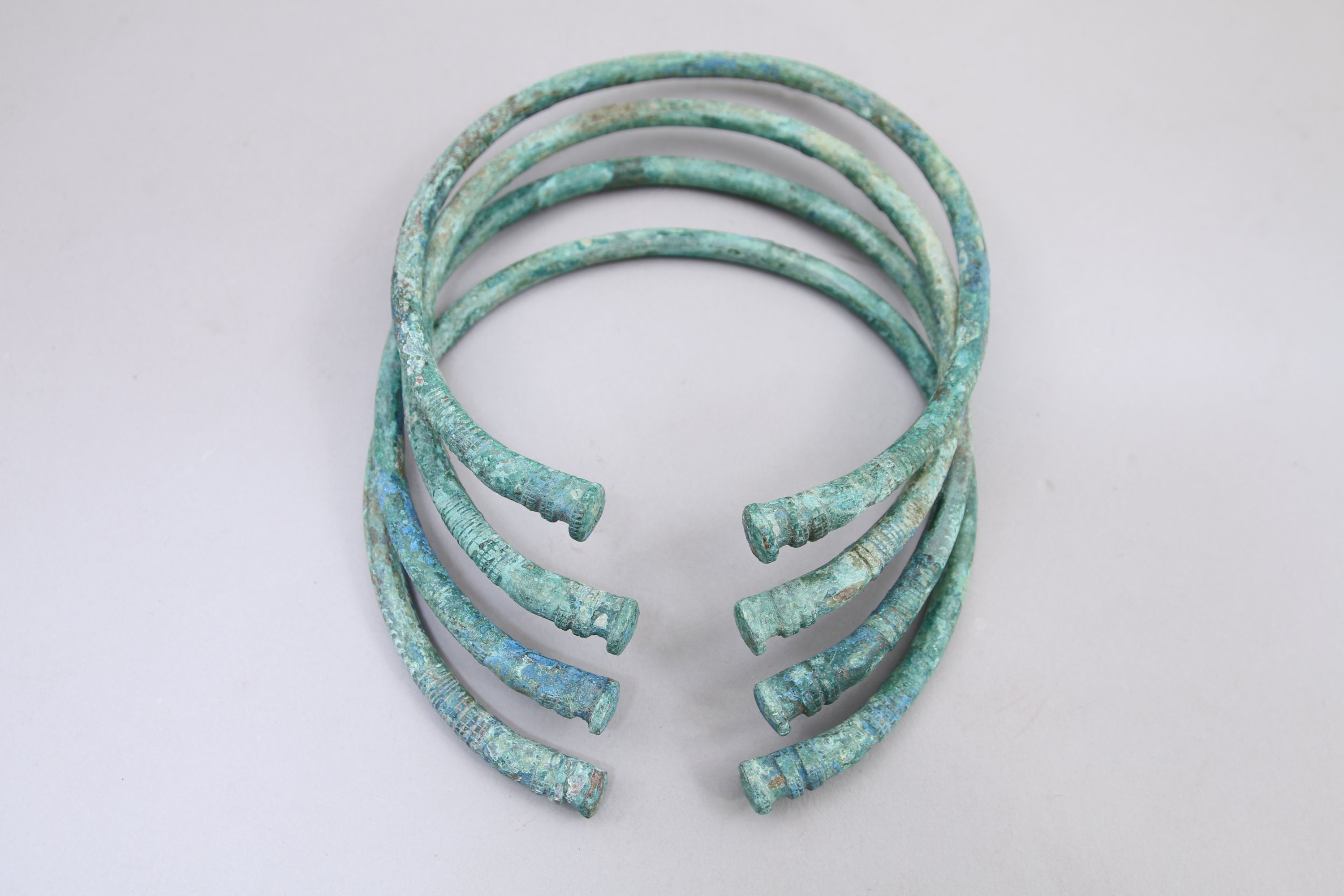 en bronze, décorés de plages en relief et stries incisées.
