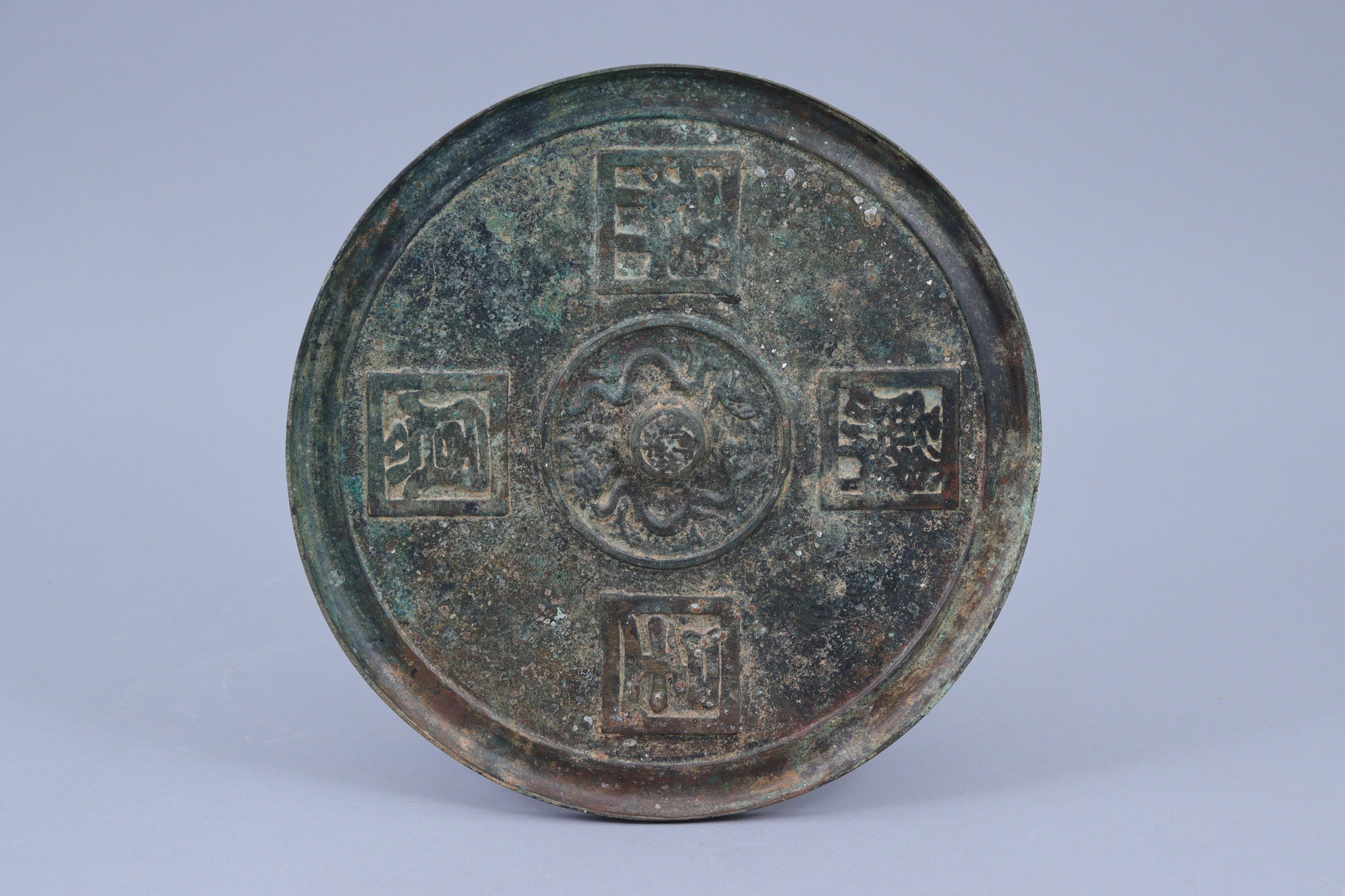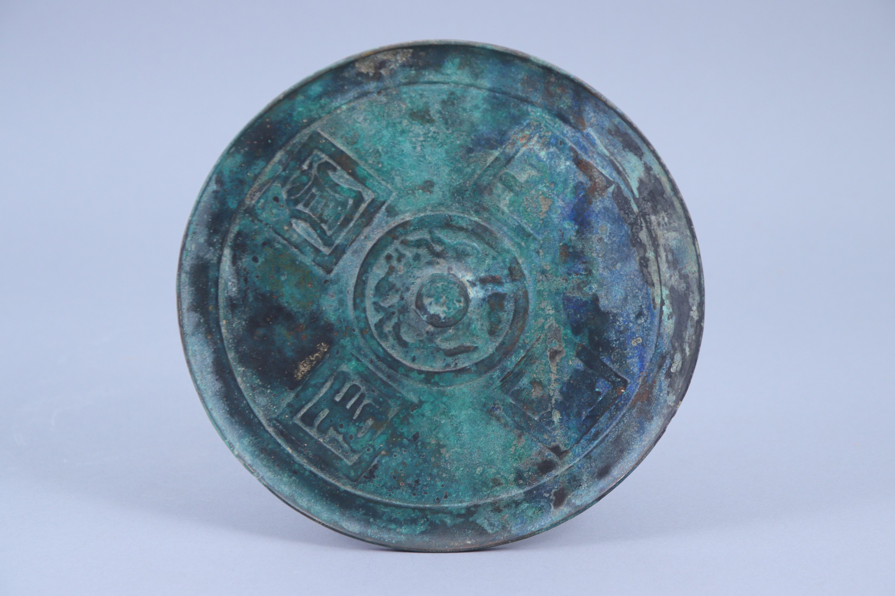 à décor chacun de quatre caractères entourant un motif central de dragon pour l'un et de trigrammes "bagua" pour l'autre.