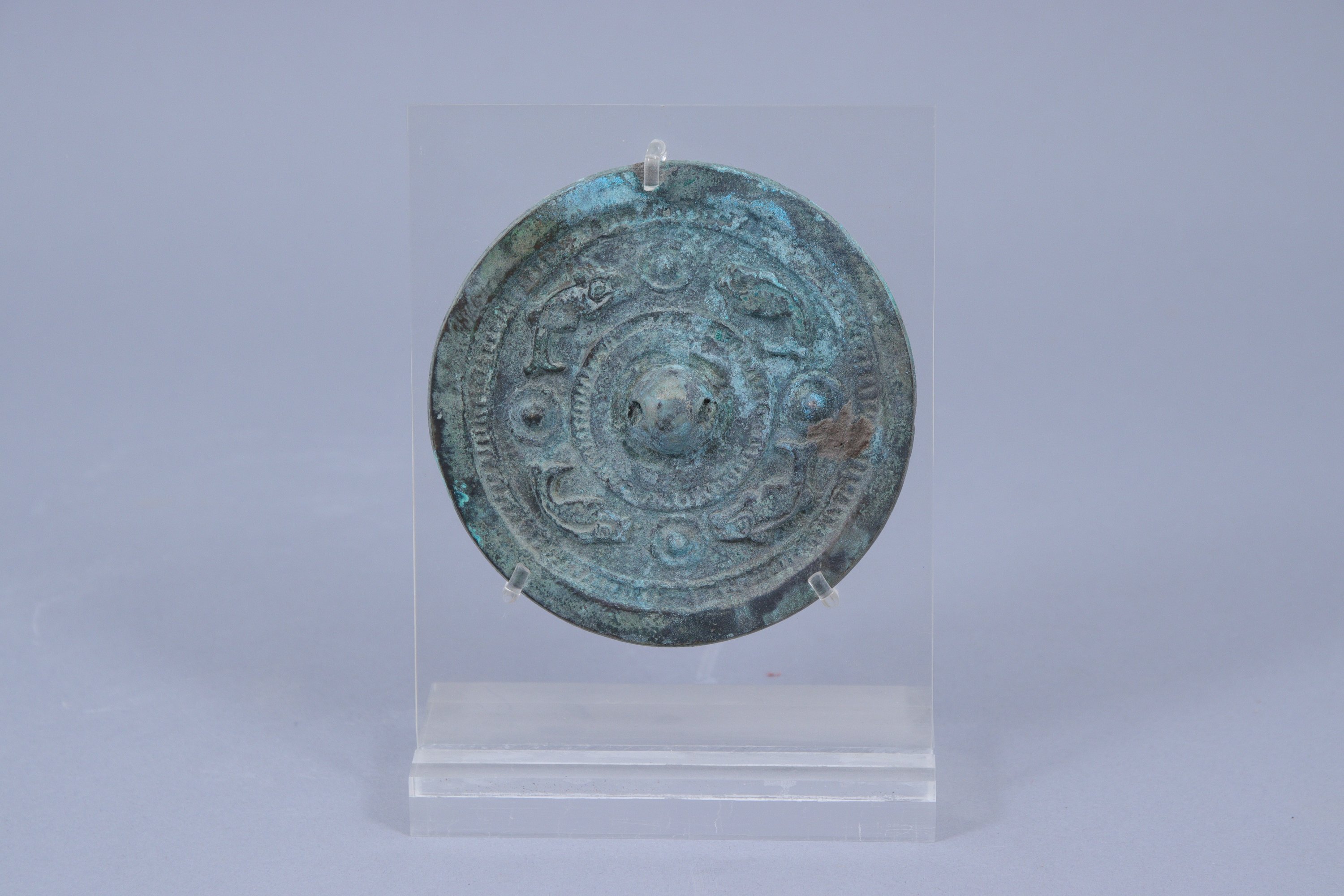 en bronze à décor de poissons, fleurs et loirs et motifs géométriques.
