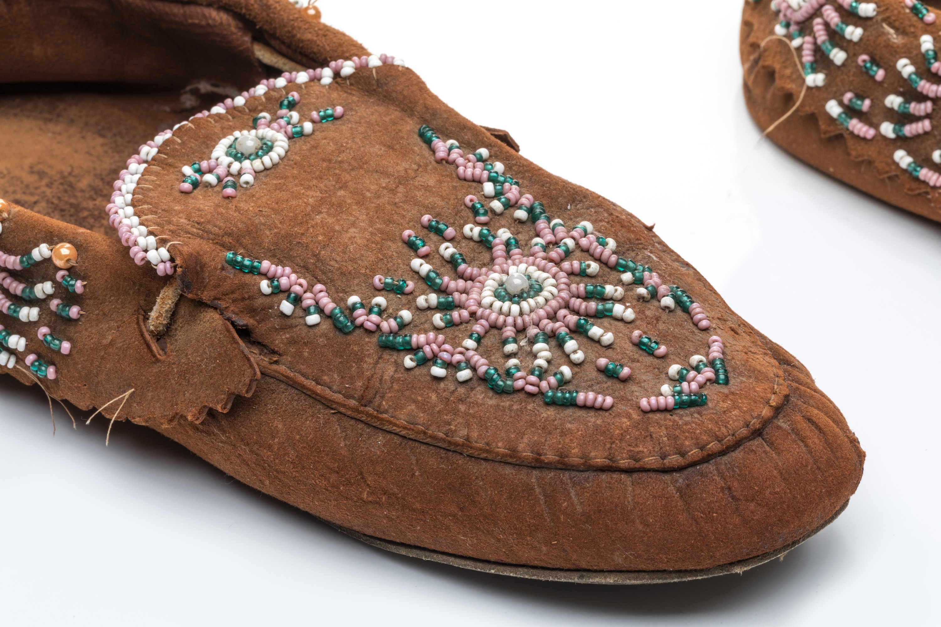 Paire de vanneries amérindiennes et une paire de mocassins
