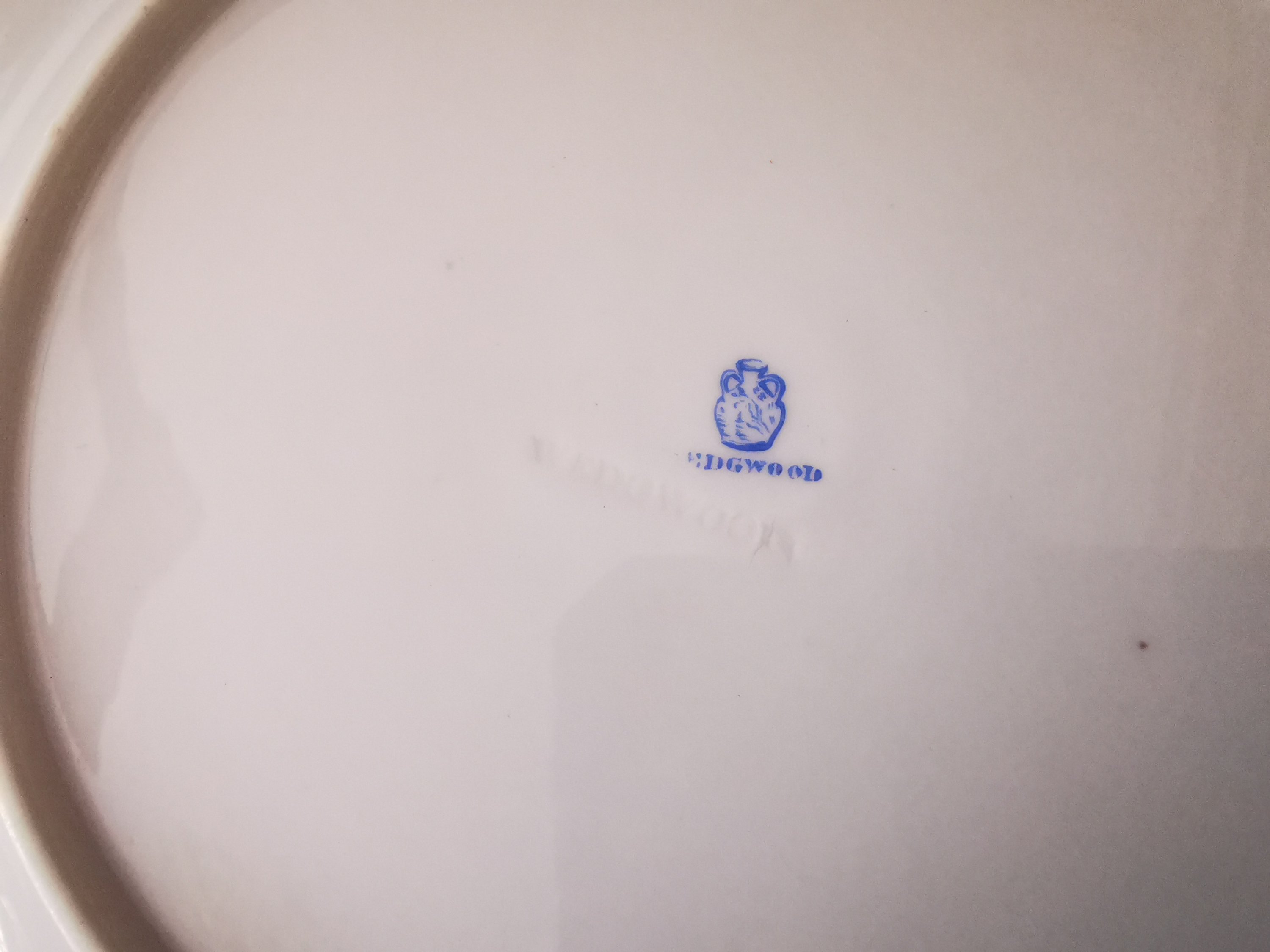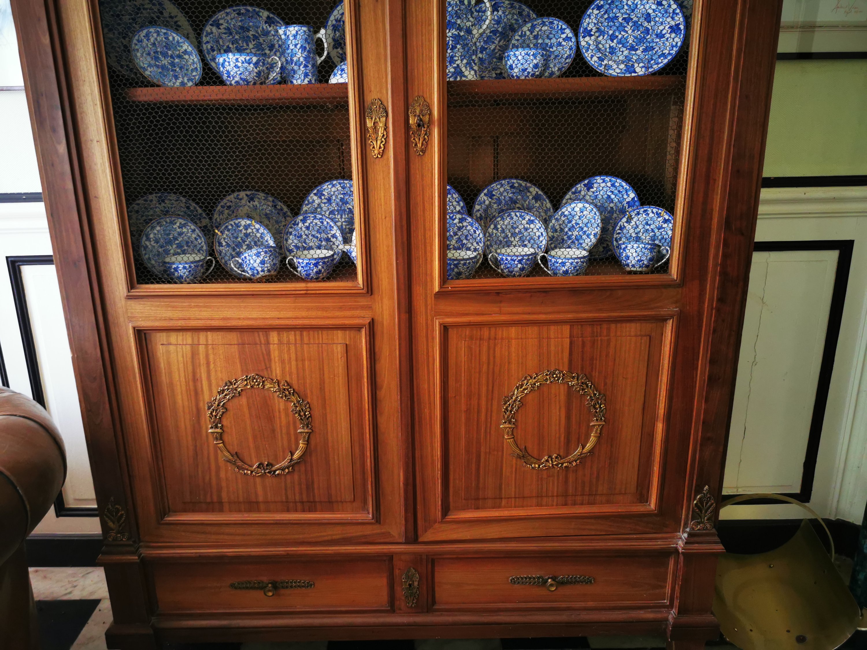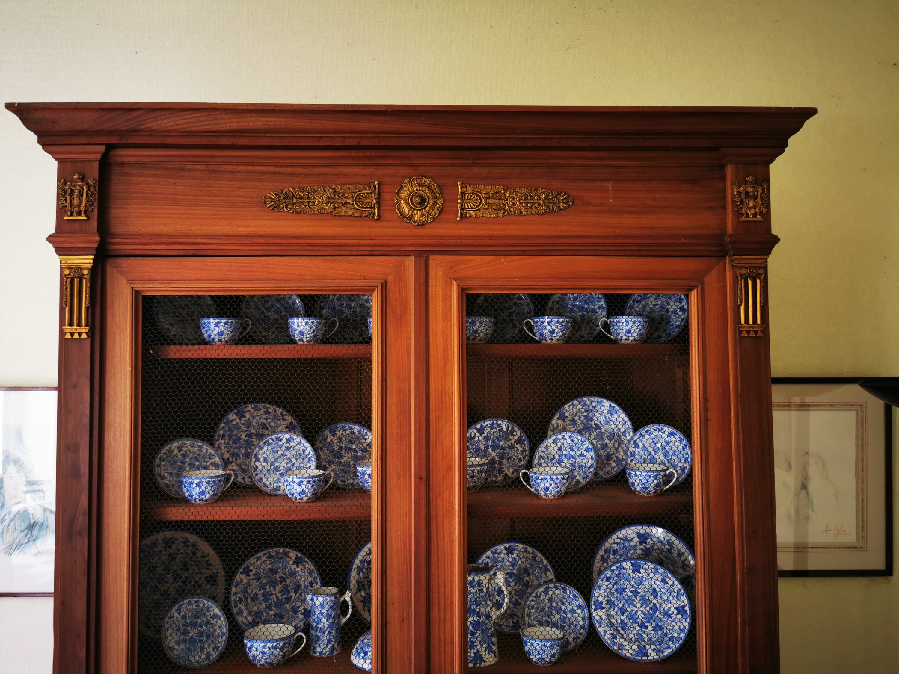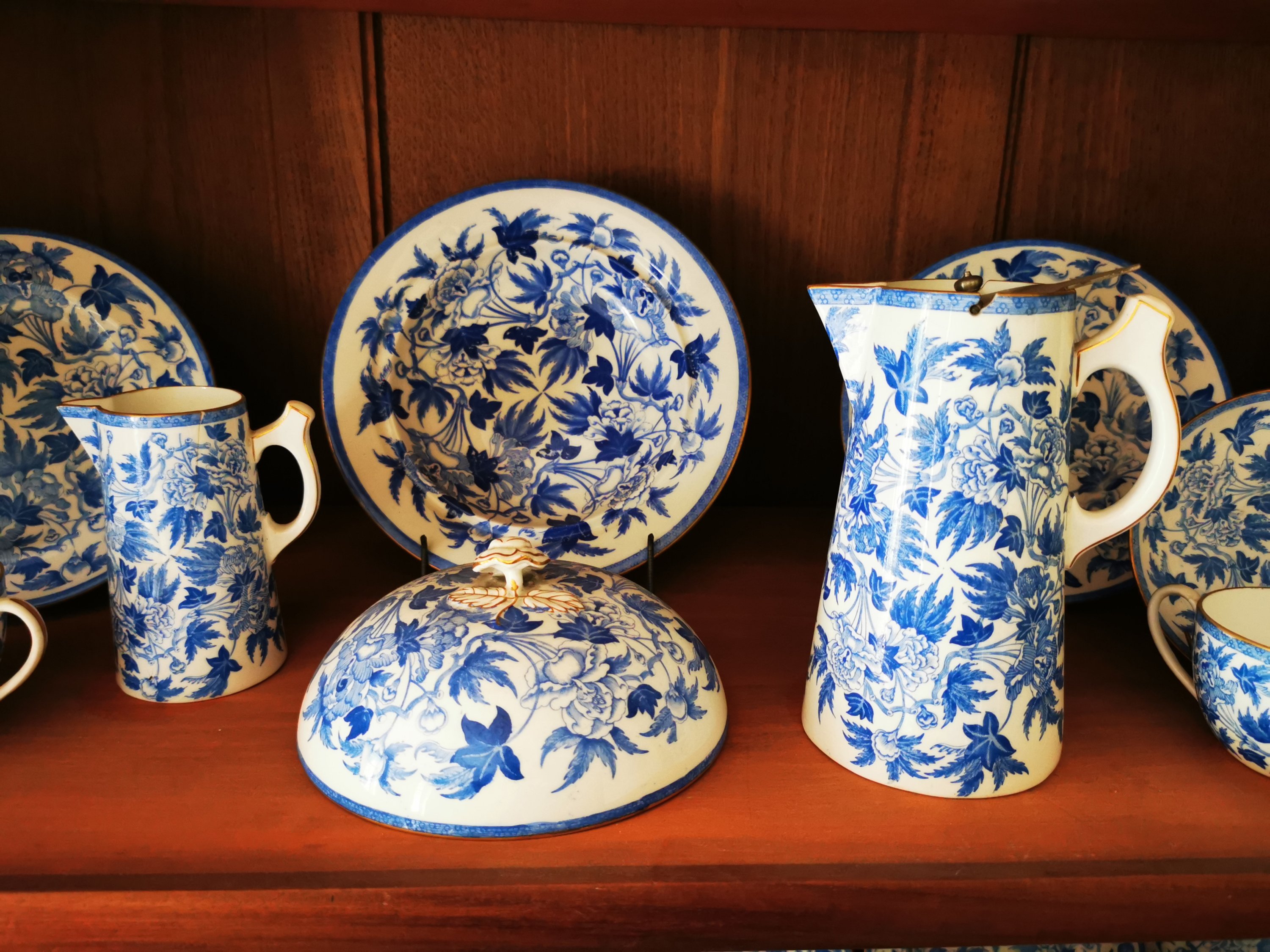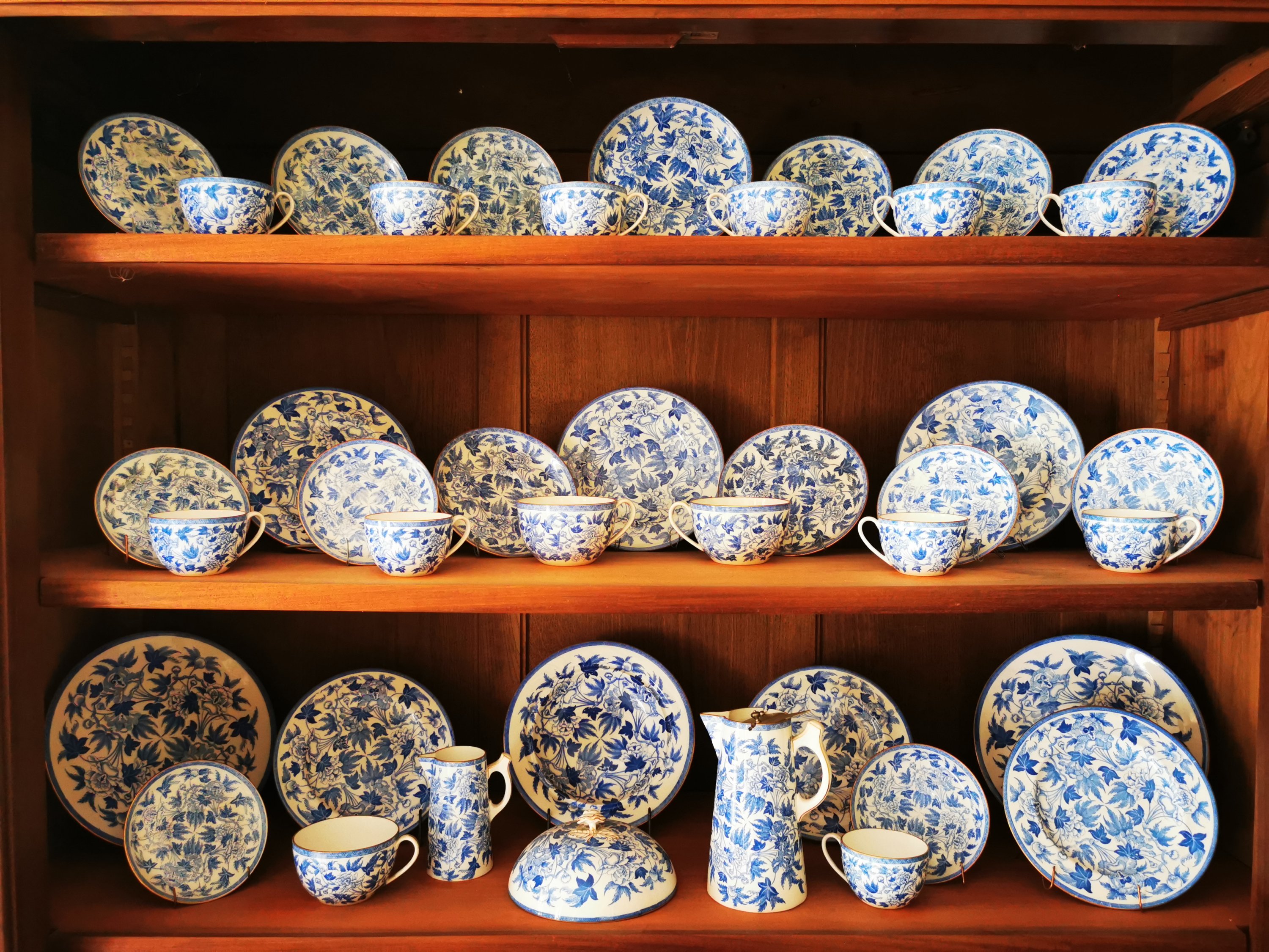 partie de service en faïence à décor bleu végétal rehaussé d'or.