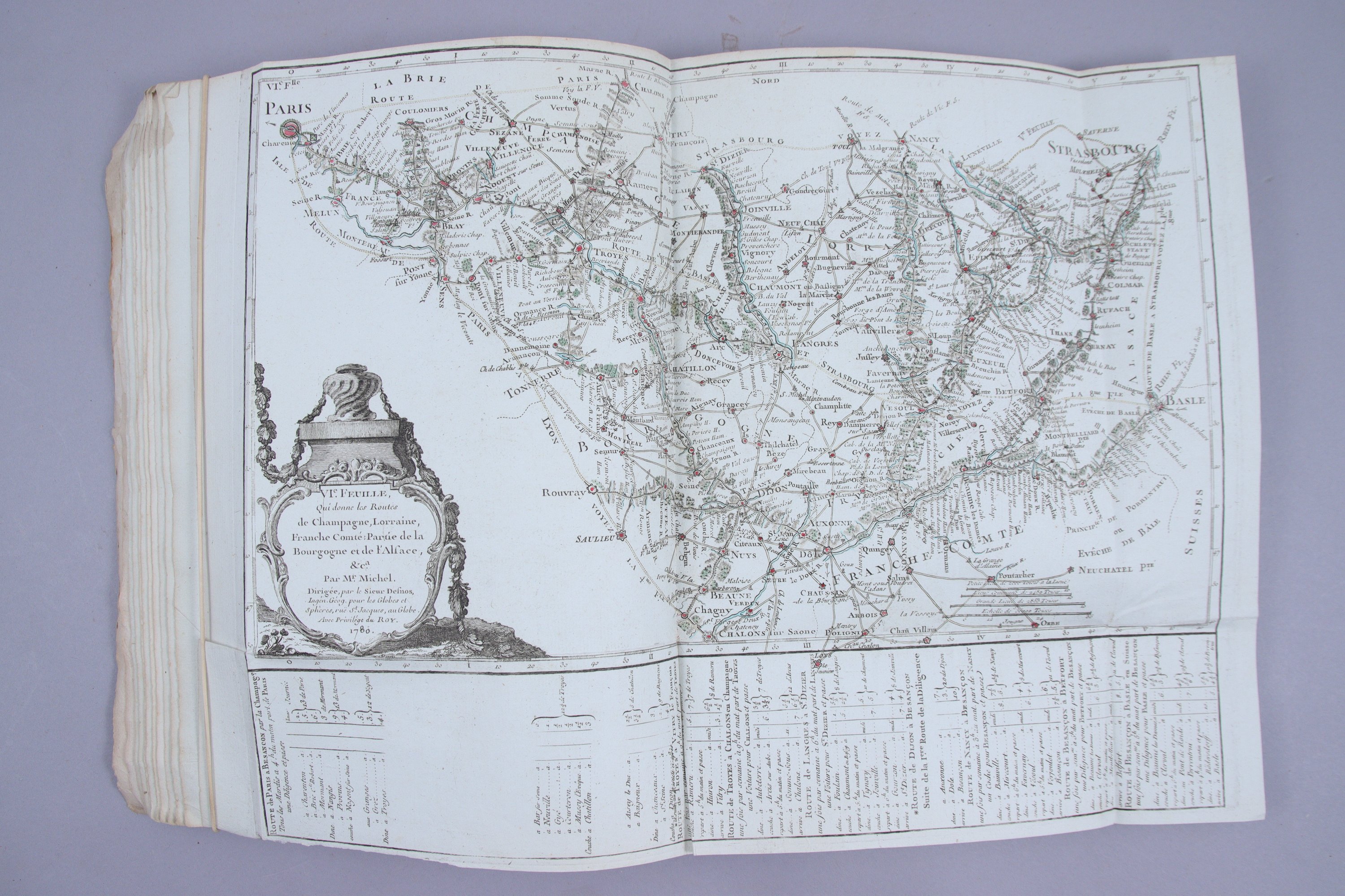 Ce guide des voyageurs est complet pour la France y compris des cartes numérotées 14 à 18, décrites dans l'Avis, à la fin du Prospectus, comme cartes supplémentaires. Un second volume, consacré aux routes des royaumes étrangers, était en vente chez Desnos en 1780.