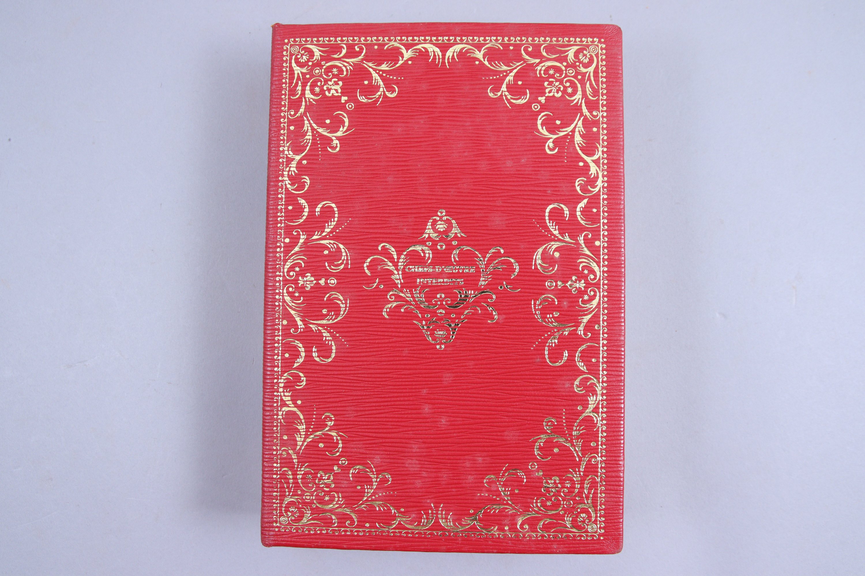 14 volumes petit in-8, plein cuir rouge avec décor doré. Illustrations. (Marquis de Sade, Crébillon fils, Louvet de Couvray, Fougeret de Montbron, Brantôme, Contes de La Fontaine, L'Arétin, Choderlos de Laclos, Boccace, érotiques grecs, érotiques latins, érotiques chinois, érotiques indiens, etc...)