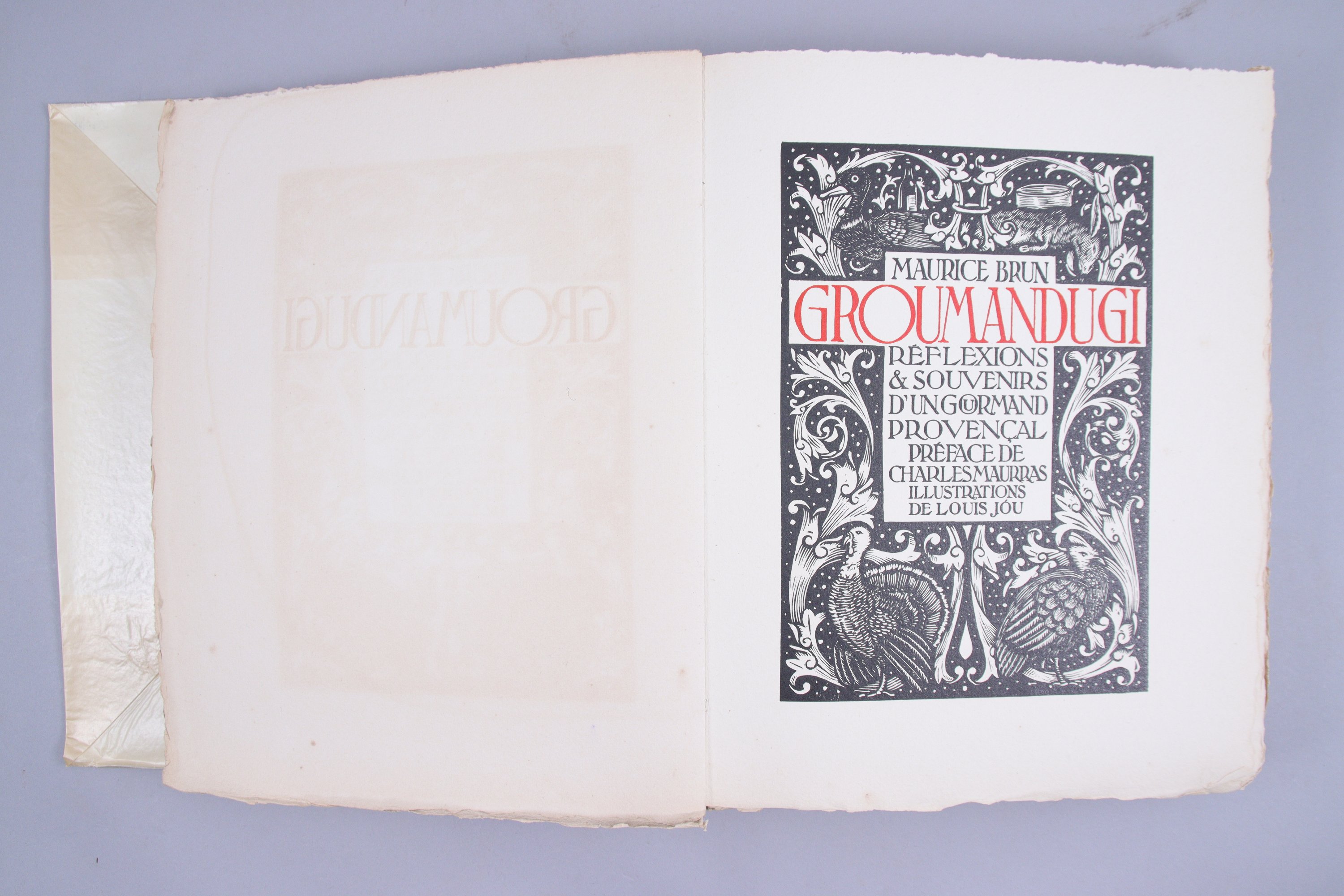 Groumandugi. Réflexions et souvenirs d'un gourmand provençal. Préface de Charles Maurras. Illustrations de Louis Jou.