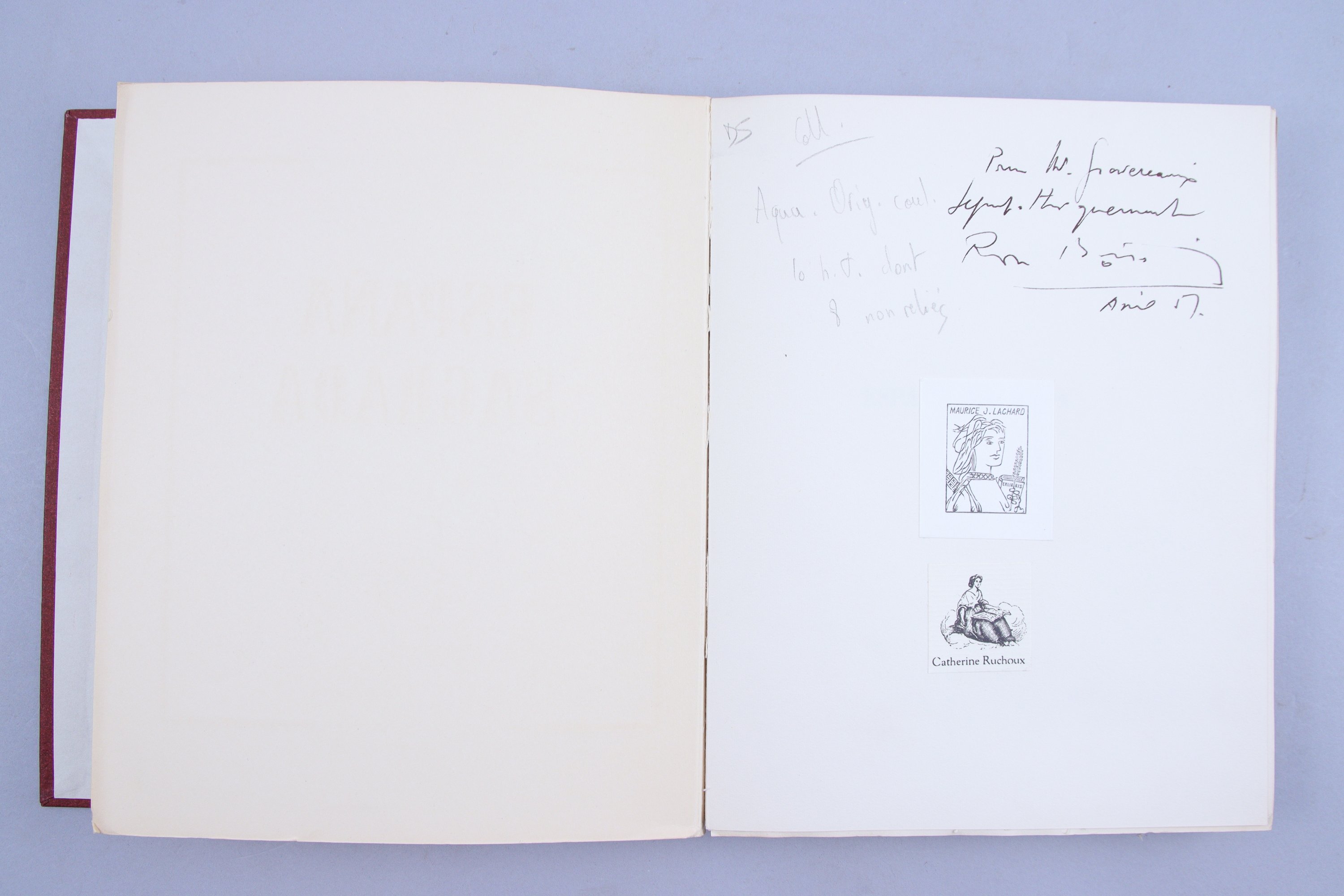 Ont-été ajoutées: une aquarelle originale signée, et 8 eaux-fortes sur les corridas, dont une sur Chine, toutes signées Roger Bertin "épreuves d'artiste".