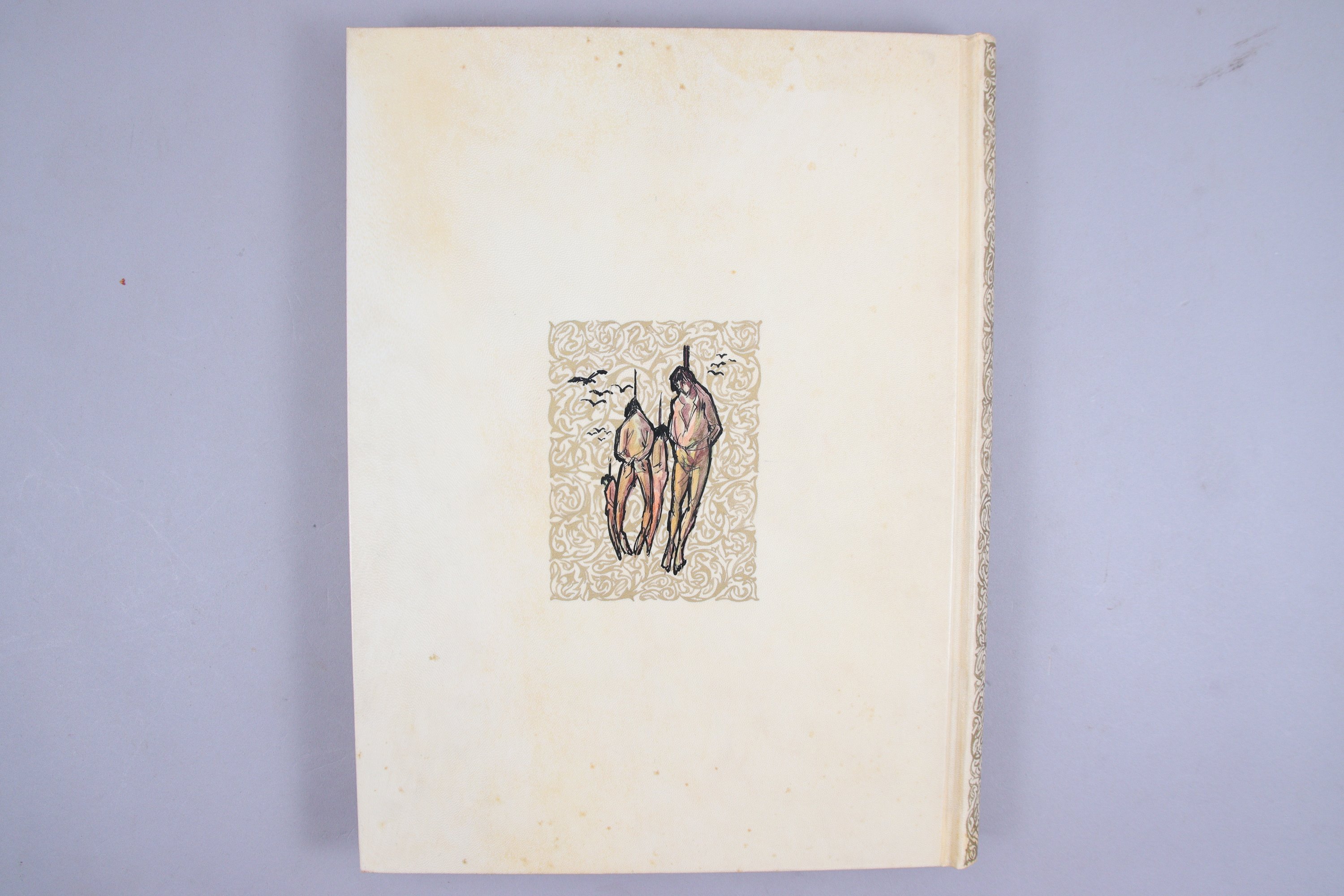 Grand in-4°, plein vélin rigide décoré sur les plats de grandes miniatures appliquées en couleurs, et signées Ansaldi. Reliure de l'éditeur.