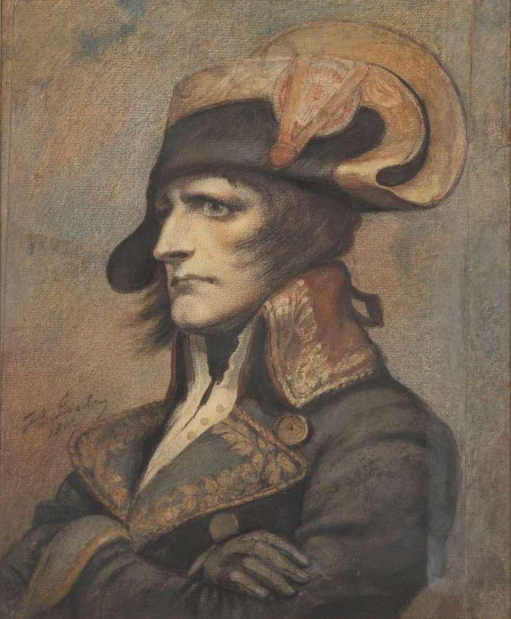 Pierre noire rehaussée d'aquarelle. Porte une signature en bas à gauche. "JB. Isabey. 1802". Bande de papier d'environ 2 cm rajoutée à droite.