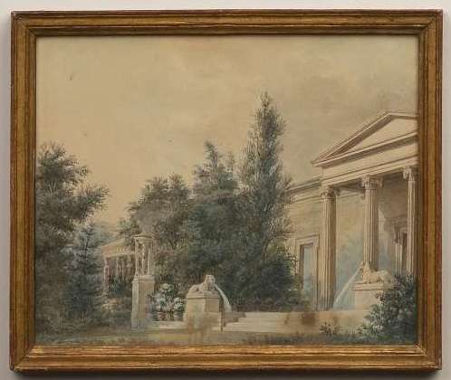 École FRANÇAISE vers 1810, entourage de Charles PERCIER.Vue d'une villa...