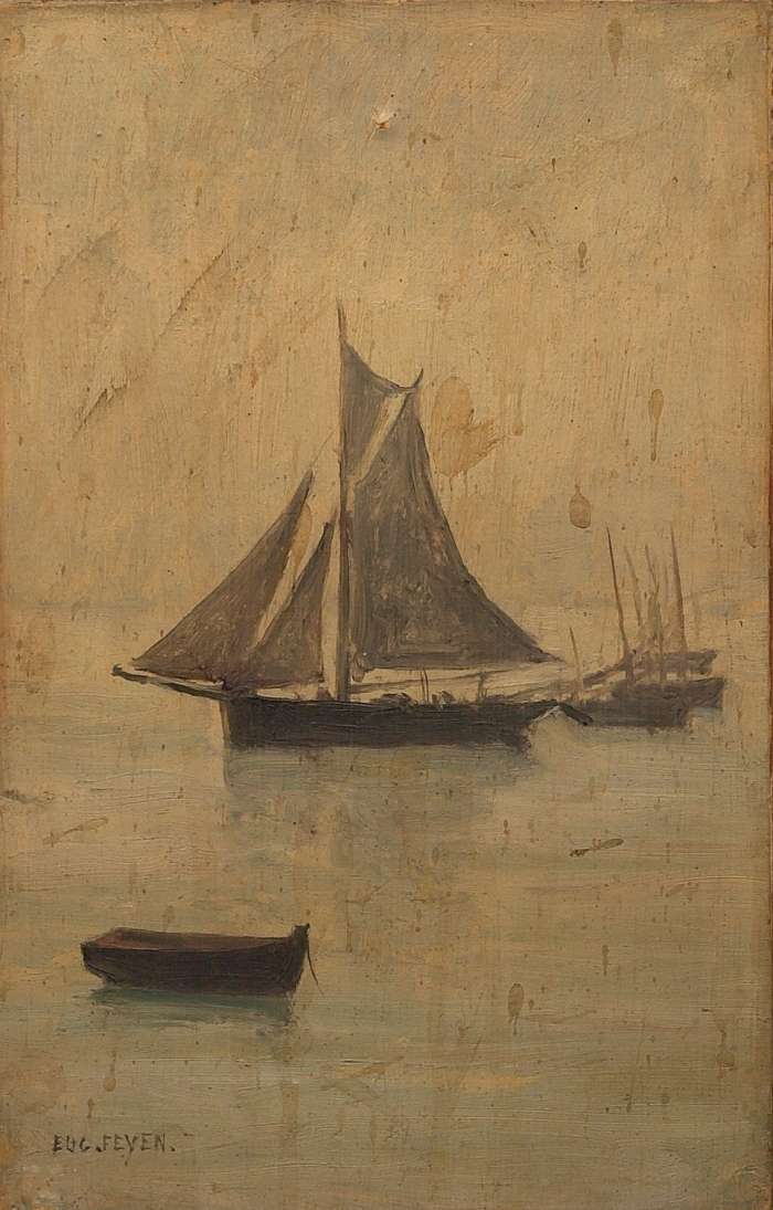 Eugène FEYEN (1815-1908).Marine.Huile sur carton, signée en bas à gauche.25...