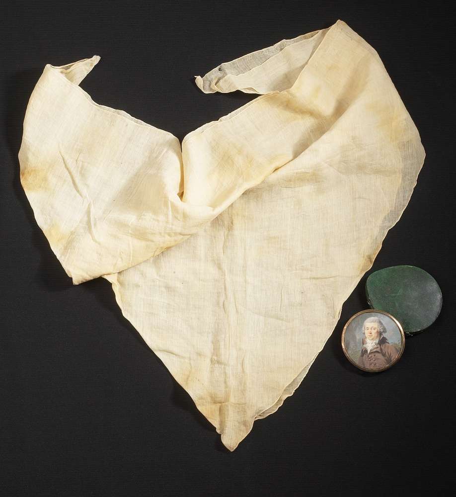 Cette cravate a été offerte par le roi Louis XVI à Monsieur Vincent, conseiller général de la Commune, jugé par le tribunal révolutionnaire le 11 Th. An 2, exécuté le même jour.