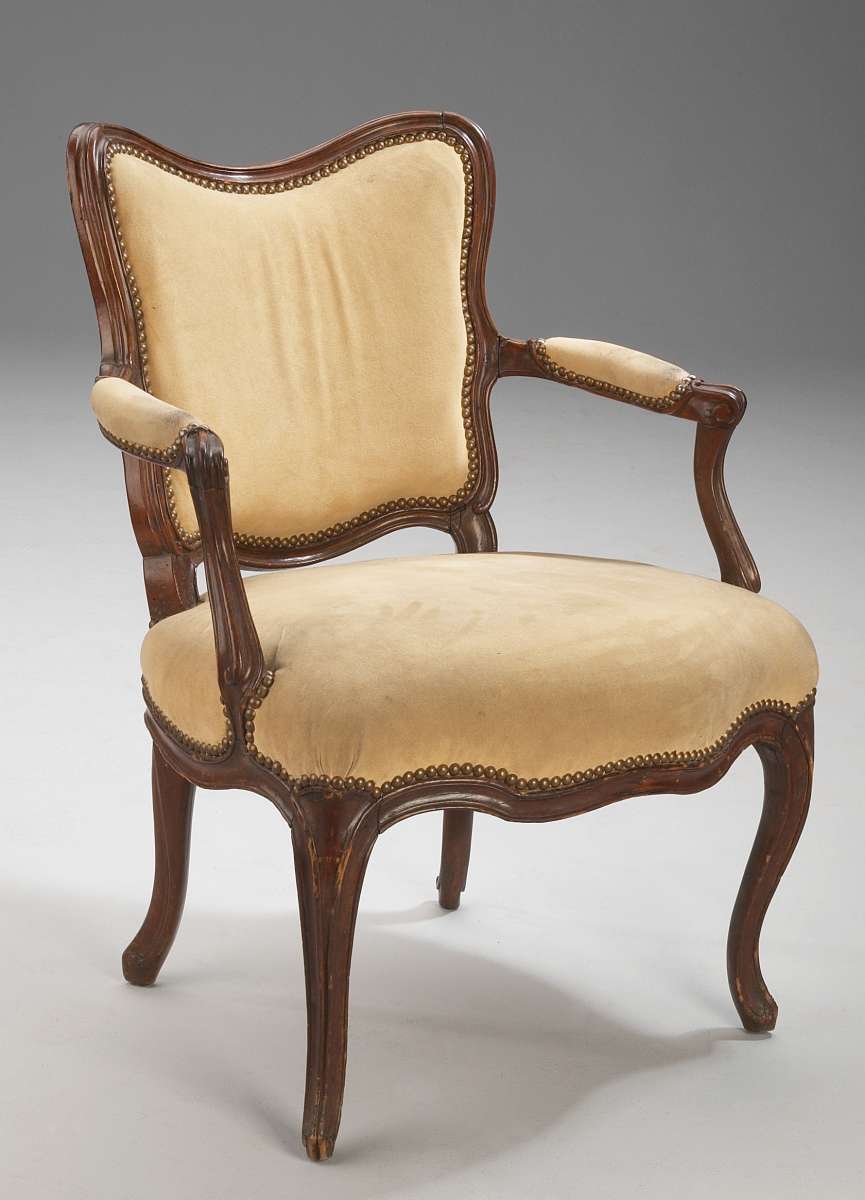 FAUTEUIL à COIFFER, dit de TOILETTE en hêtre teinté et mouluré. Dossier cabriolet, au montant supérieur échancré. Ceinture mouvementée et légèrement bombée. Piètement galbé.