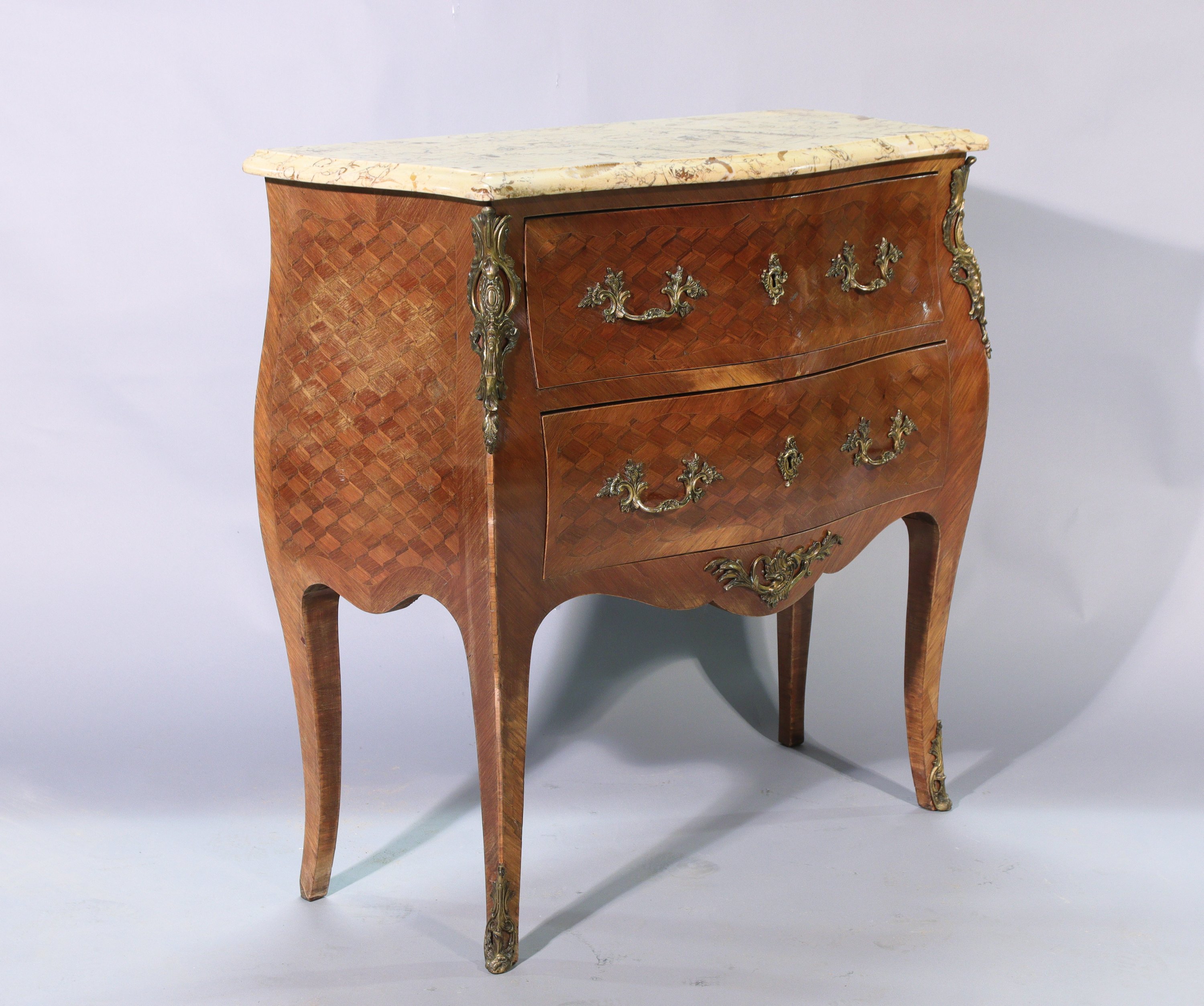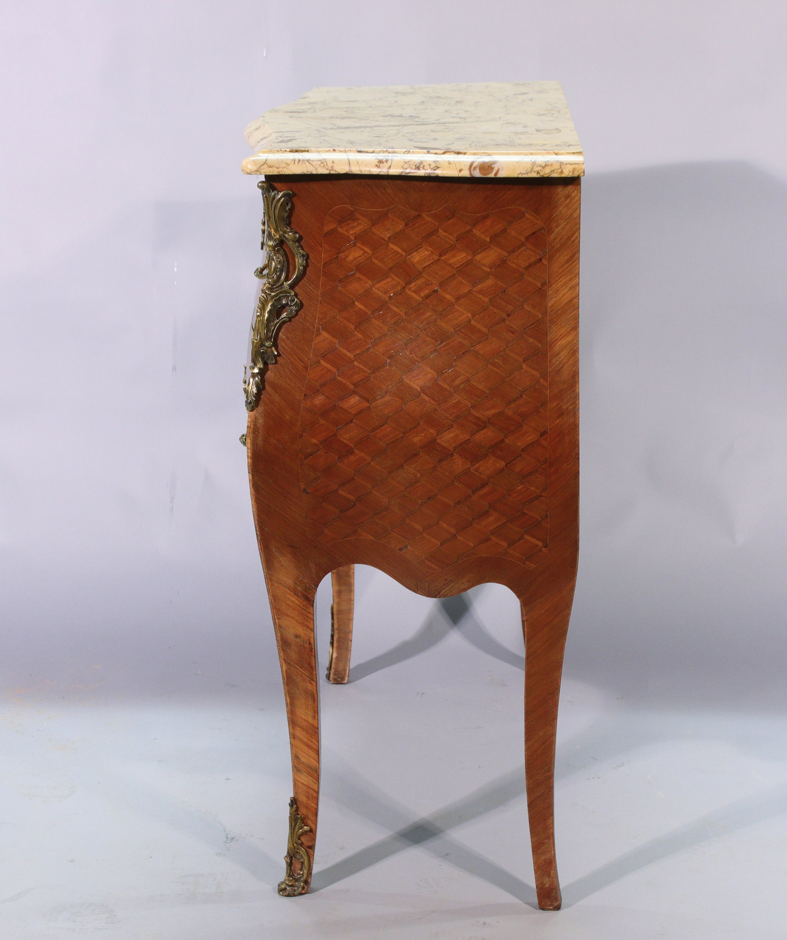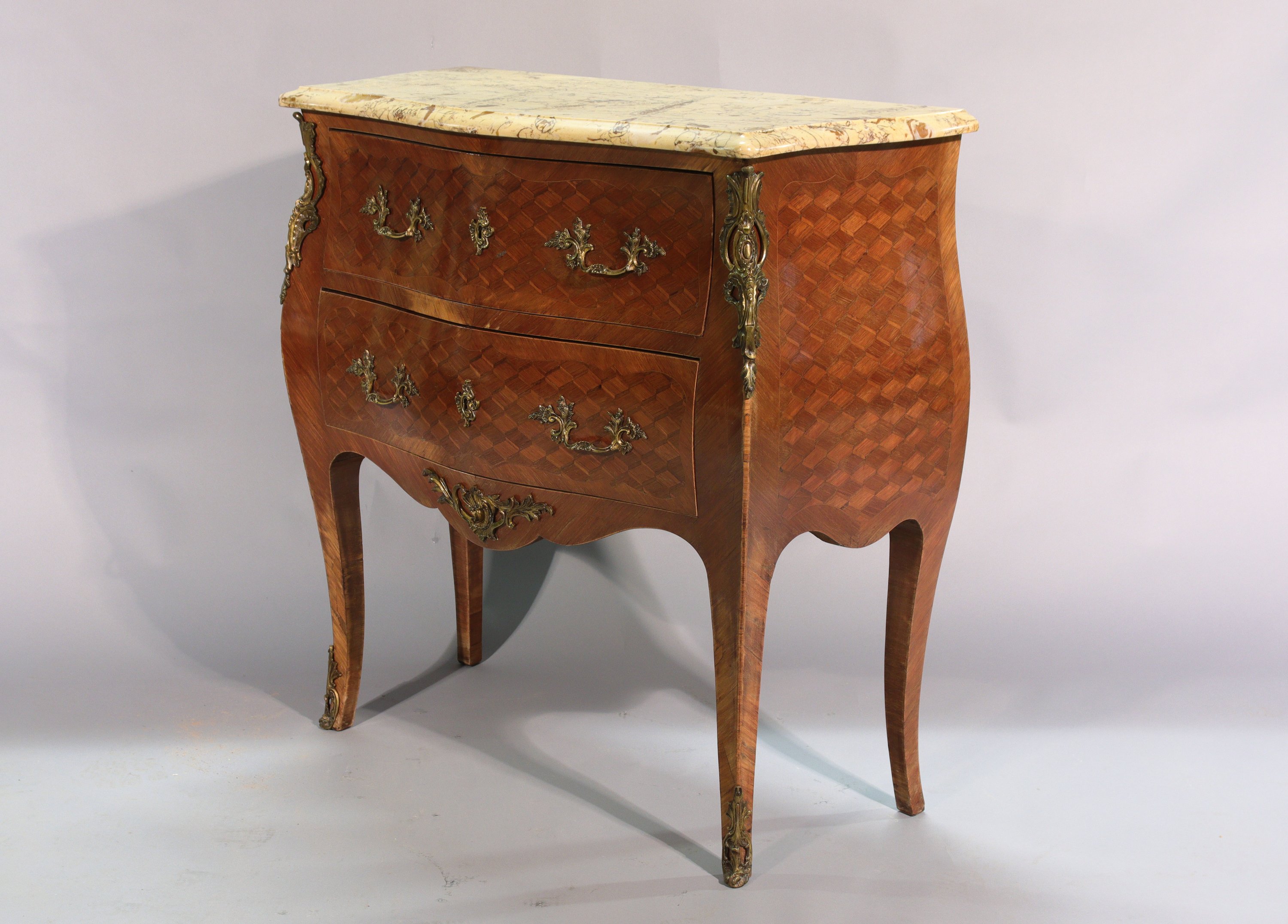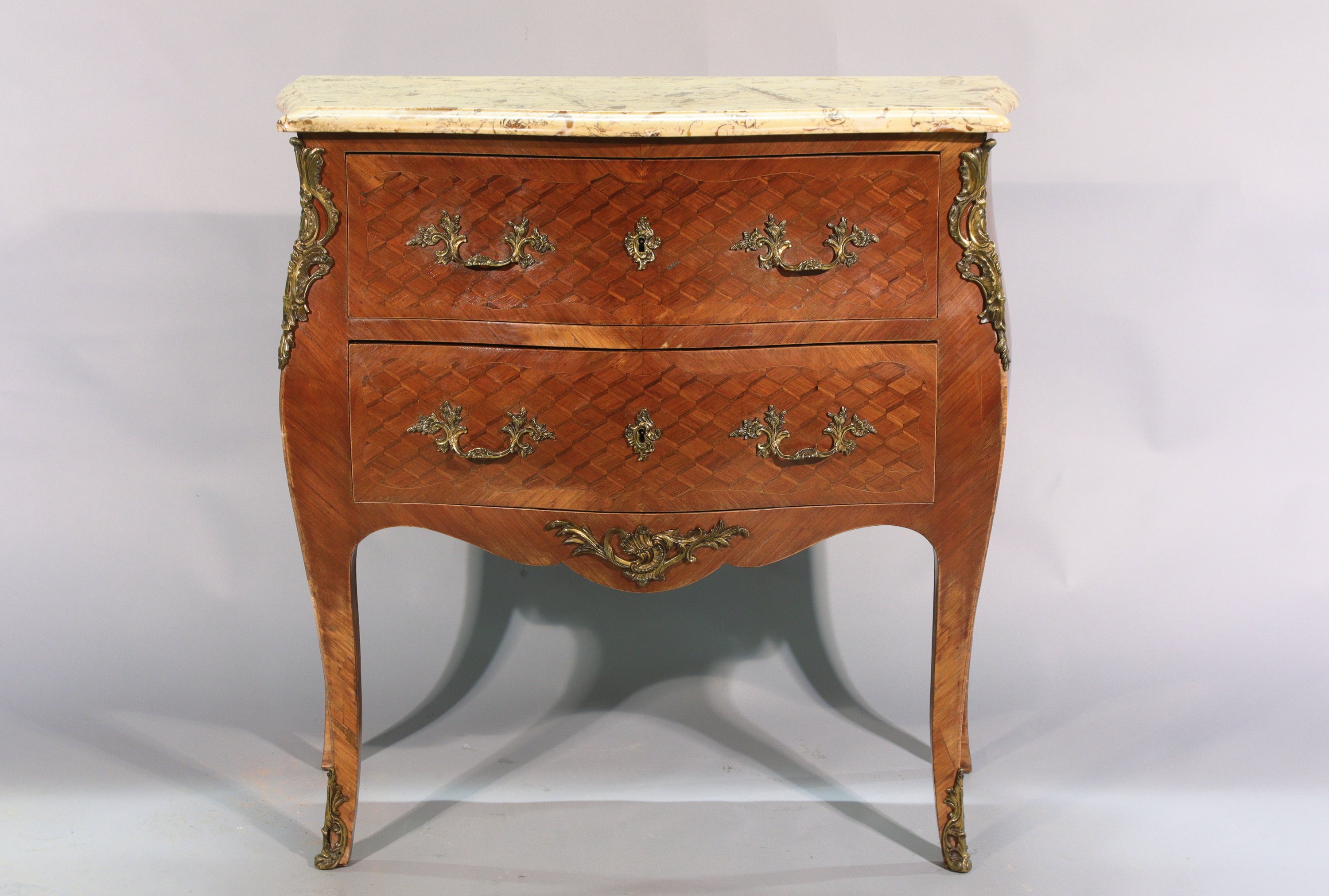Maison Jansen Commode sauteuse en placage de bois de rose à façade bombée. Elle ouvre par deux...