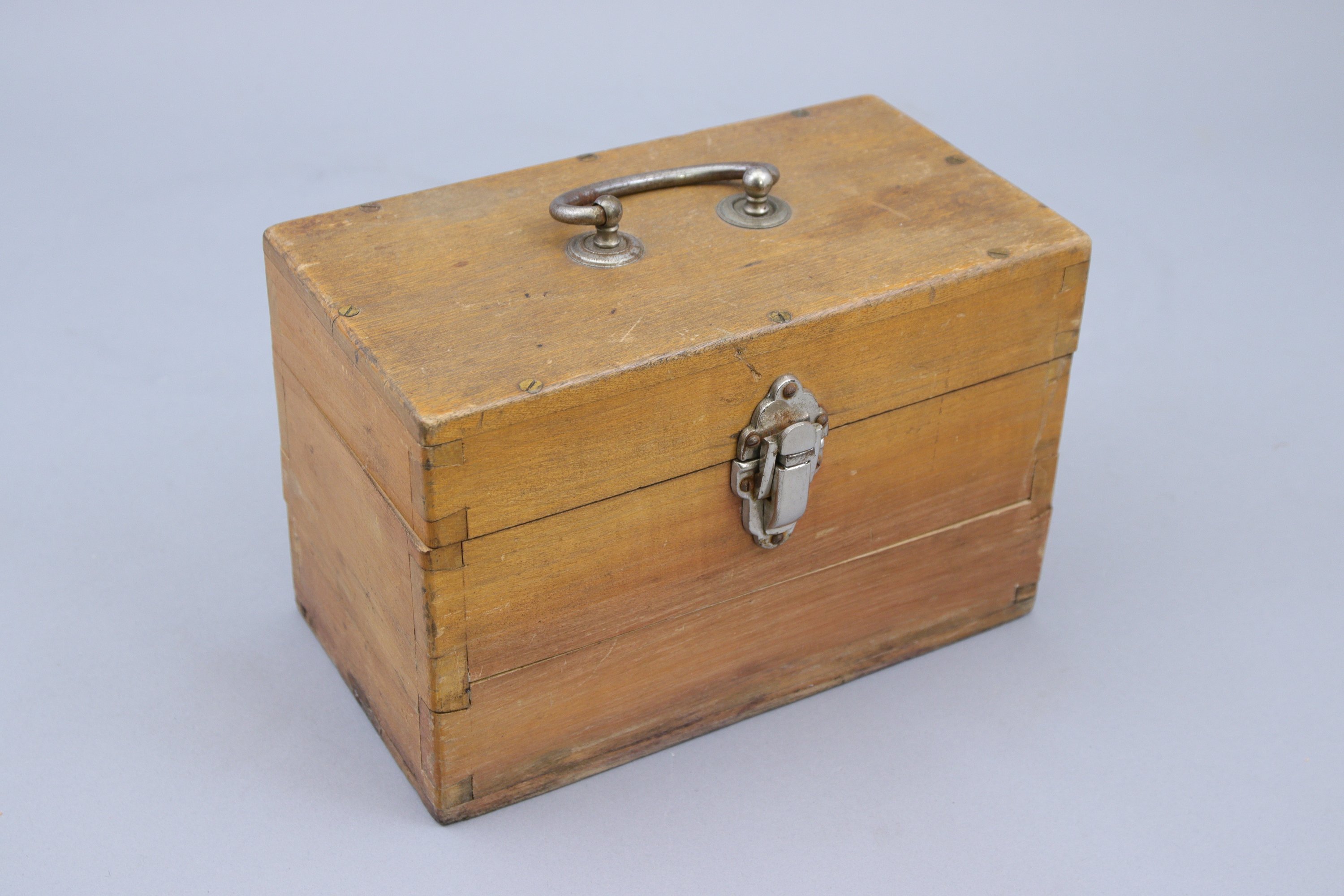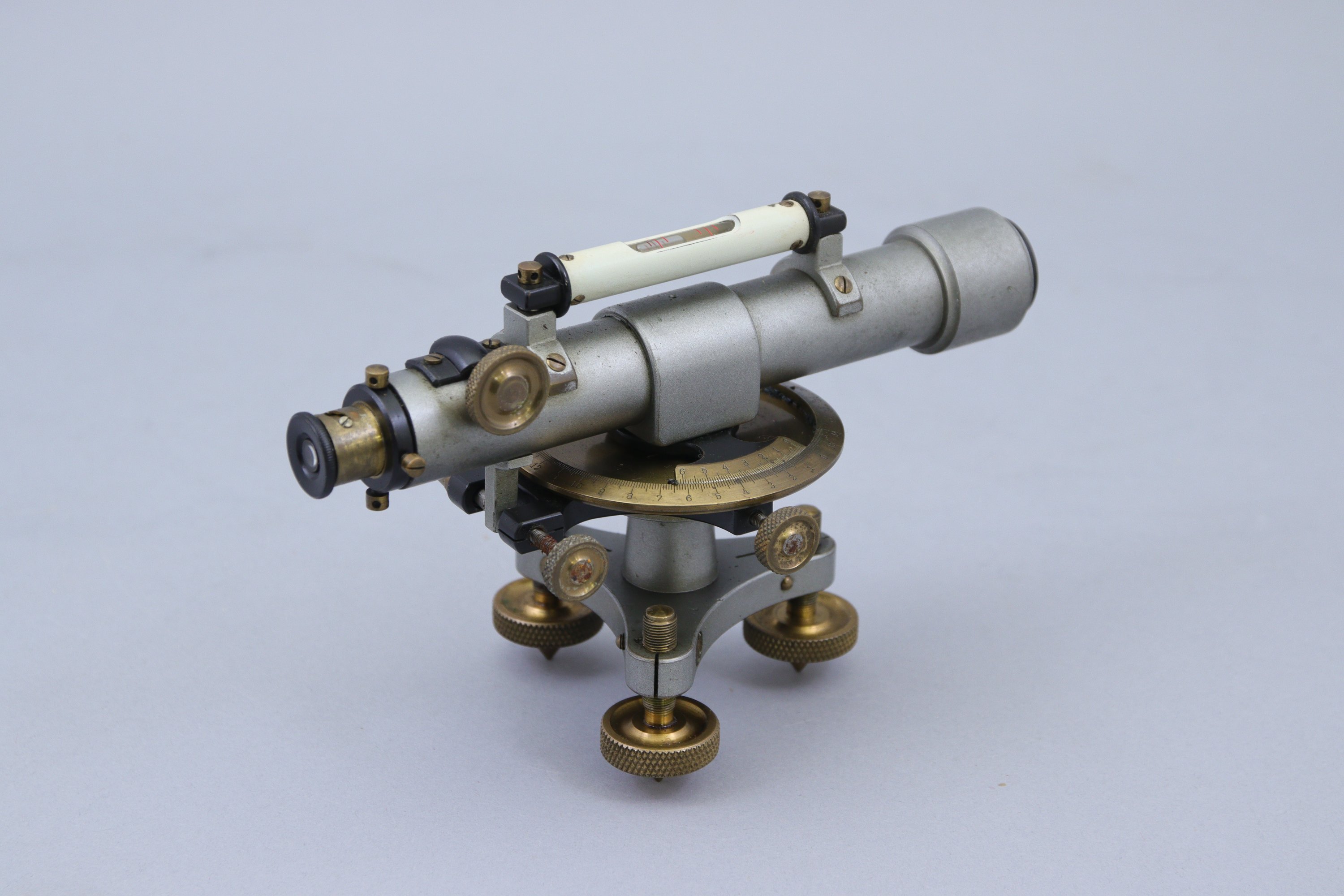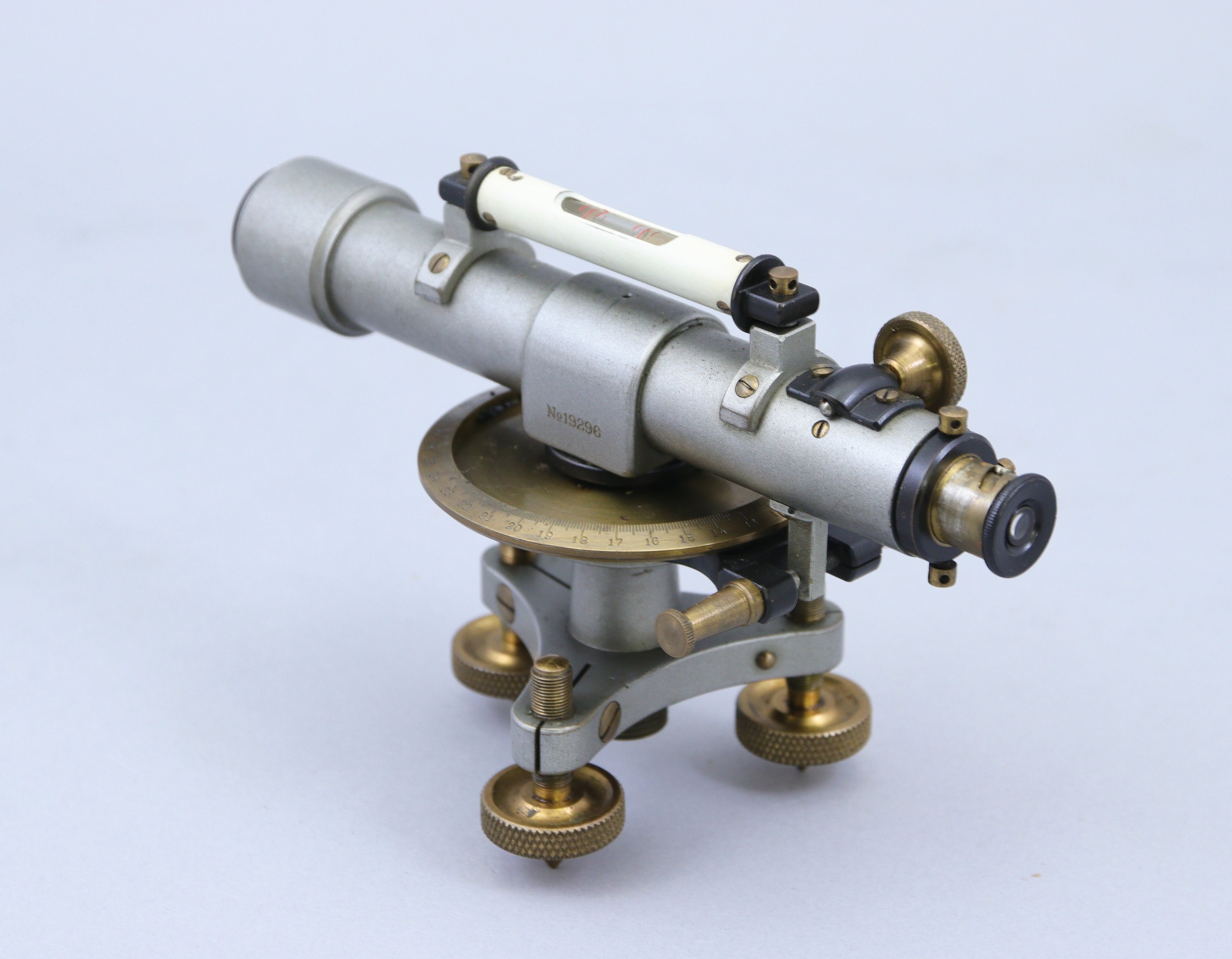- Hochapfel à Sarrebruck. Théodolite en laiton et métal. Numéroté "19296". Long. 17 cm. Dans un coffret en bois du fabricant.
