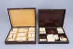 Deux boites à jeu de forme rectangulaire : - La première en palissandre teinté noir,...