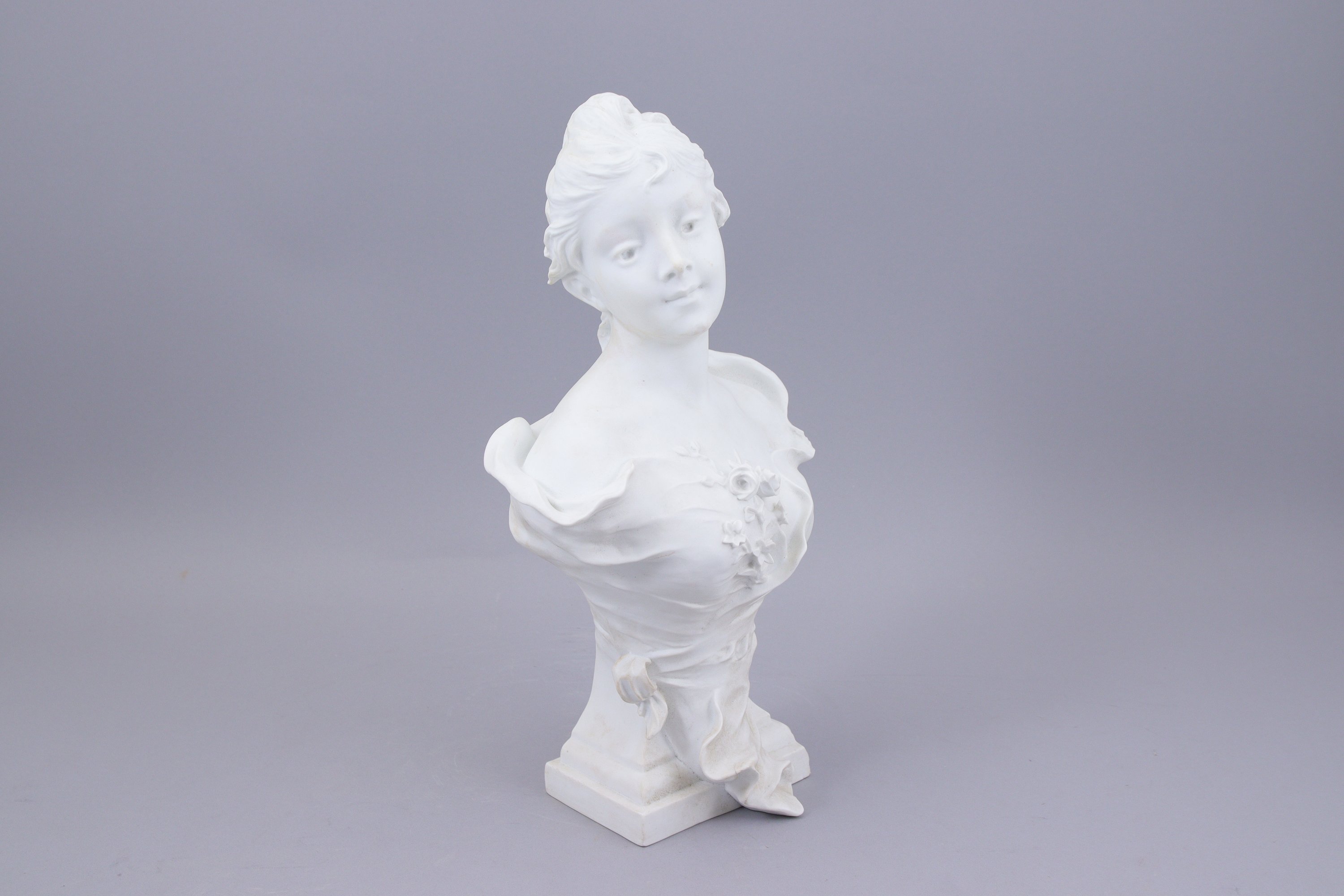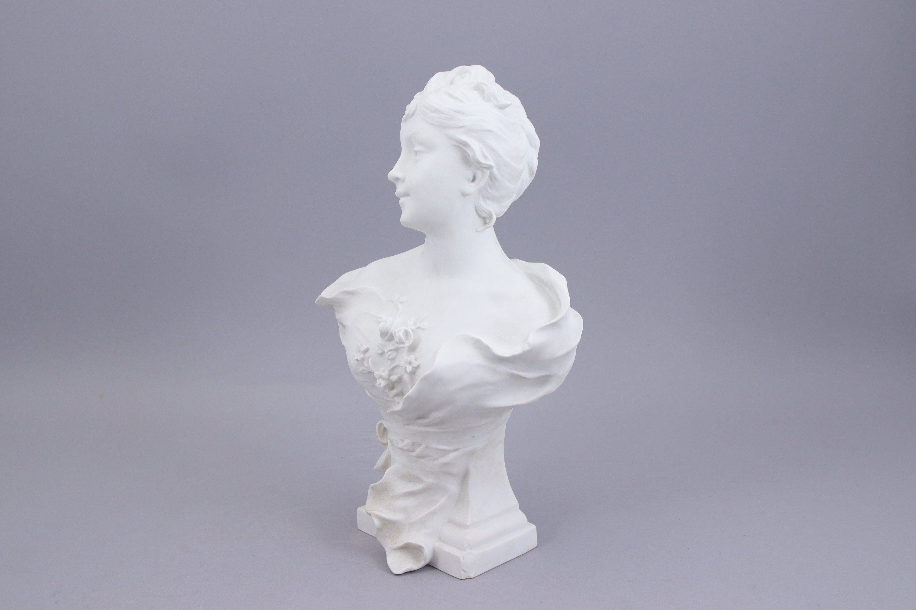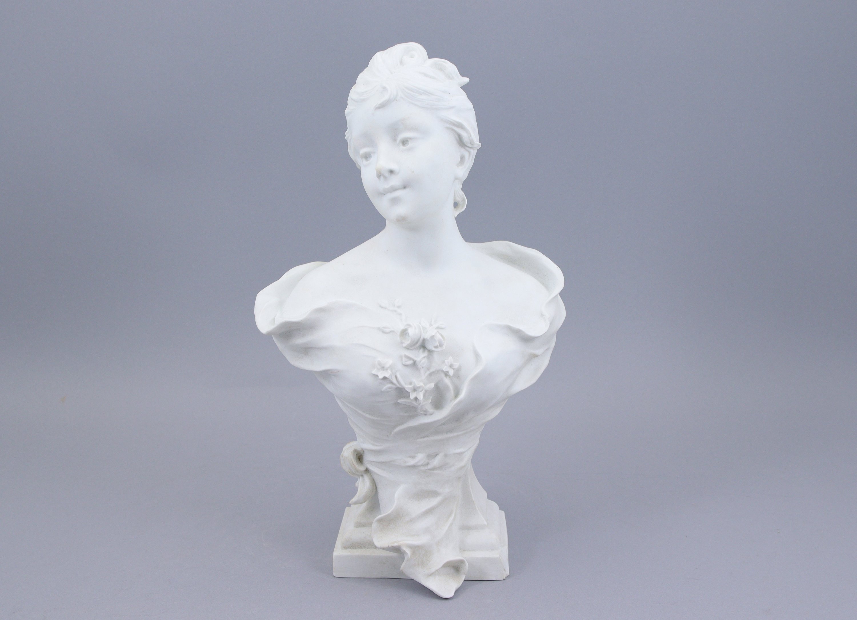 Sylvain Kinsburger (1855-1935)Portrait d'une élégante Epreuve en biscuit. Signée au dos. Haut. 38 cm.(éclats)