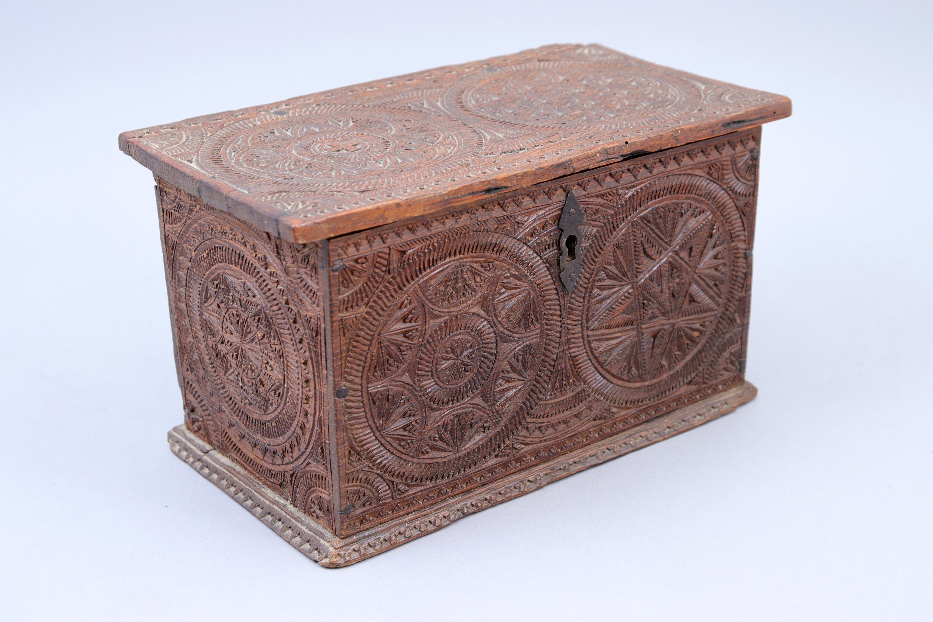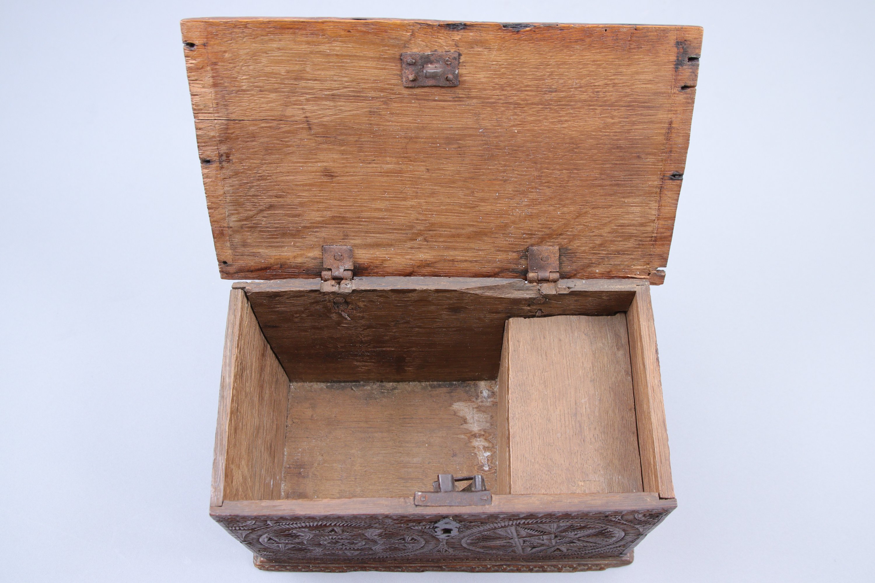 Travail populaire ancienCoffret de messager en bois gravé sur toutes ses faces de mandalas dans...