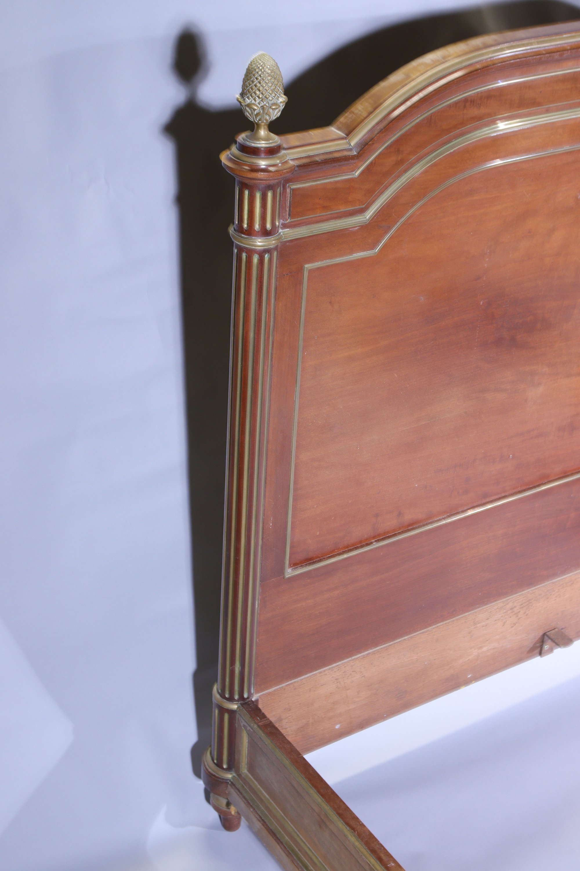 Lit en acajou mouluré et placage d’acajou. La tête en chapeau de gendarme entourée de...