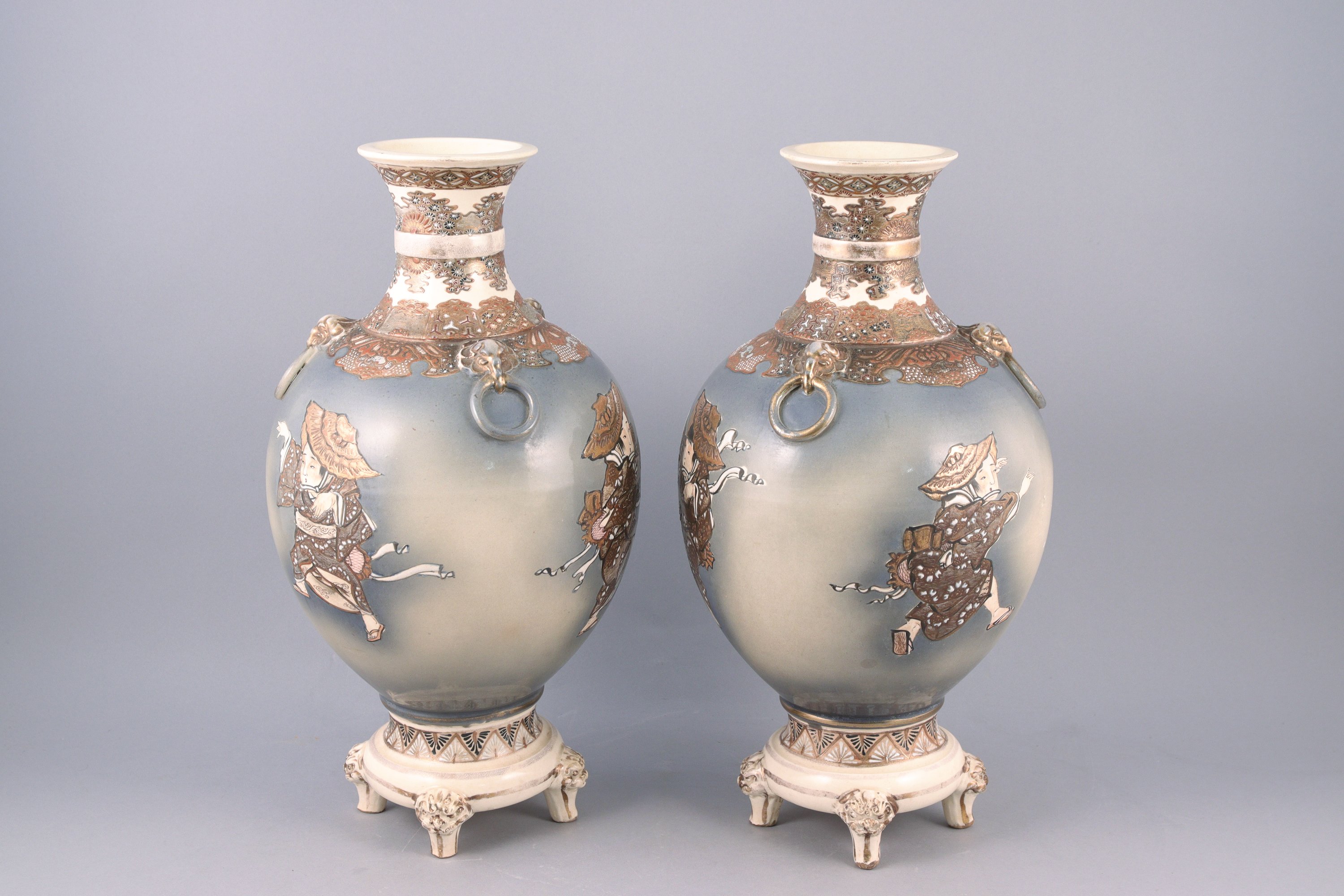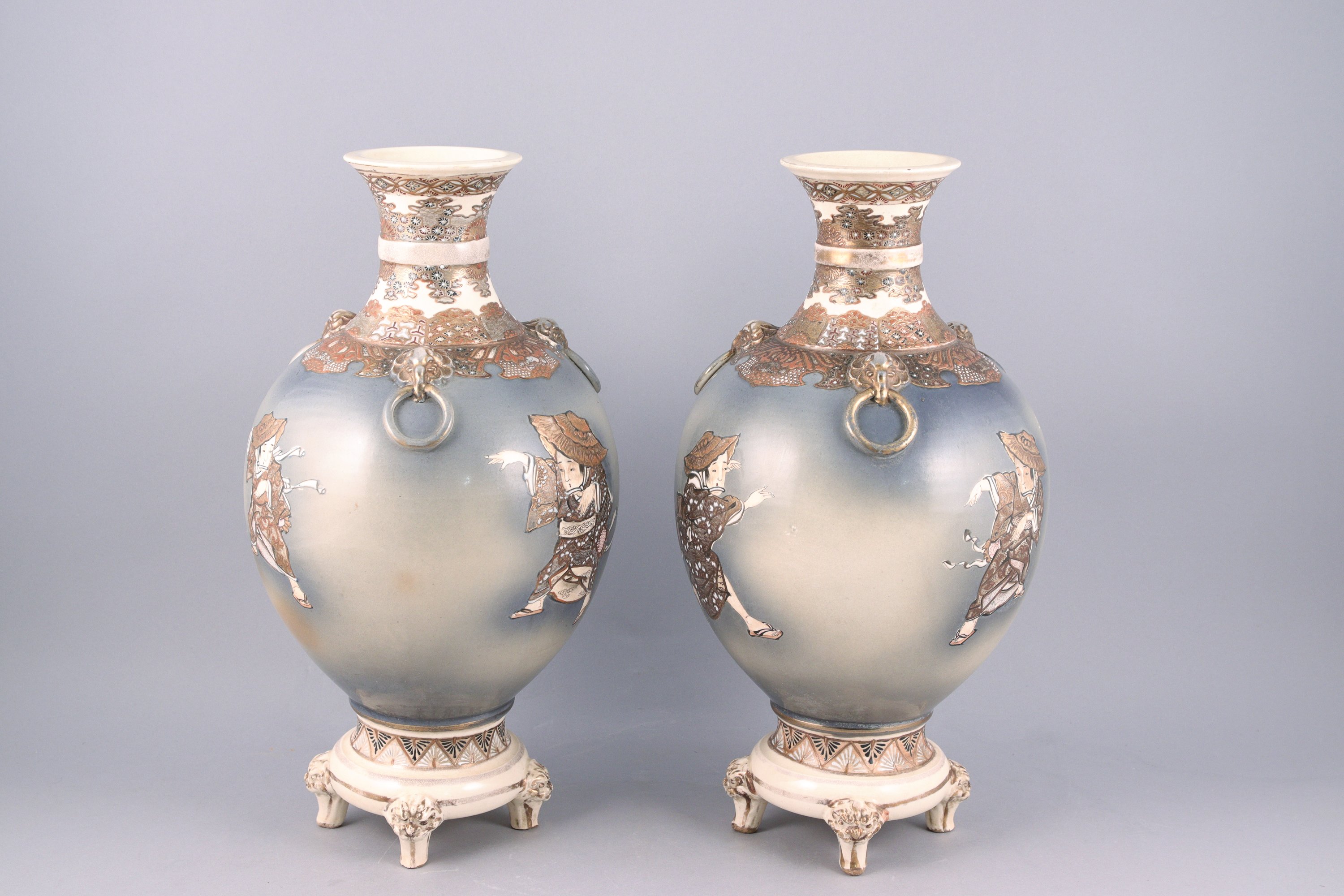 en porcelaine polychromée et dorée. Le col à décor géométrique, l'épaule à têtes de chien de fô stylisées tenant un anneau. La panse à décor de quatre personnages. Ils reposent sur quatre pieds surmontés de têtes de chien de fô.