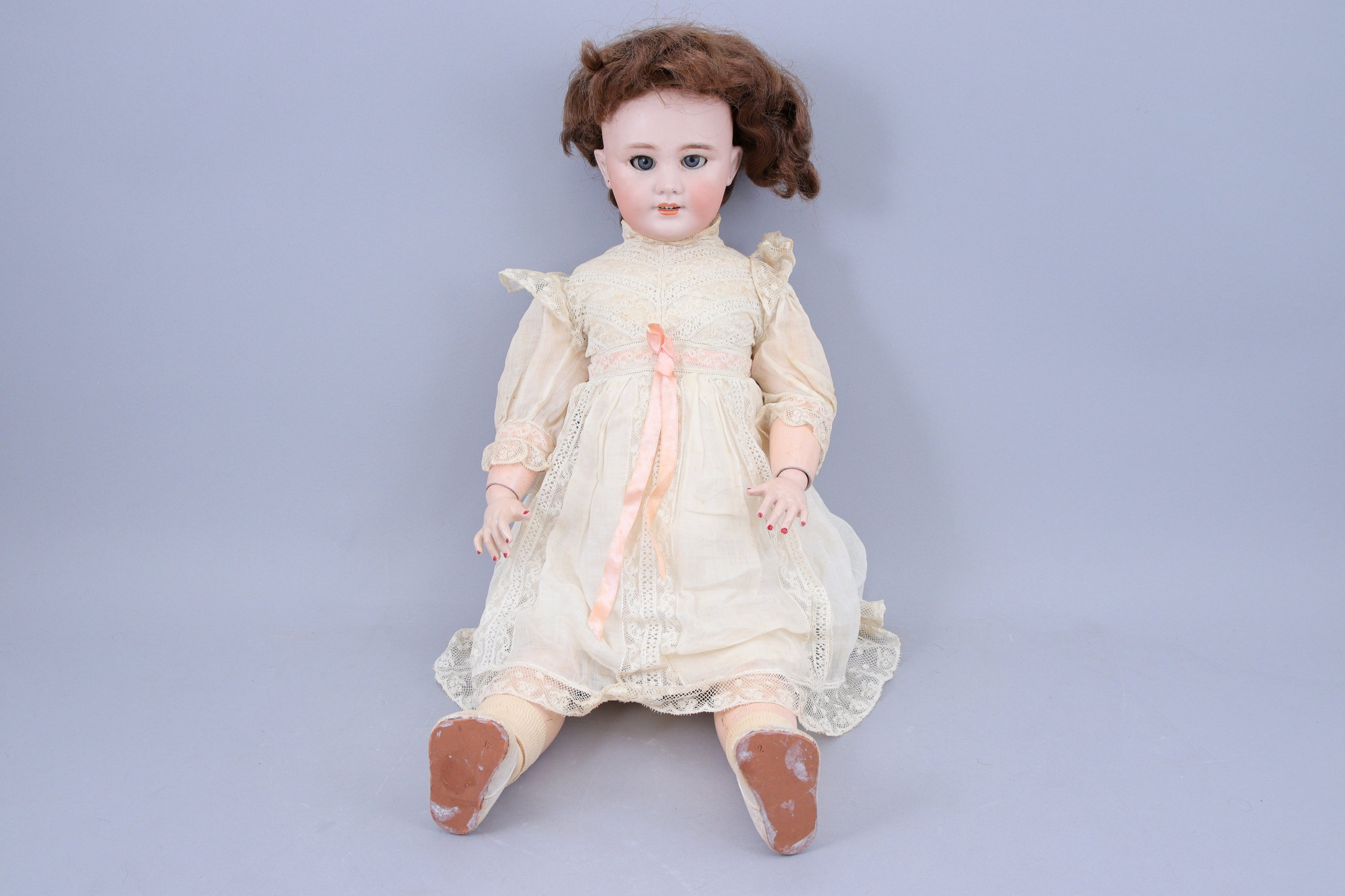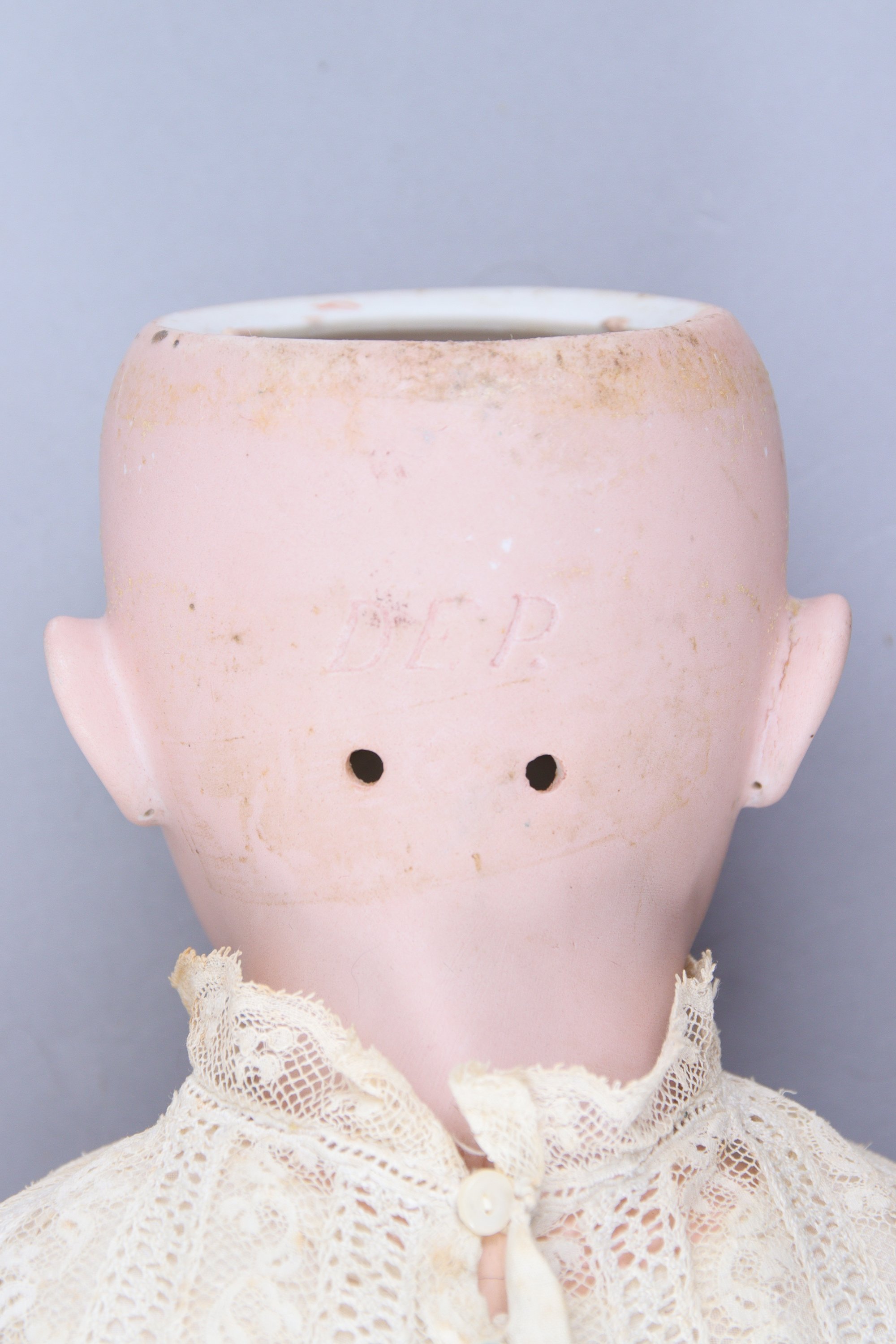 à tête en biscuit de porcelaine, taille 10, à bouche ouverte avec dents, oreilles percées, yeux dormeurs.
