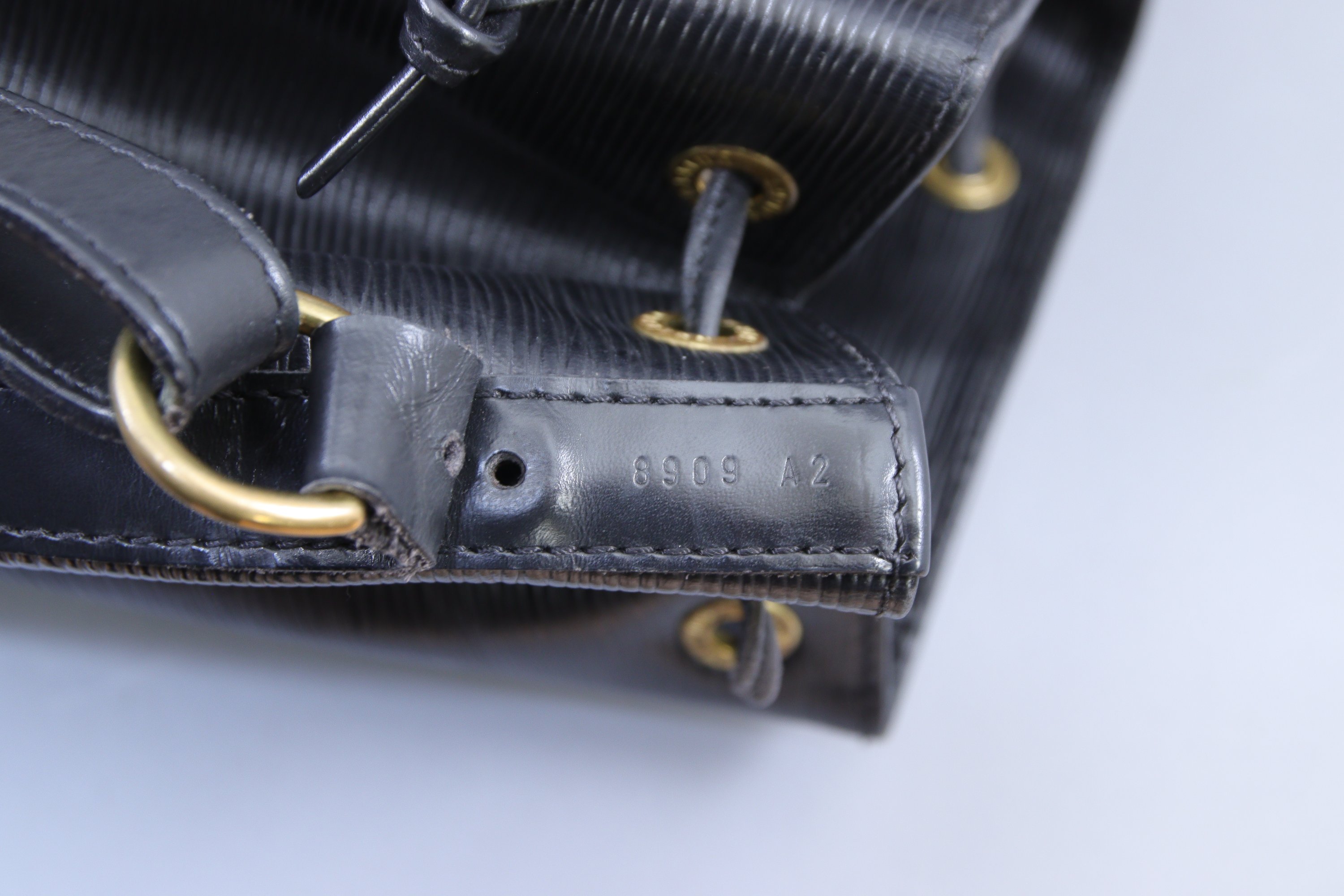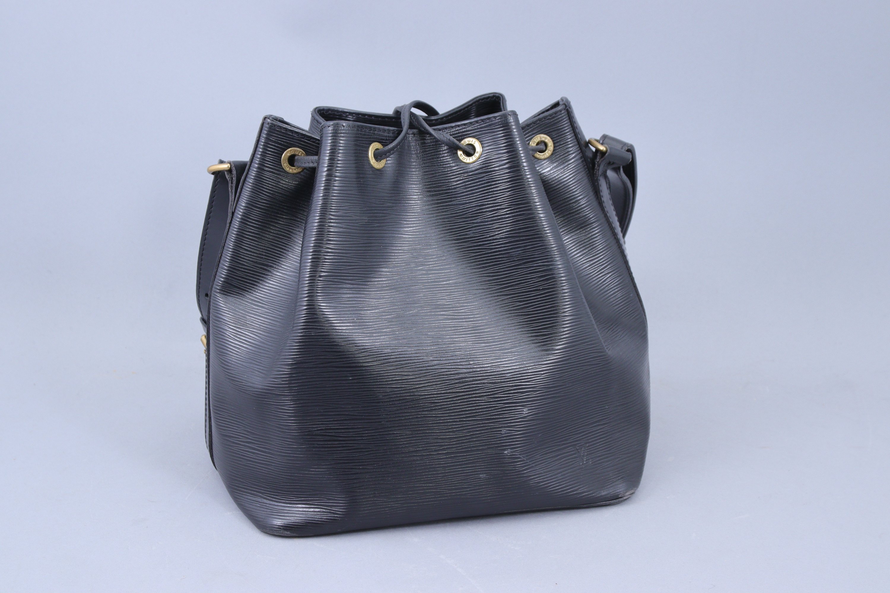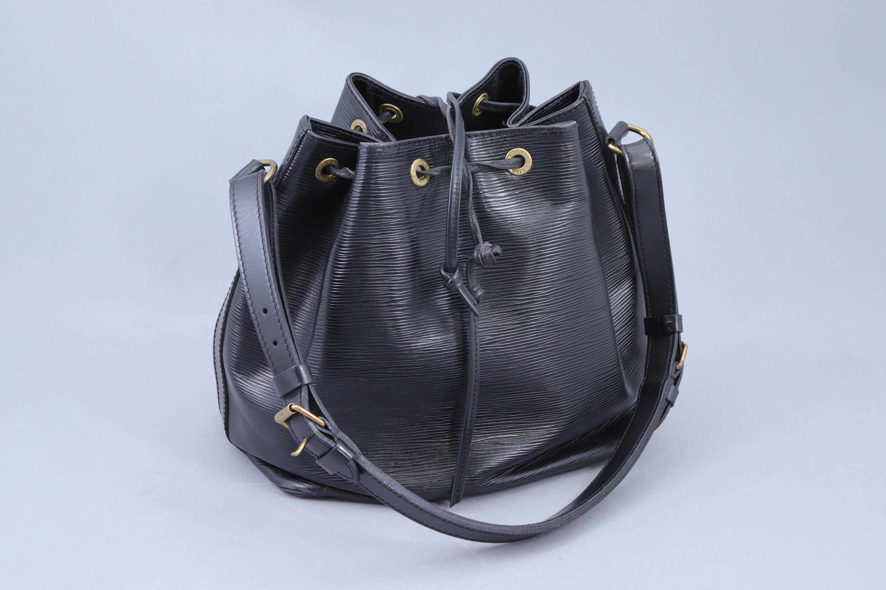 en cuir épi noir. Fermé par lien en cuir. Bandoulière réglable.