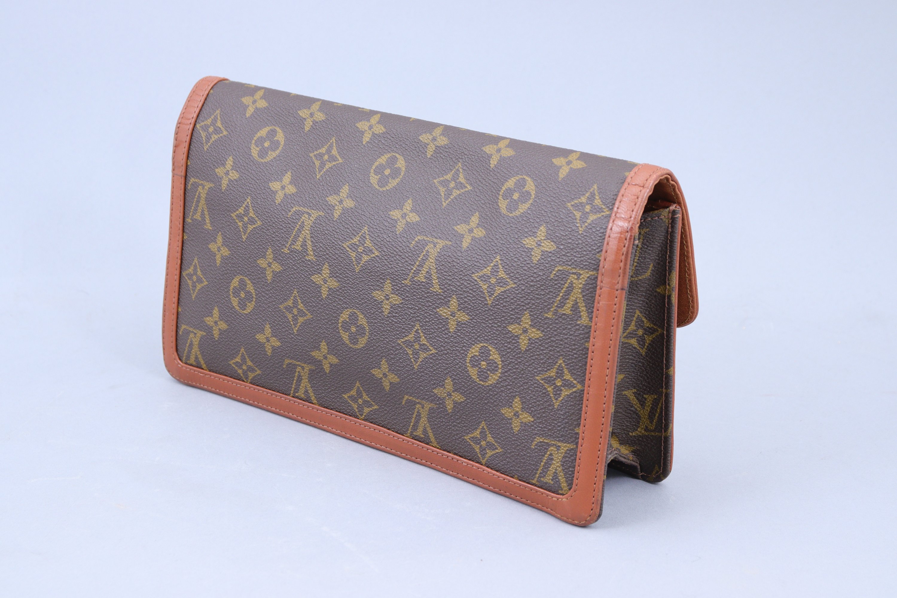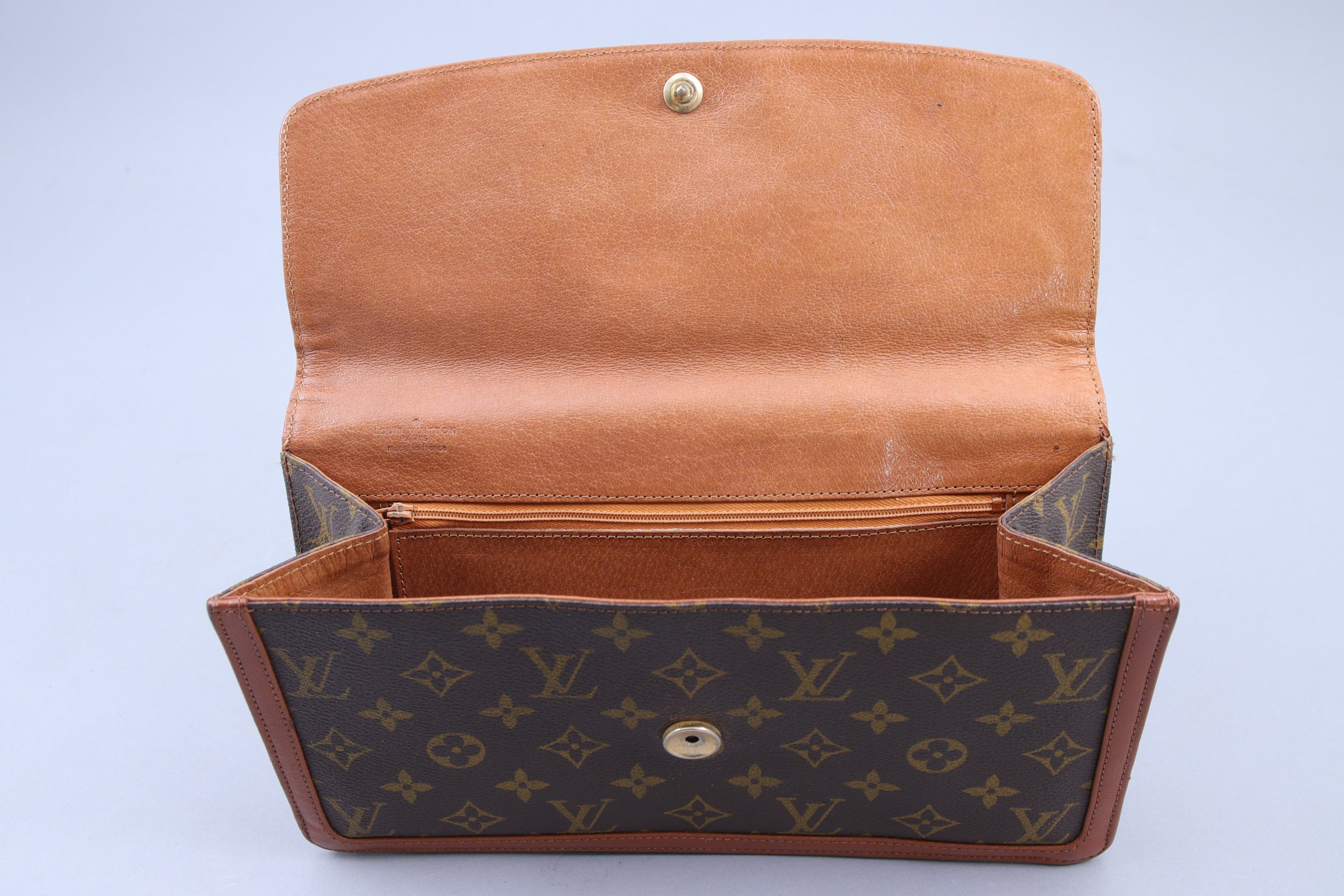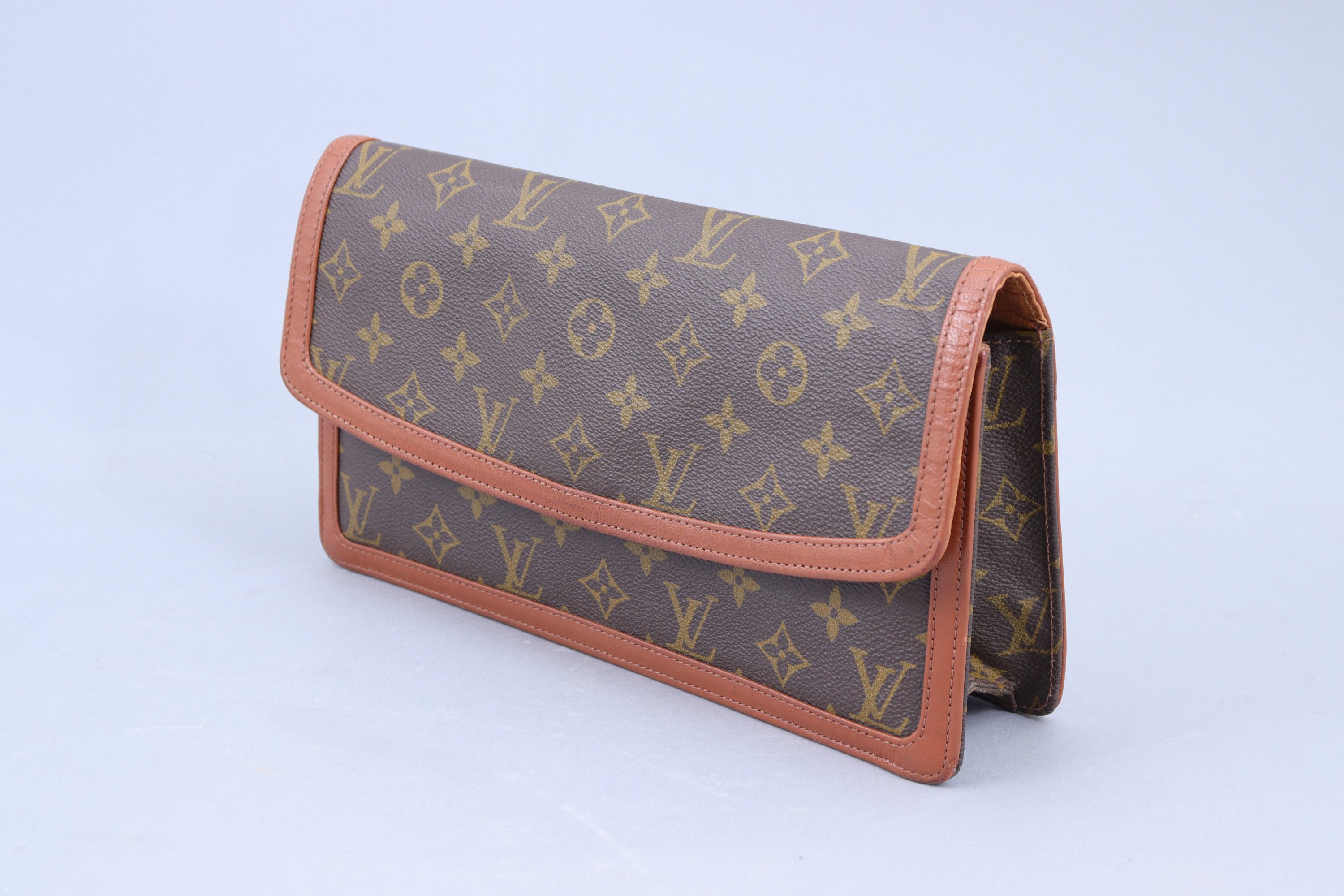 en toile enduite monogrammée et cuir fauve. Intérieur en cuir marron.