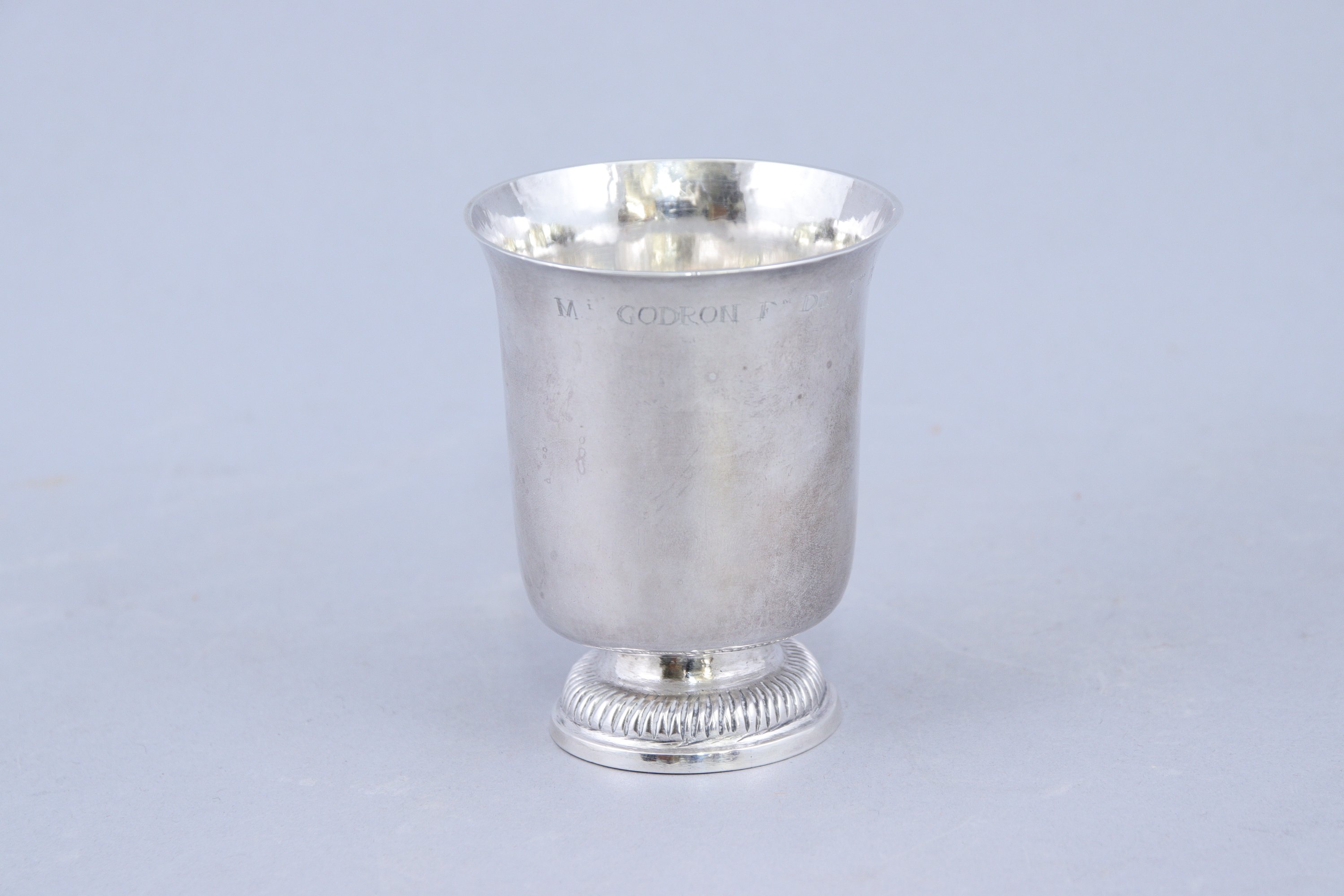 en argent, à lèvre évasée gravée "M. Godron Fre de Fre Frios" et pied godronné.