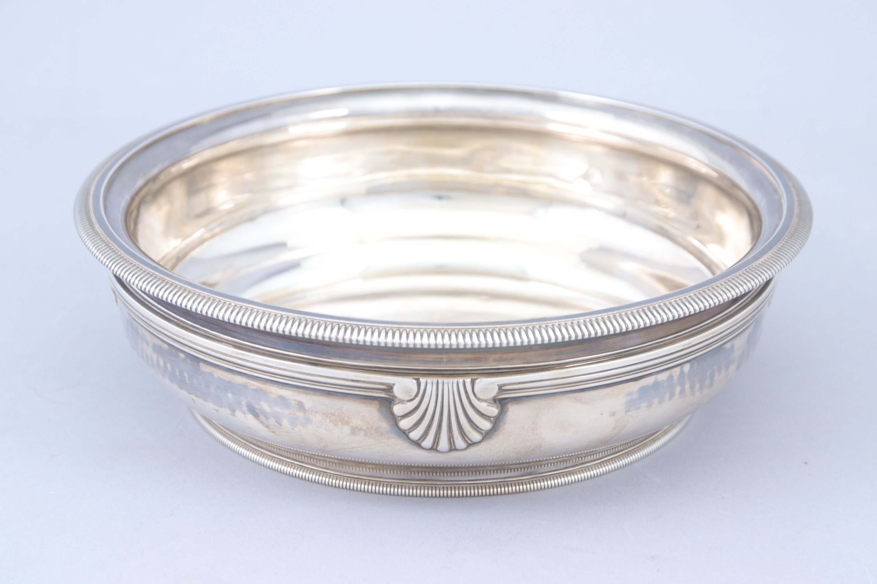 en argent, à décor de godrons sur la lèvre et le pied, la panse ornée de coquilles.