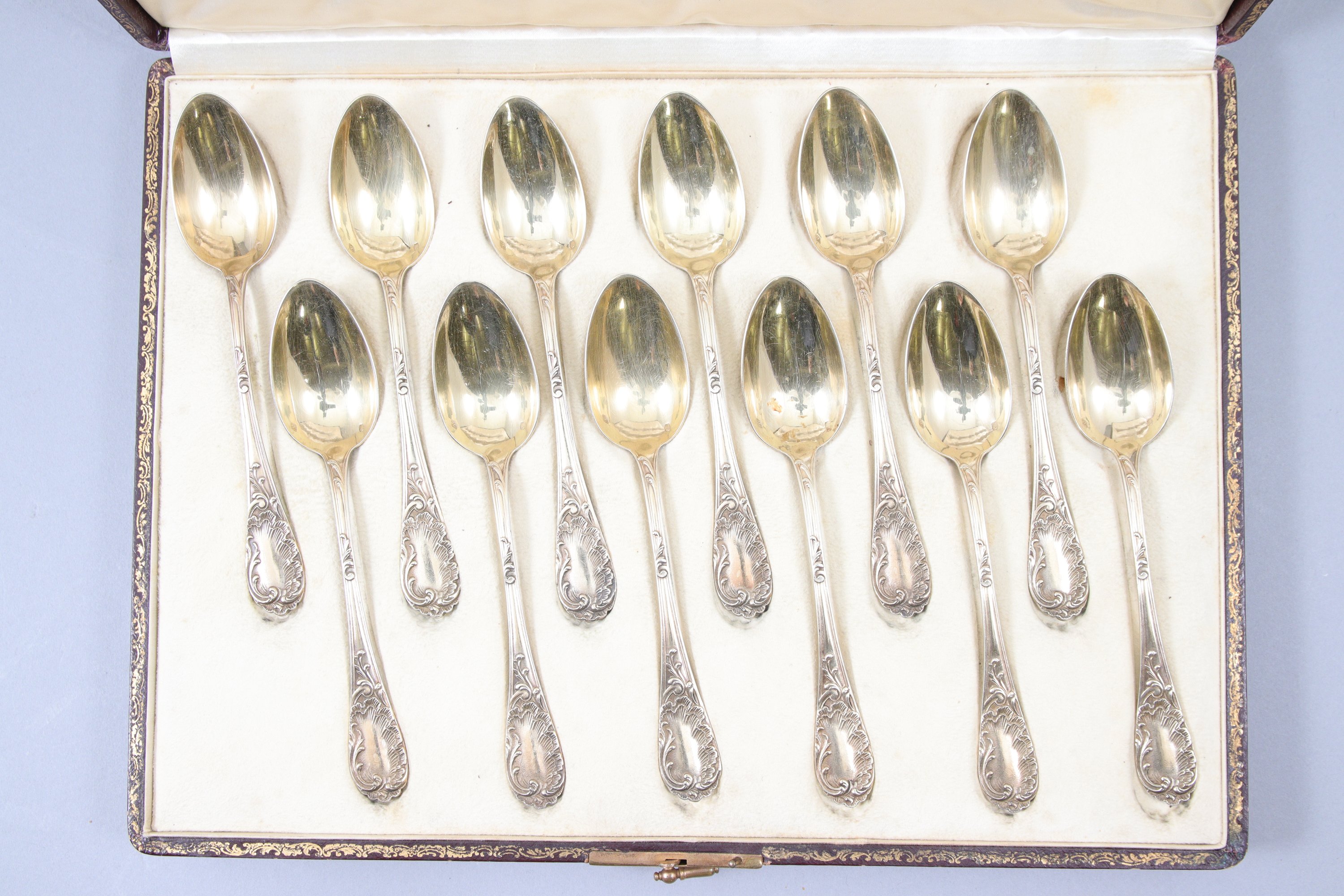 en vermeil, à décor rocaille de feuilles d'acanthe et agrafes.