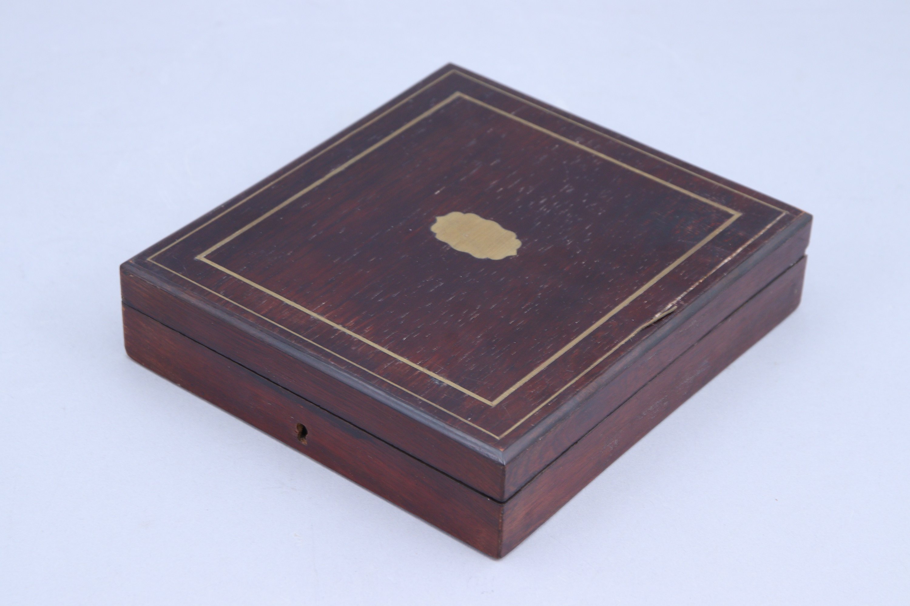 Dans un écrin en bois de placage et filet de laiton.