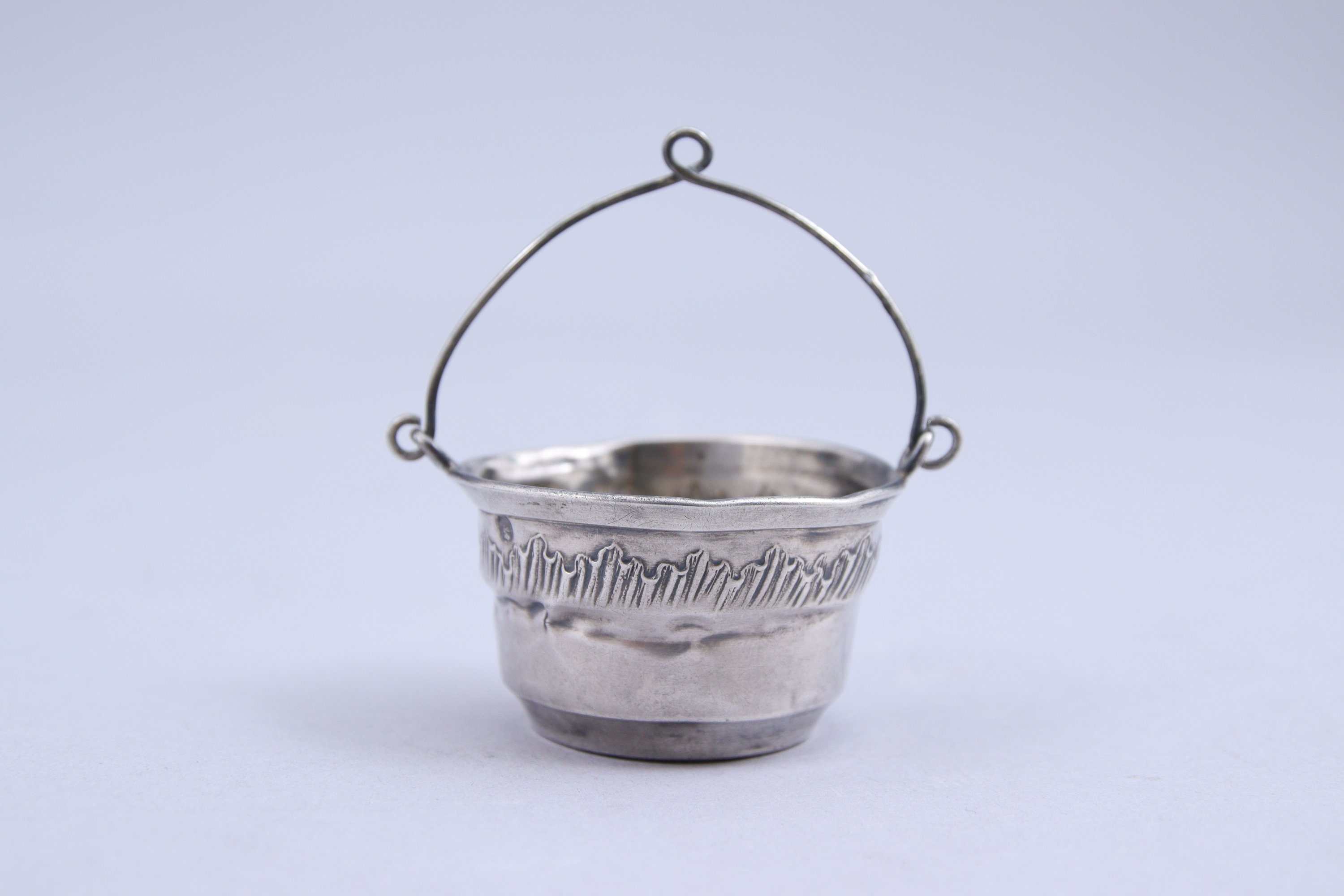 Joint: passe-thé en argent à décor d'une frise végétale stylisée. Poinçon Minerve 1er titre. Poids 15 g.