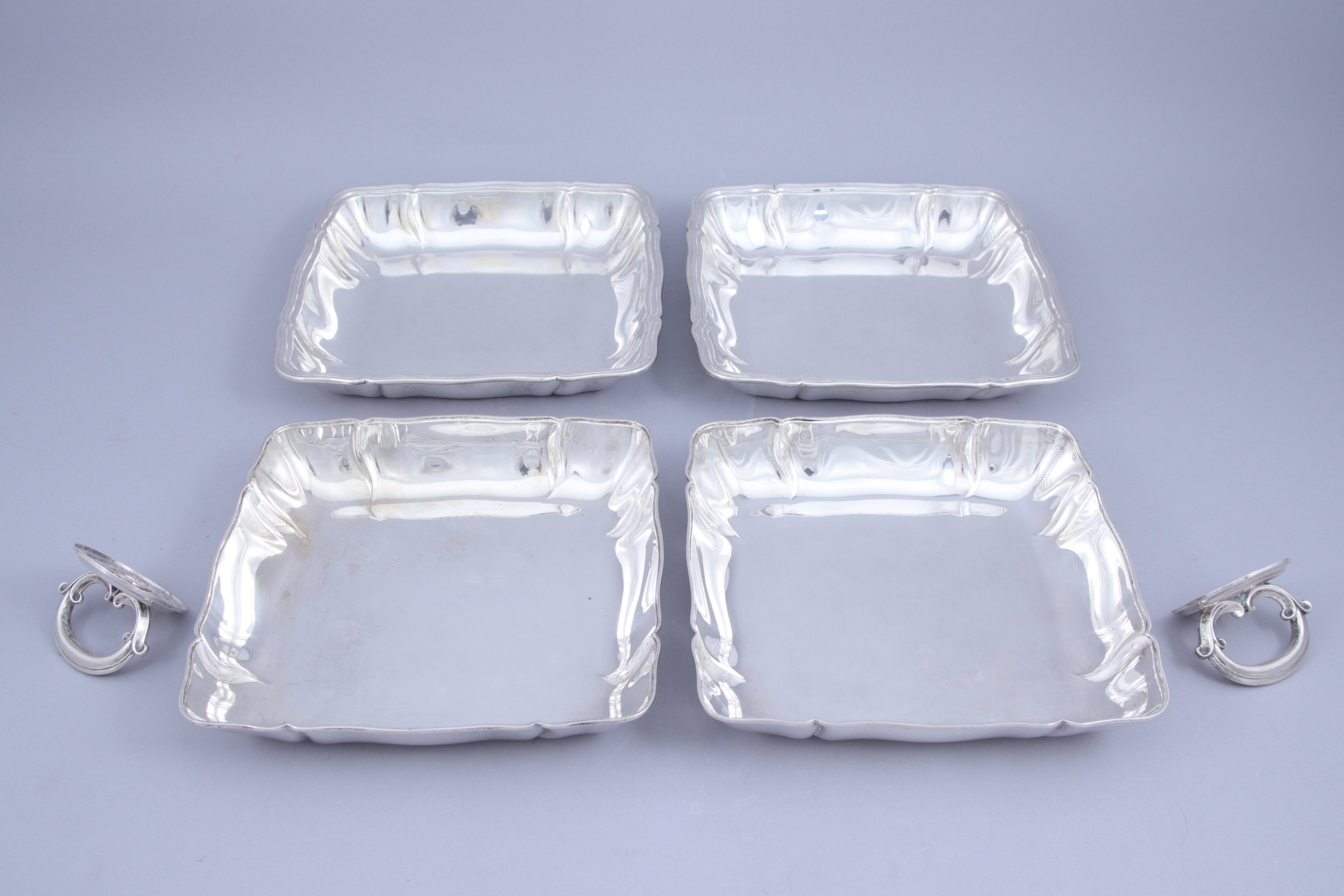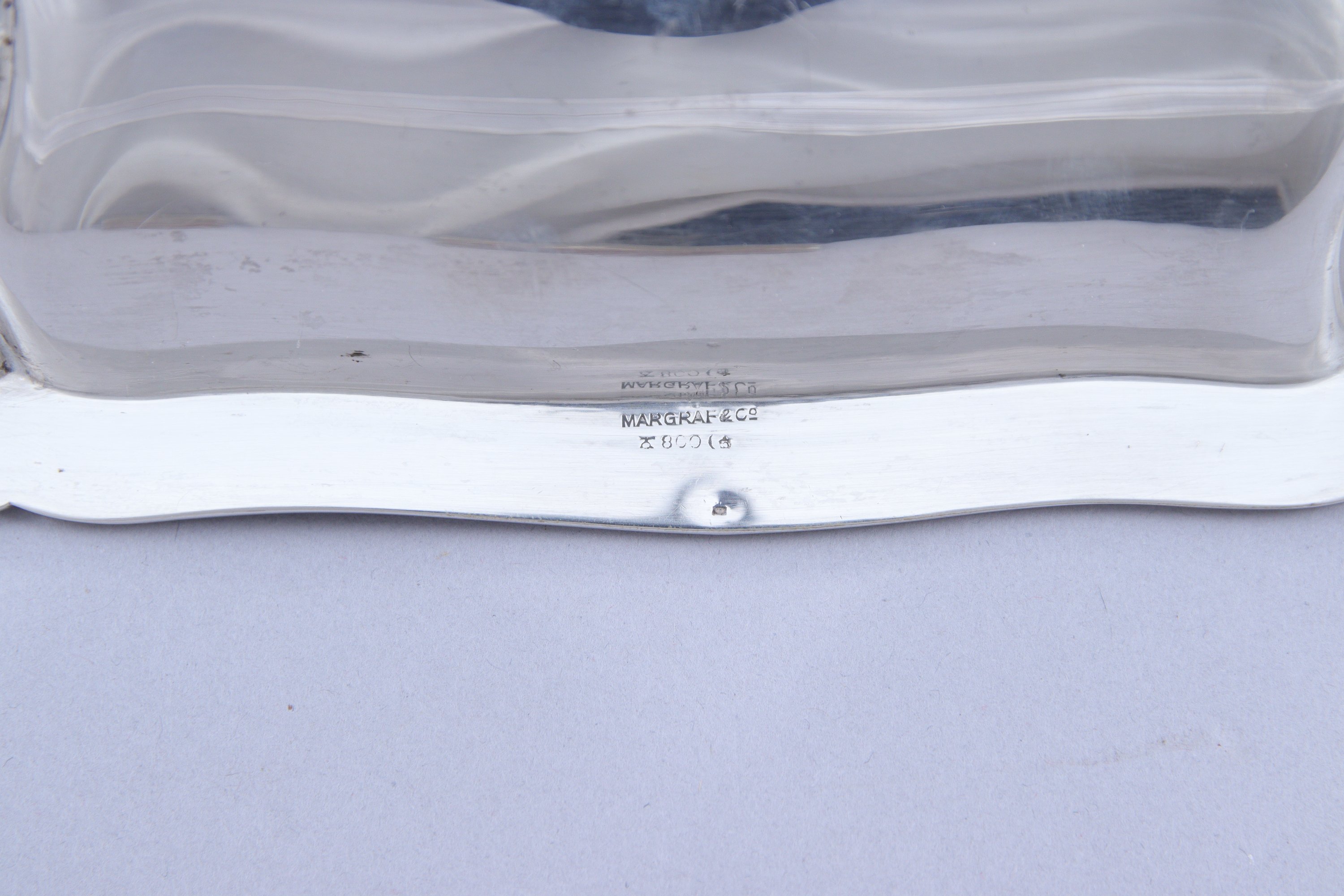 en argent 800 millièmes, de forme rectangulaire. La prise détachable à décor de deux cornes d'abondance dans un entourage mouluré.