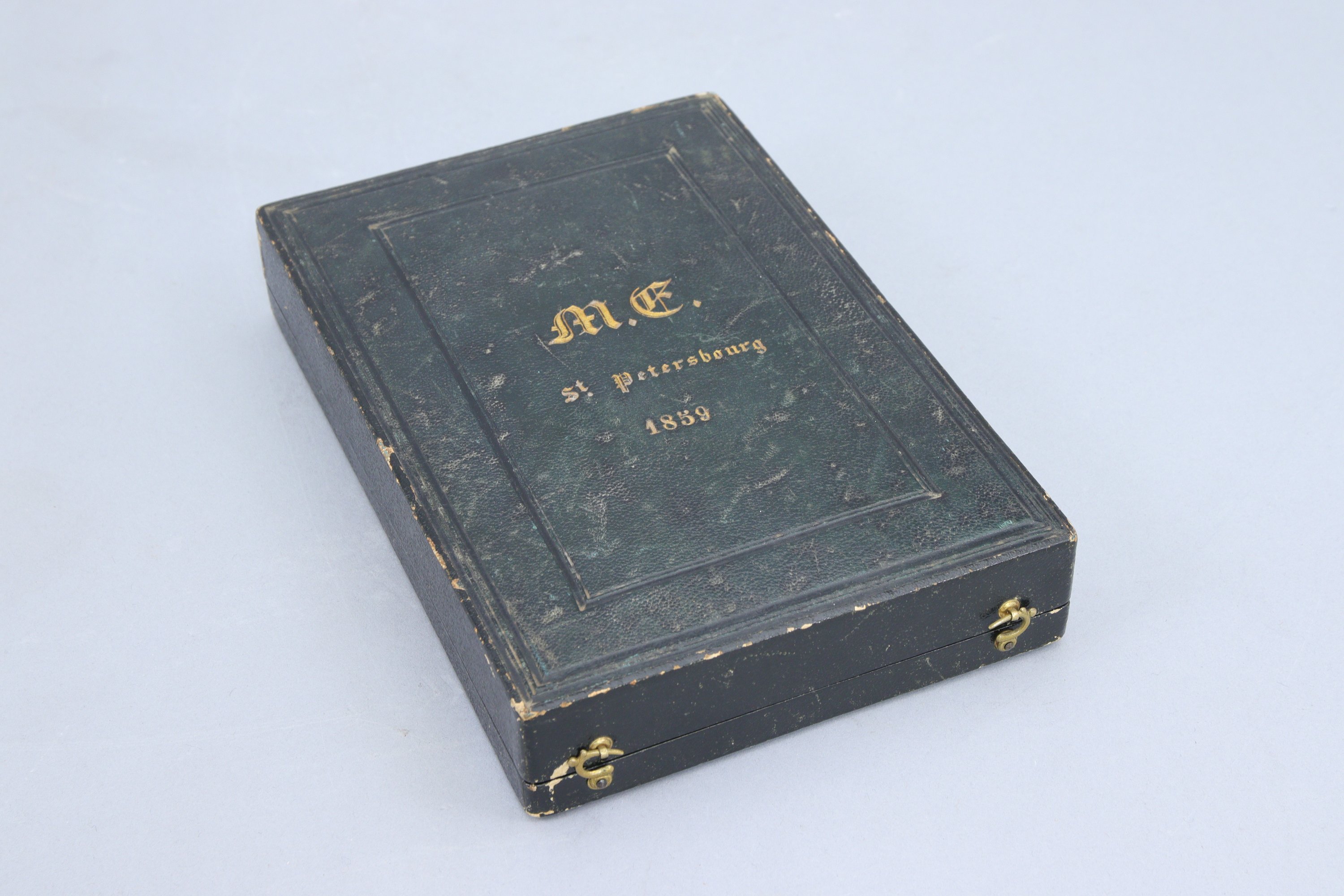 Dans un écrin monogrammé "EM", marqué Saint-Petersbourg 1859.