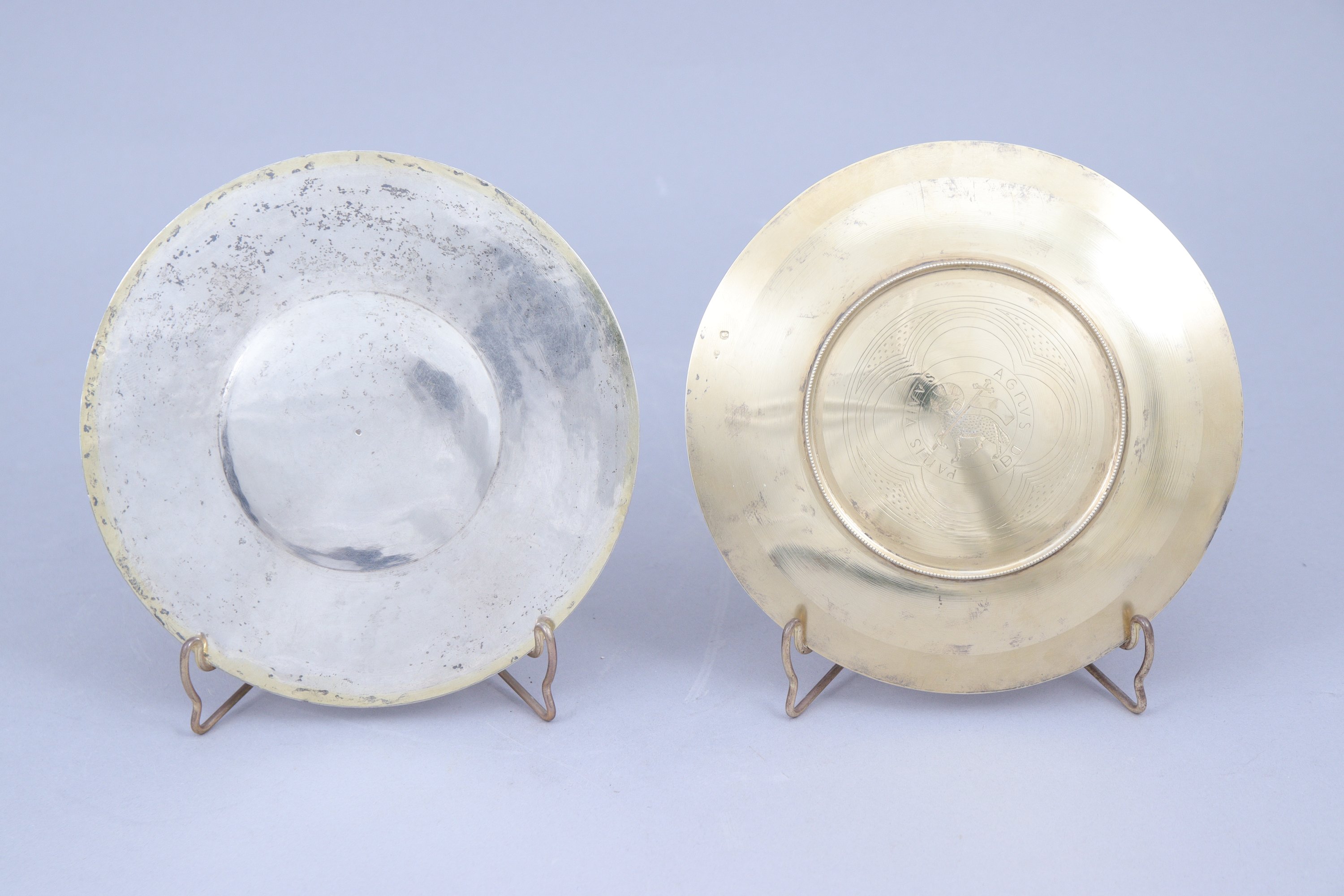 en argent et vermeil, dont l'une à décor de l'agneau mystique dans un entourage portant l'inscription "Panis Vivus Agnus Dei".
