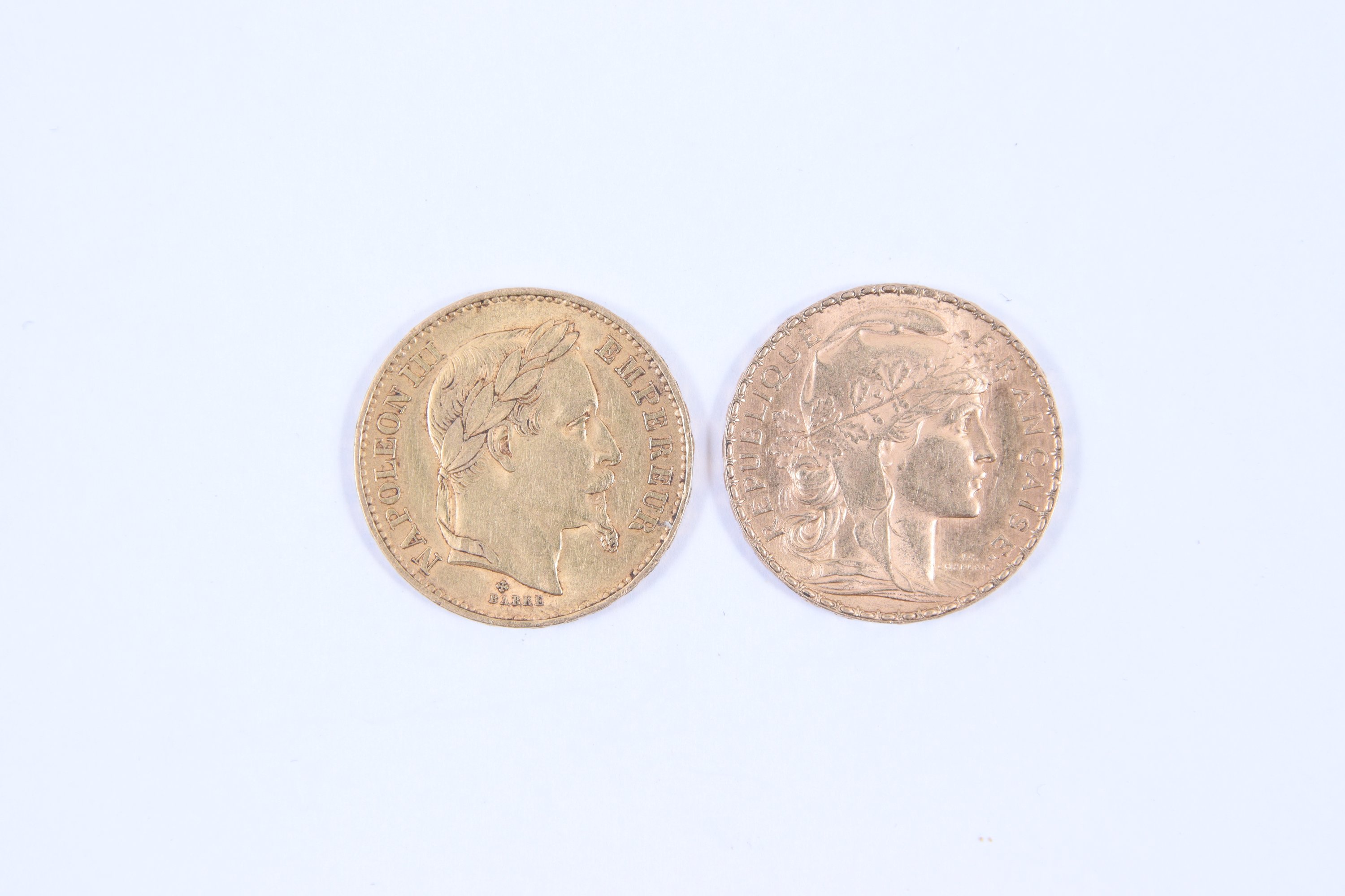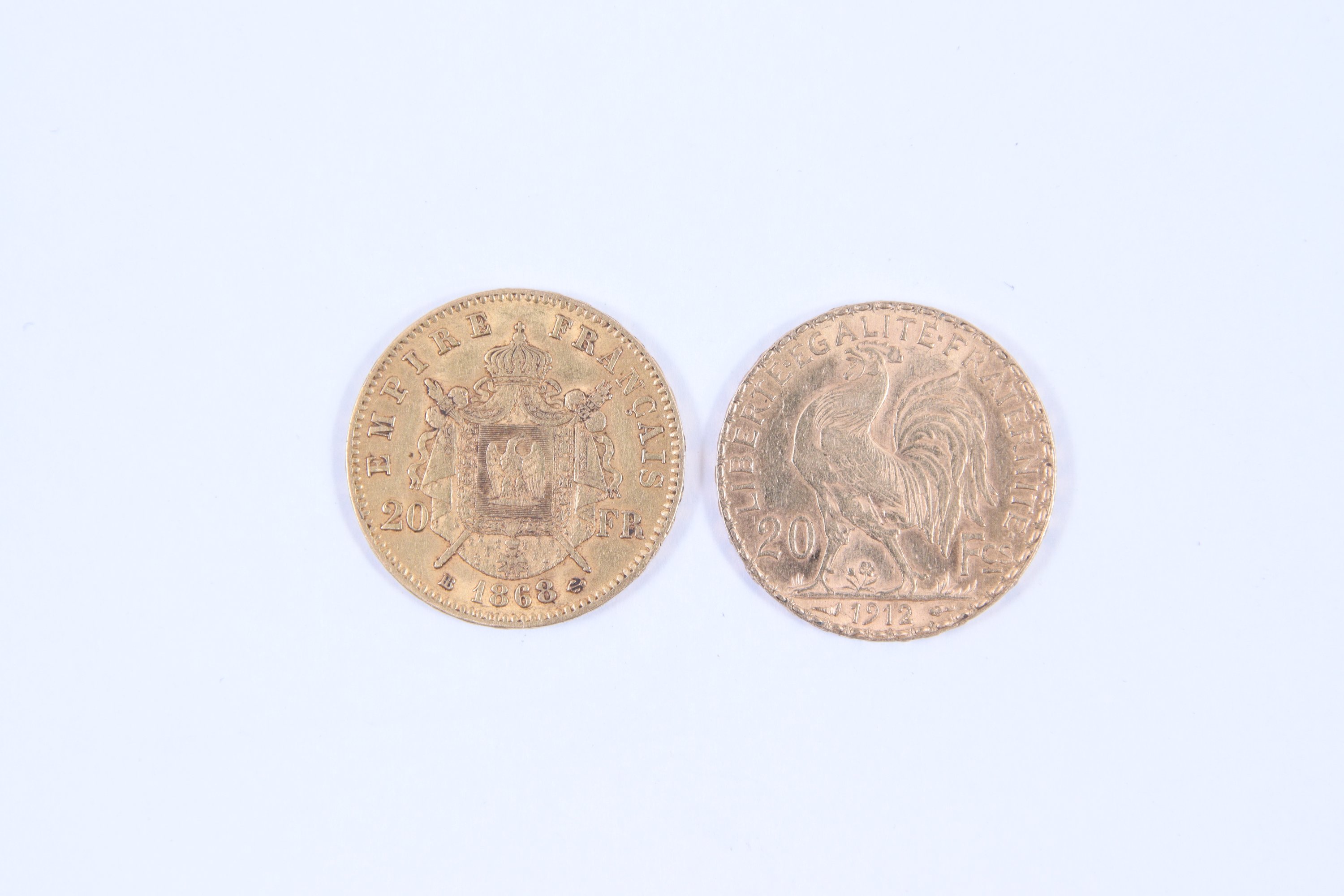 FRANCE. 2 PIECES de 20 FRANCS OR: