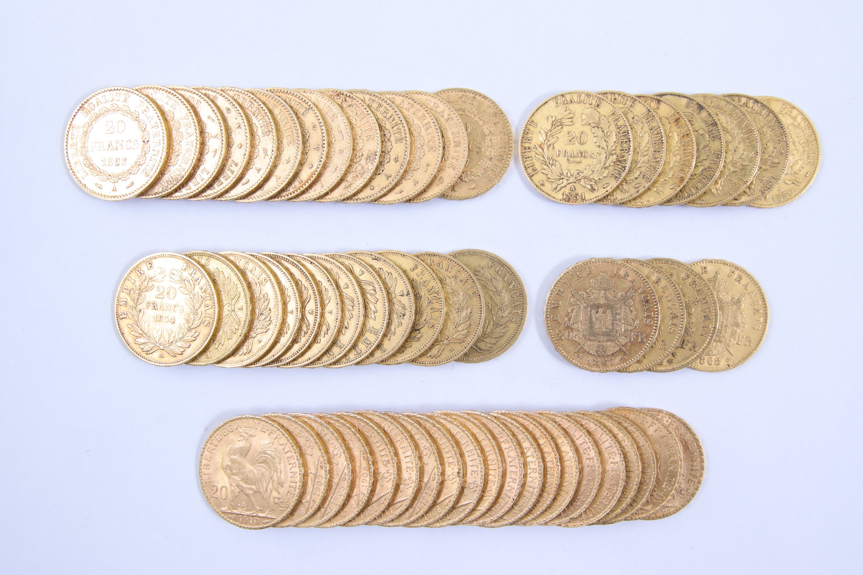 FRANCE. 56 PIECES de 20 FRANCS OR: