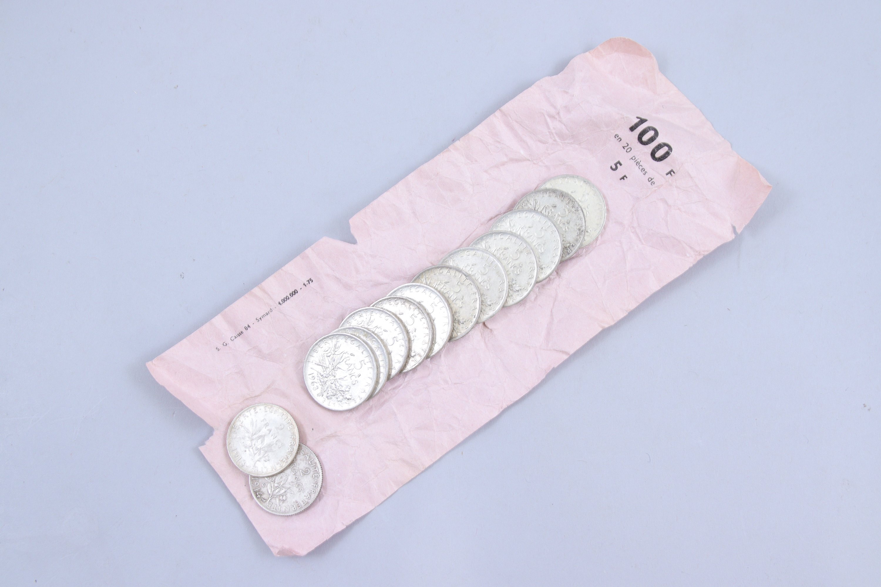 Joint: un rouleau de 11 pièces de 5 francs argent (Poids 132,15 g).