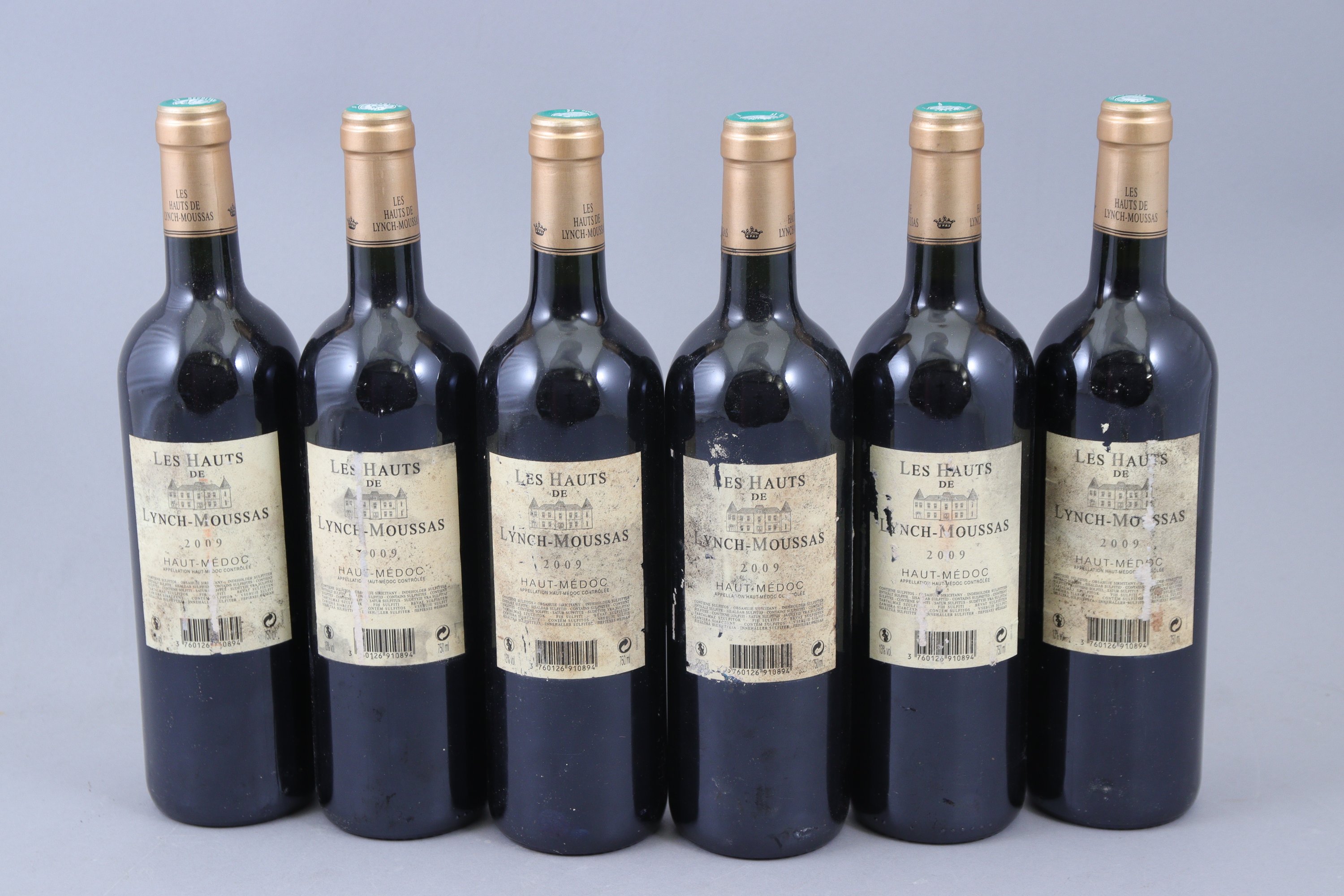 PAUILLAC, Les Hauts de Lynch Moussas, 2009, 6 bouteilles. Bons niveaux, étiquettes abîmées.