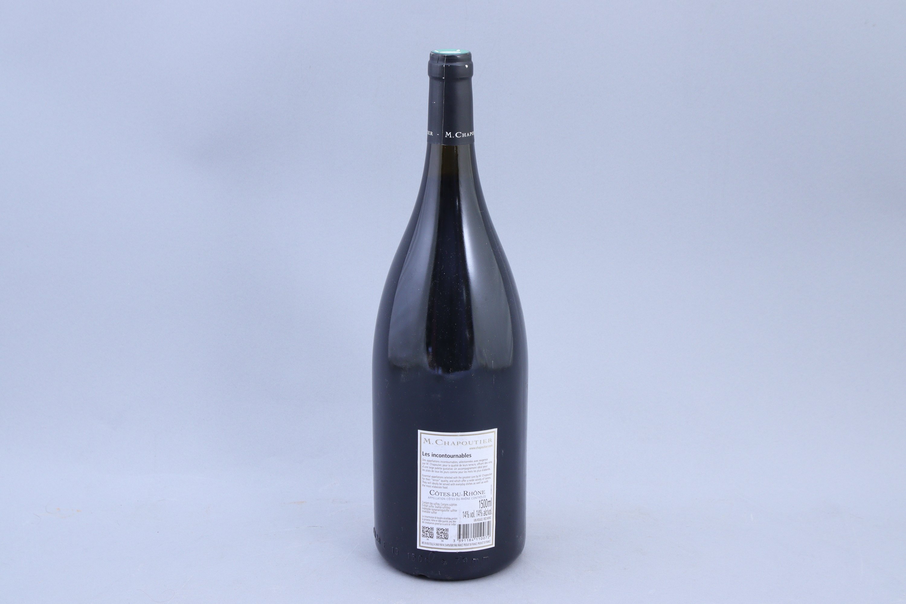 COTES-DU-RHONE, M. Chapoutier, 2013, 1 magnum. Niveau entre deux et quatre centimètres sous le bouchon. Etiquette légèrement abimée.