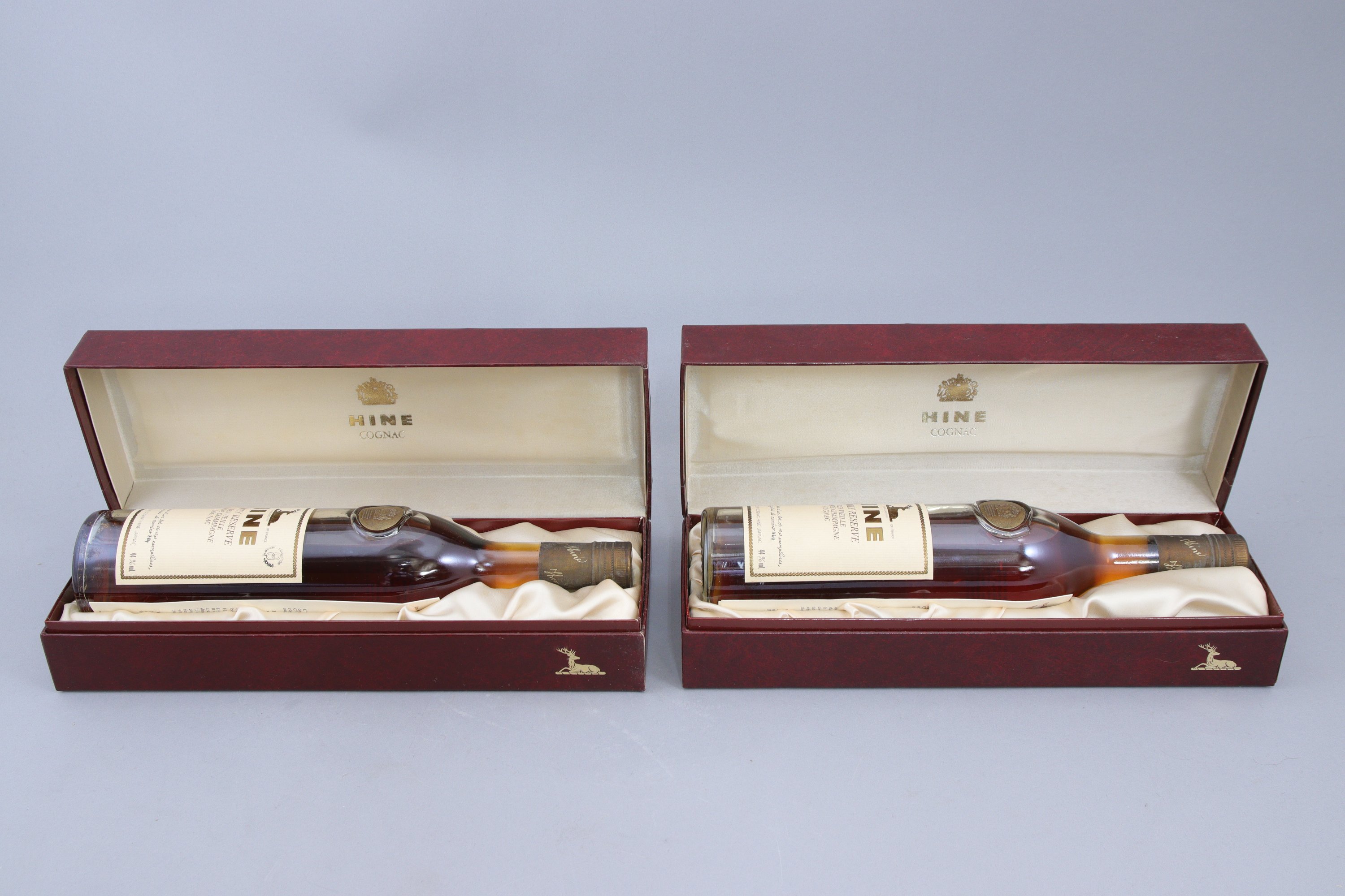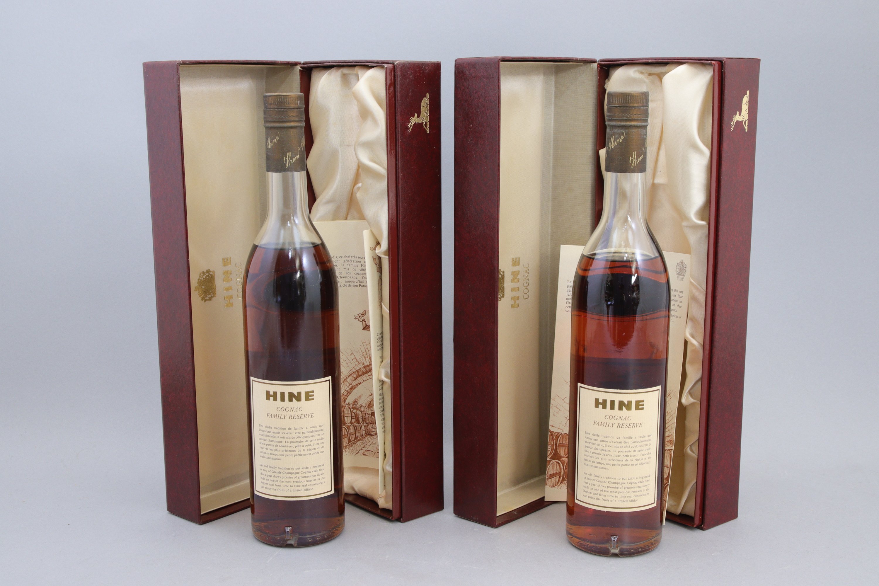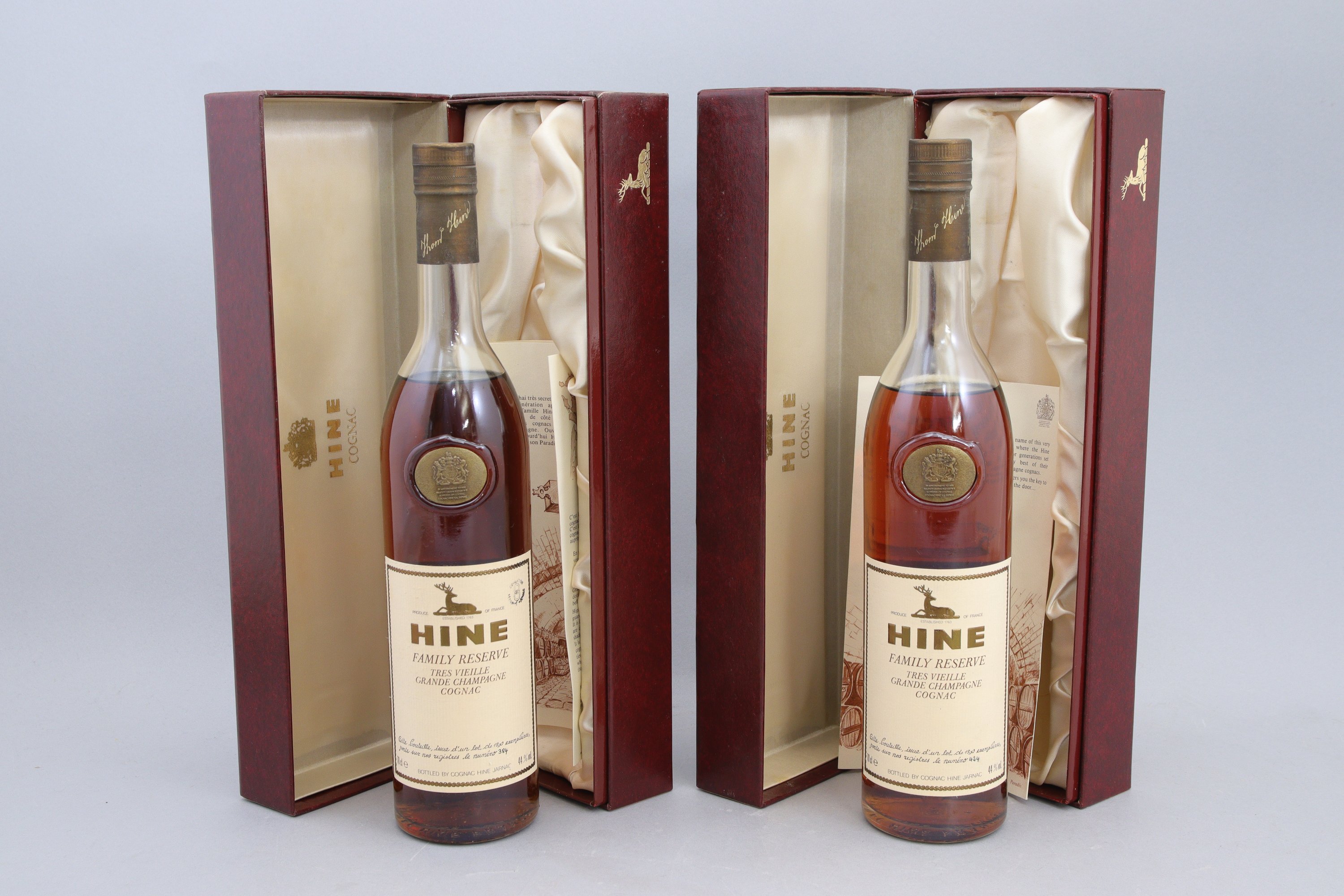 COGNAC, Hine, "Family Reserve" très vieille Grande Champagne, 70 cl. 2 bouteilles. Une étiquette très légèrement abimée. Dans leurs coffrets.