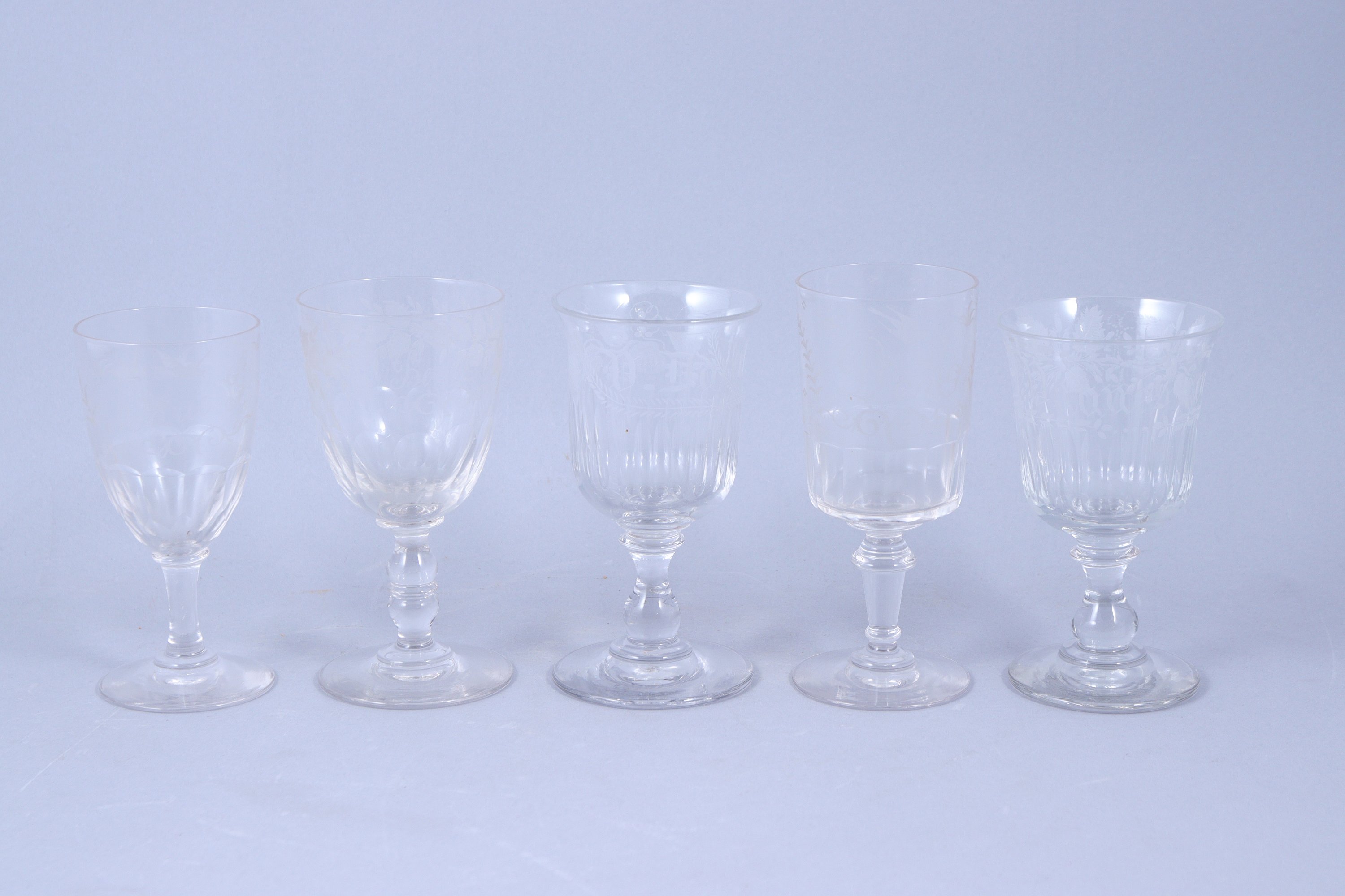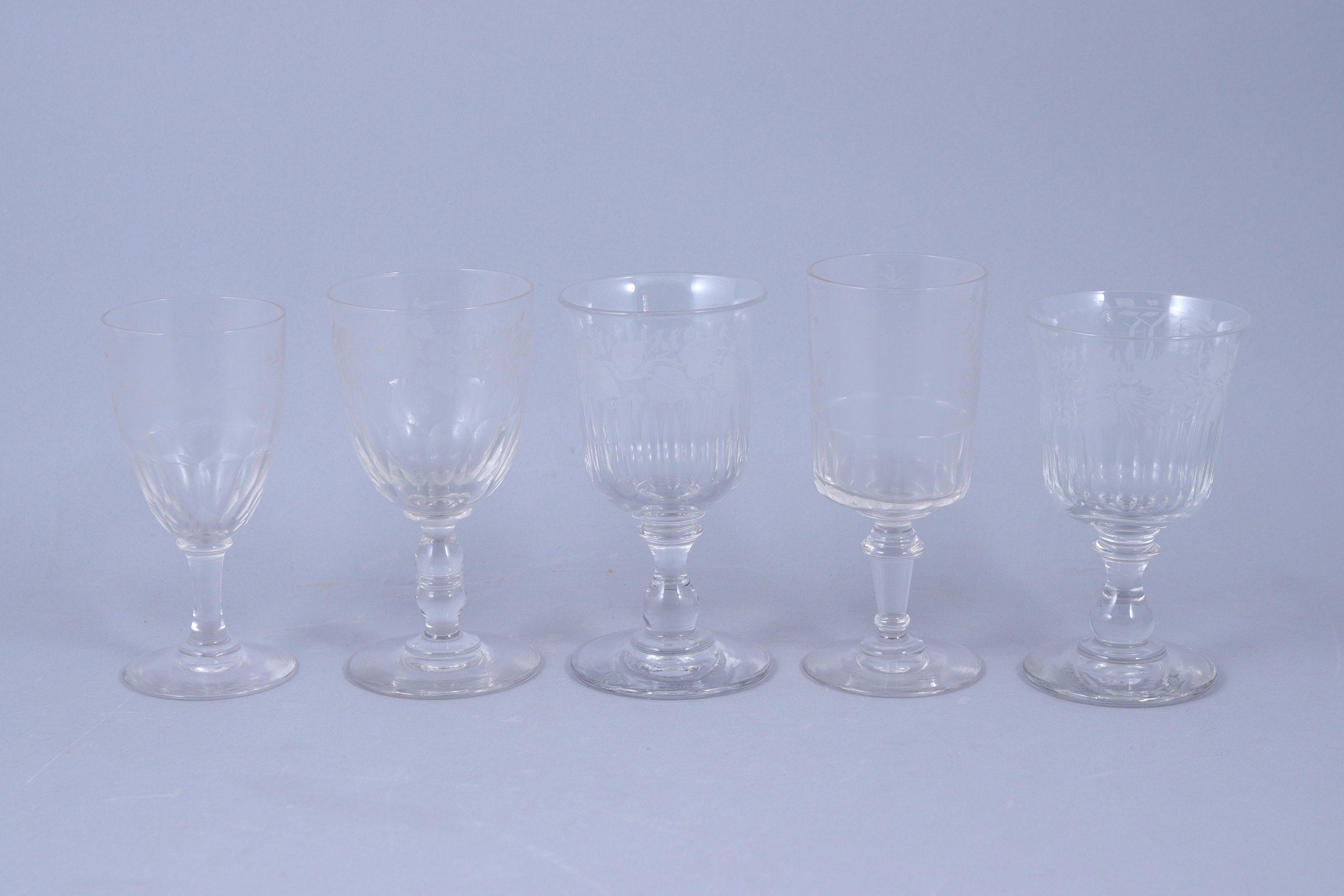 - Trois verres dont deux en cristal et un en verre à décor gravé. Haut. entre 10,5 et 14 cm.