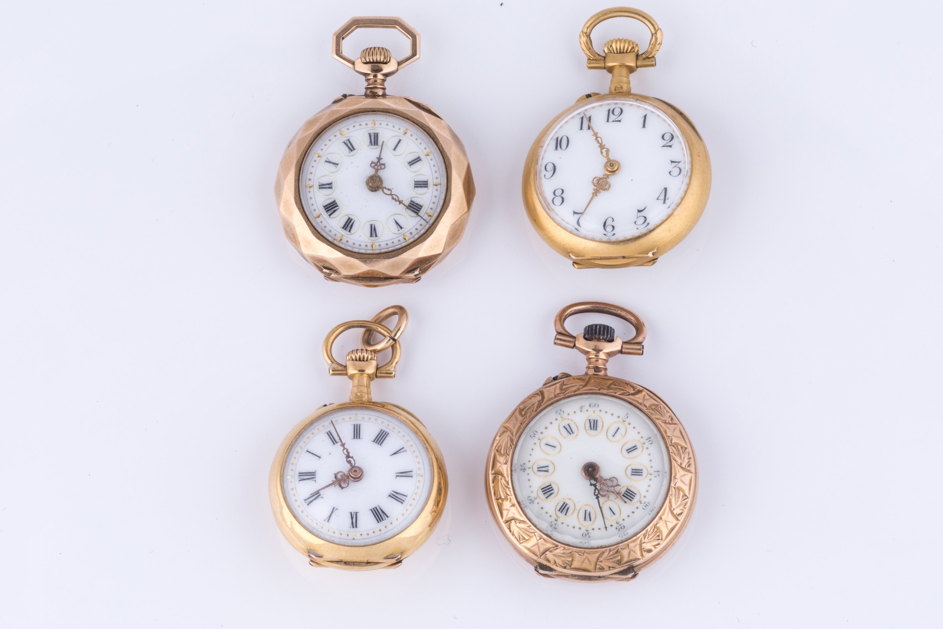 Jointes: trois montres de col en métal doré.