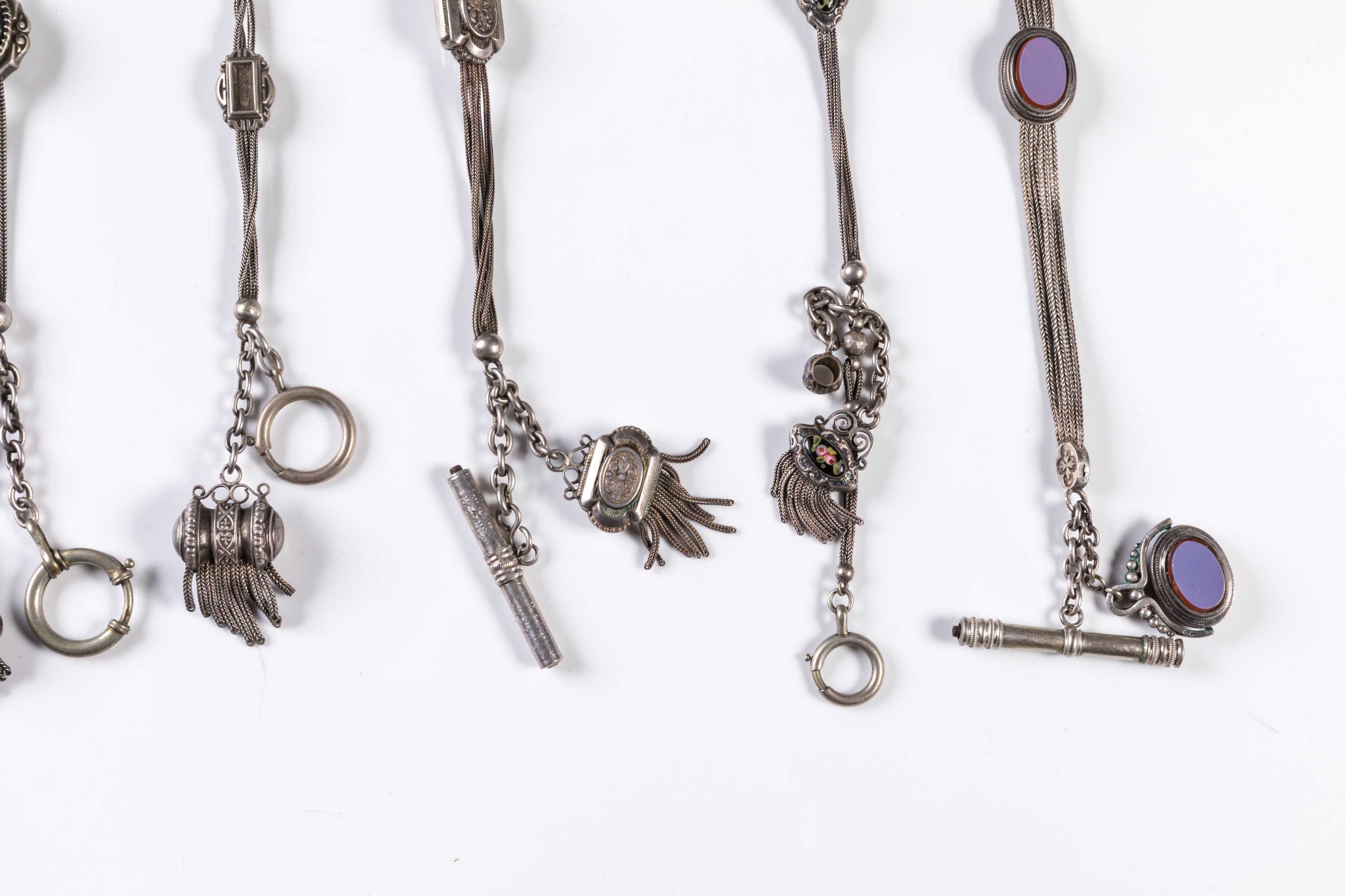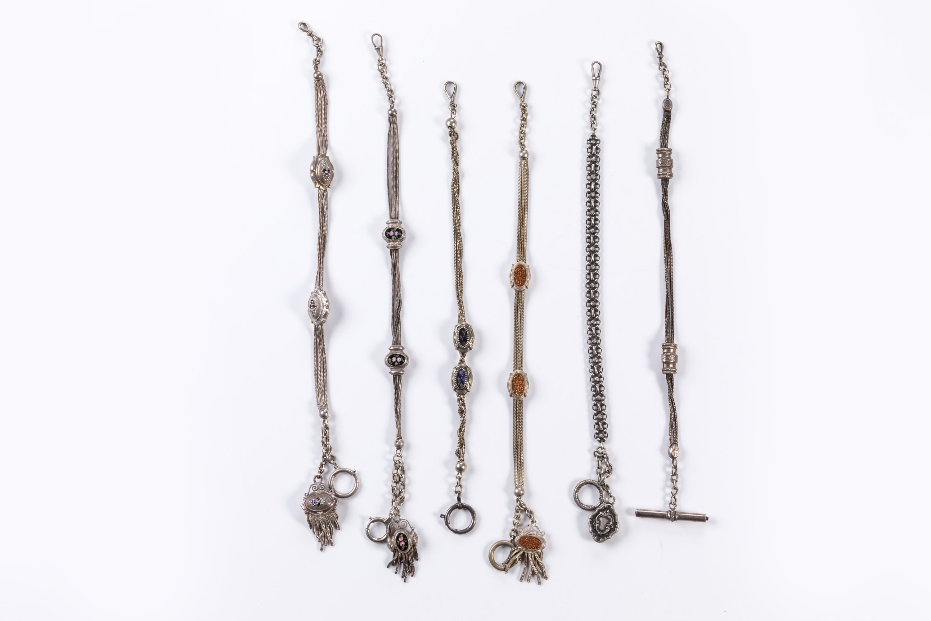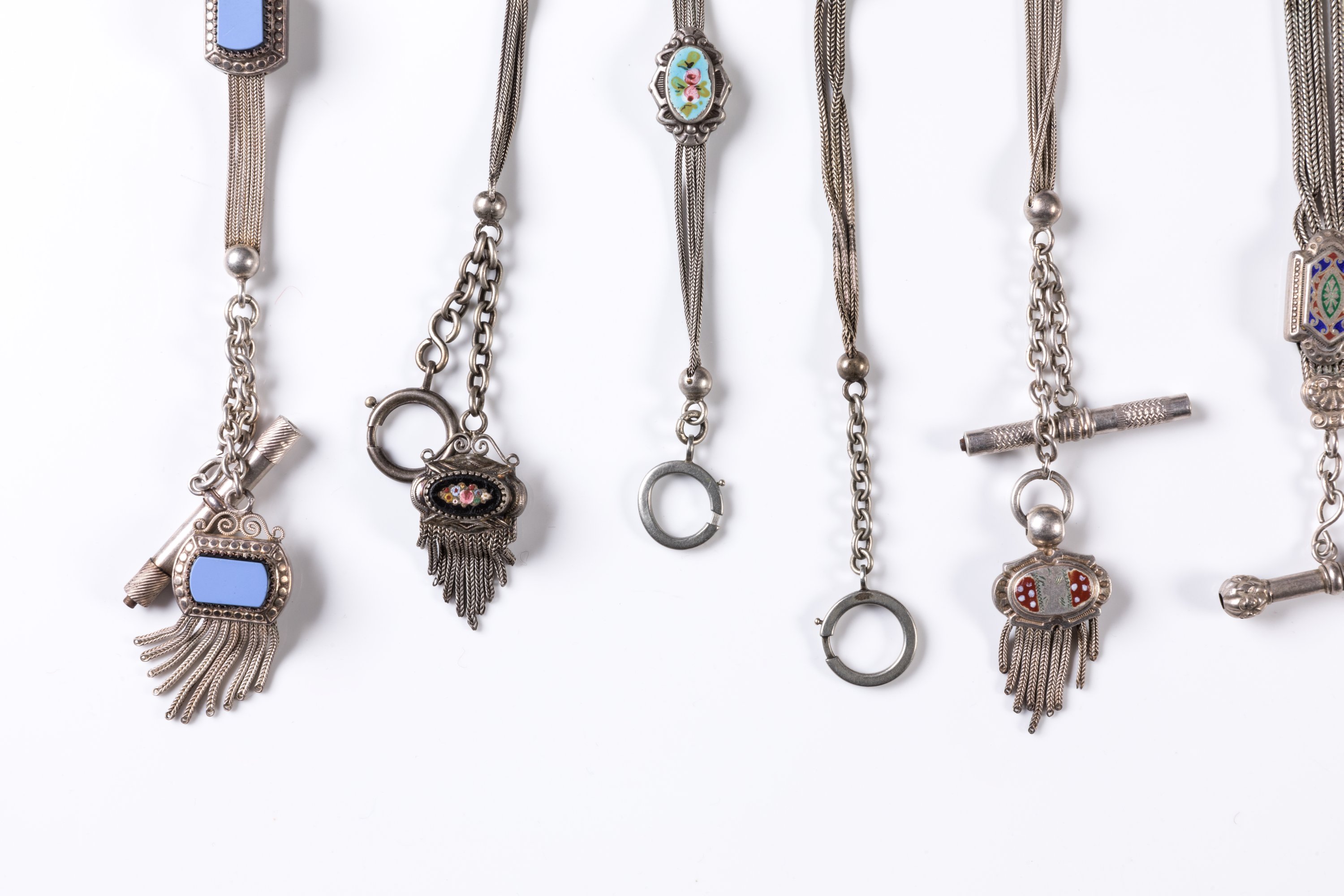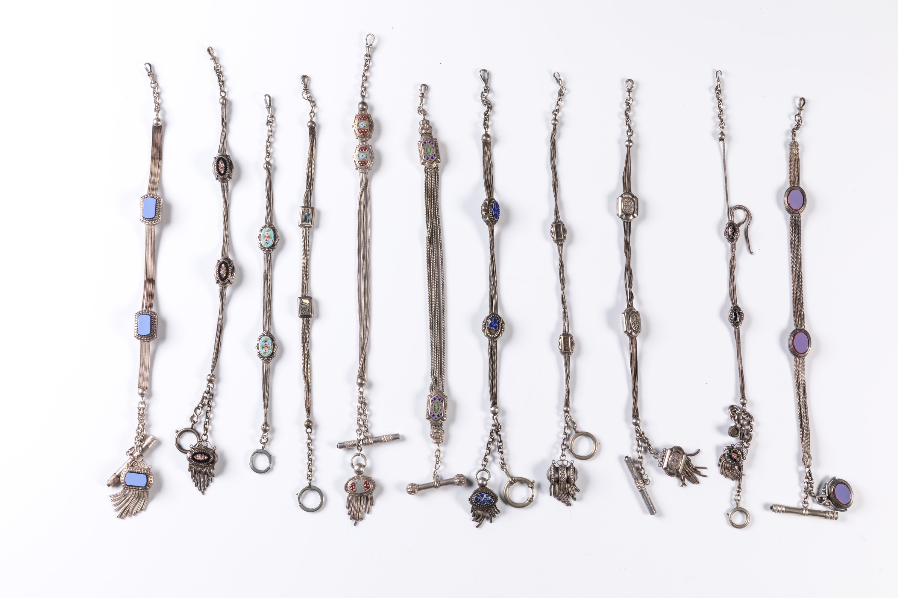 17 chatelaines en argent, serties d'émaux et de pierres dures