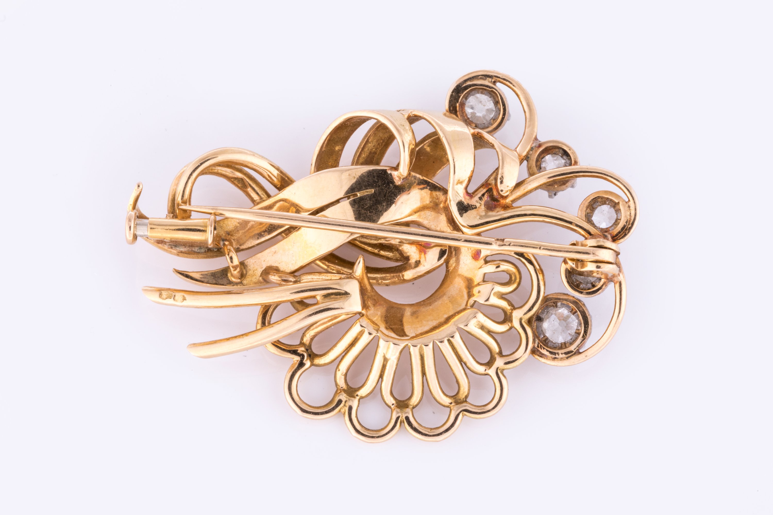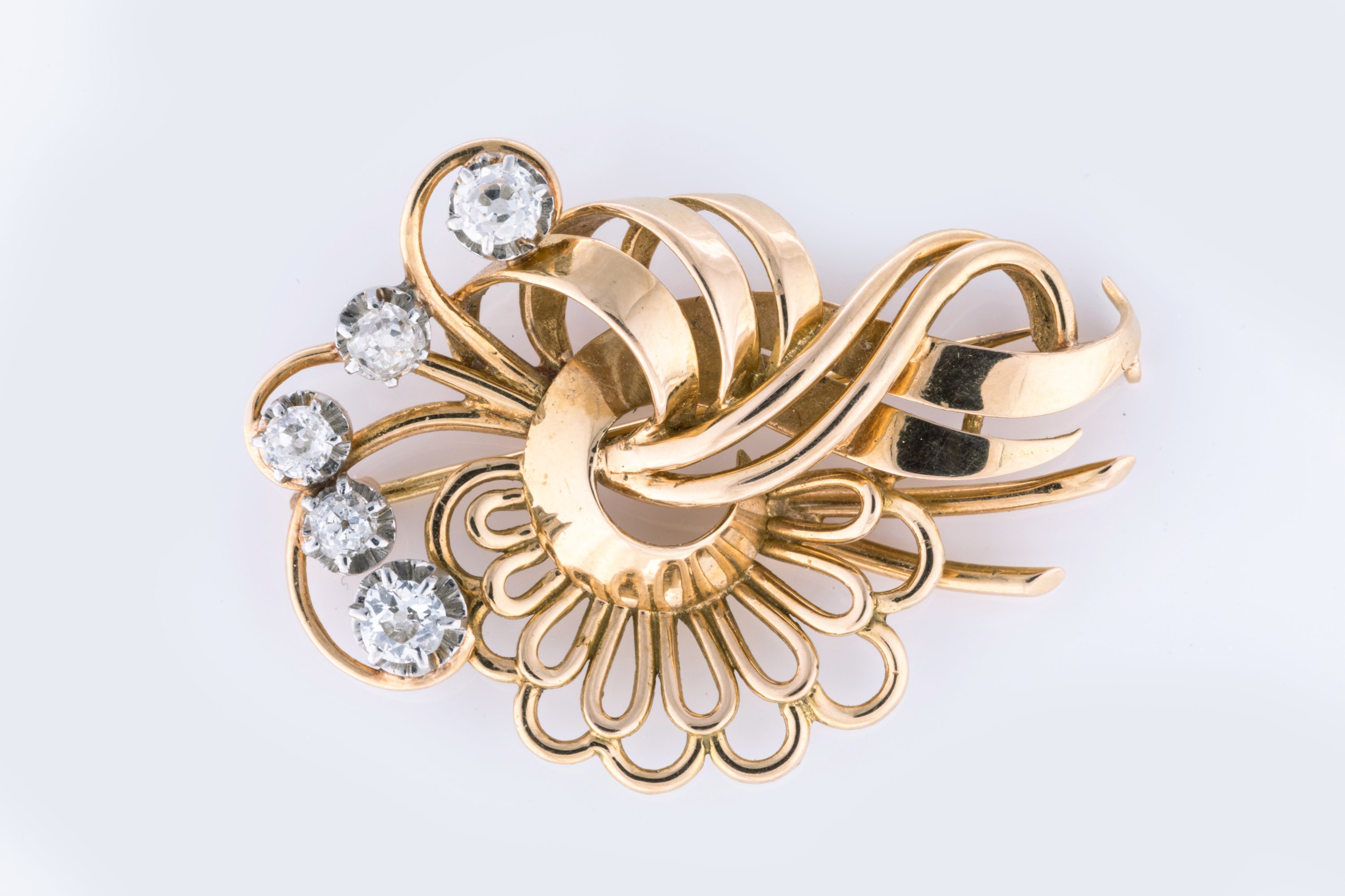 en or jaune 750 millièmes ornée de cinq diamants de taille ancienne (environ 0,5 ct).