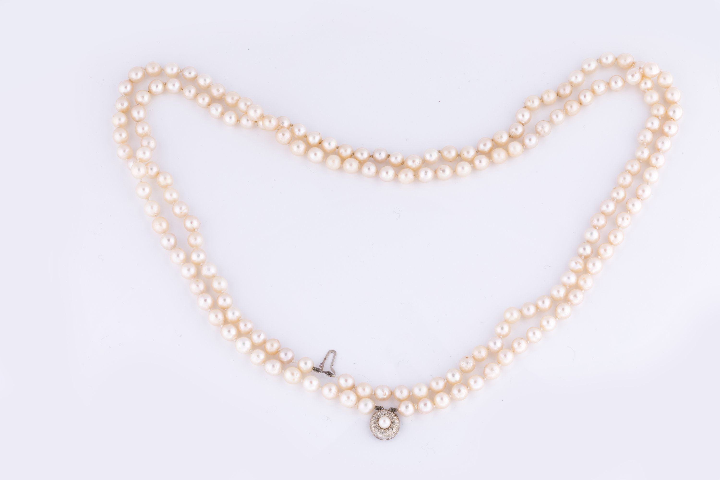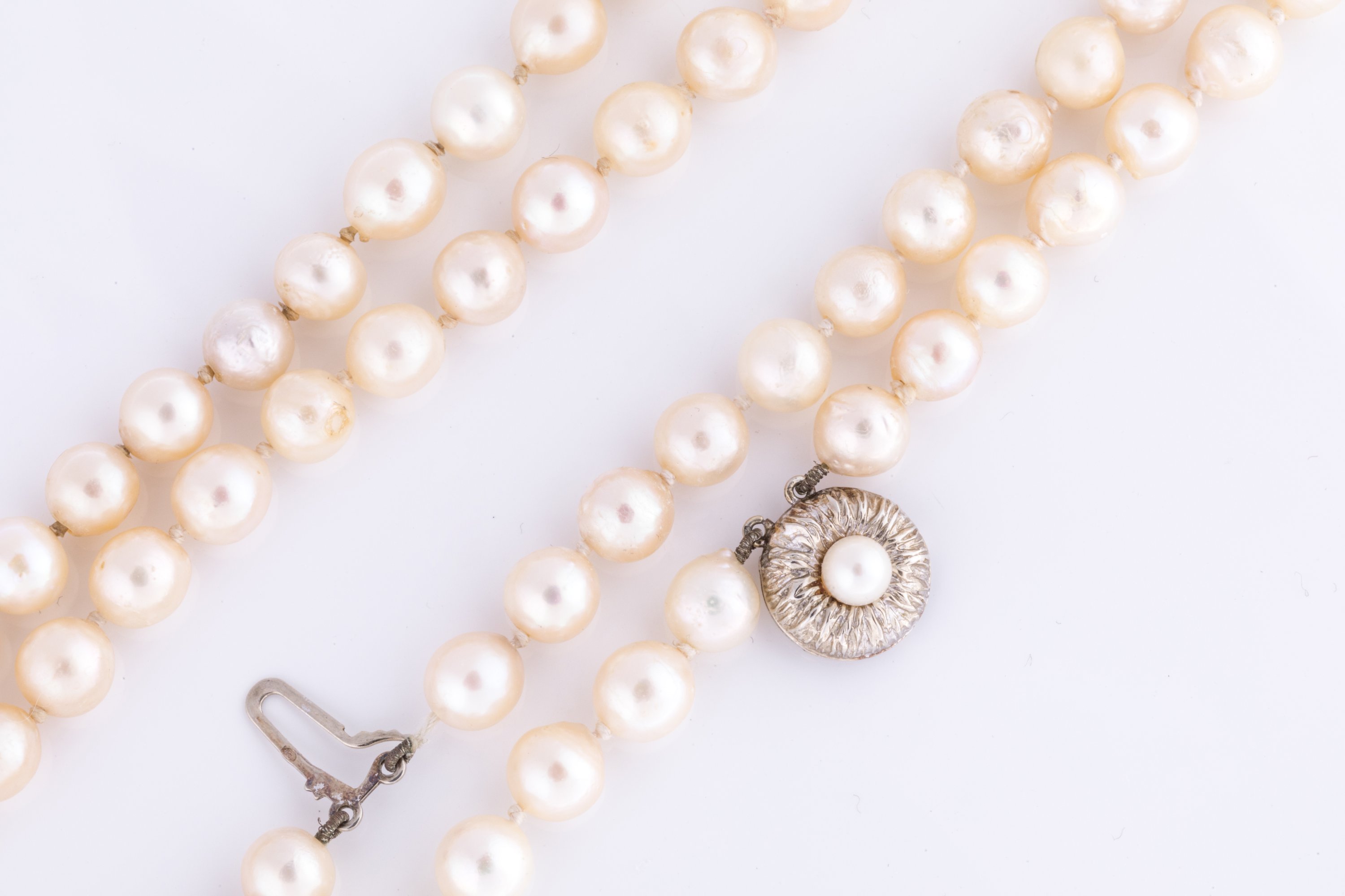 à fermoir en or gris 750 millièmes, orné d'une demi-perle.