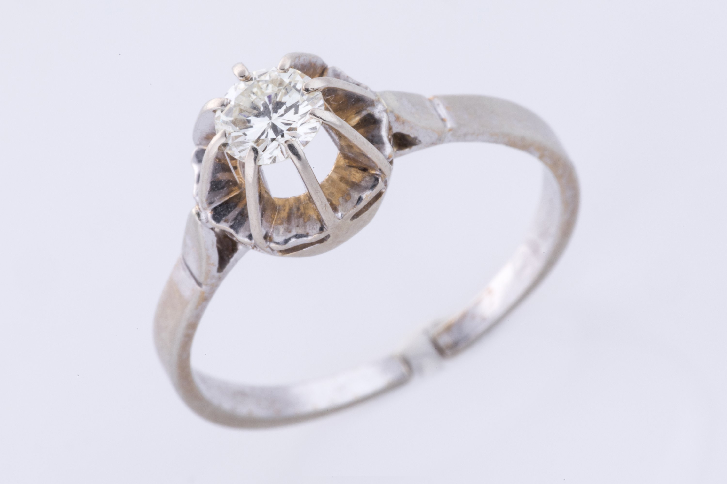 en or gris ou platine, sertie d'un diamant de taille brillant d'environ 0,20 ct.